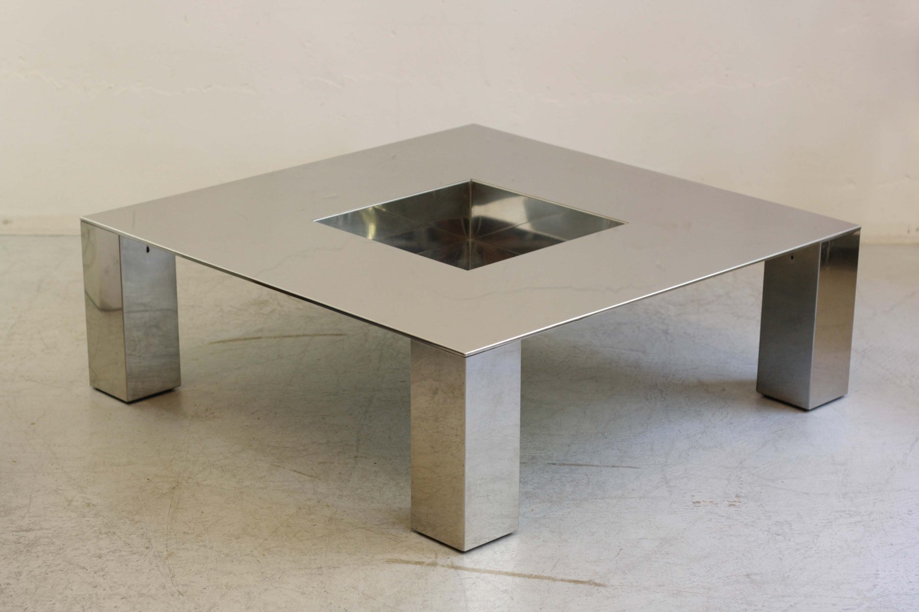 Tavolino da caffè Tebe quadrato in acciaio di Giovanni Offredi per Saporiti, anni '70
