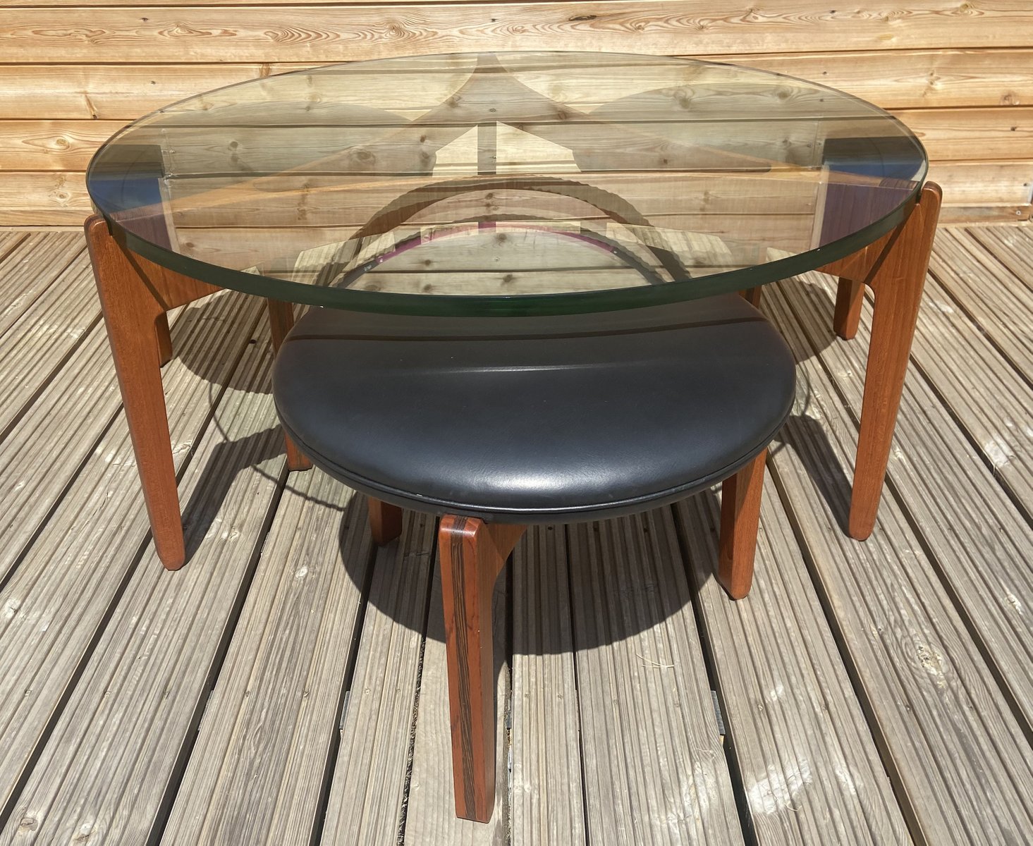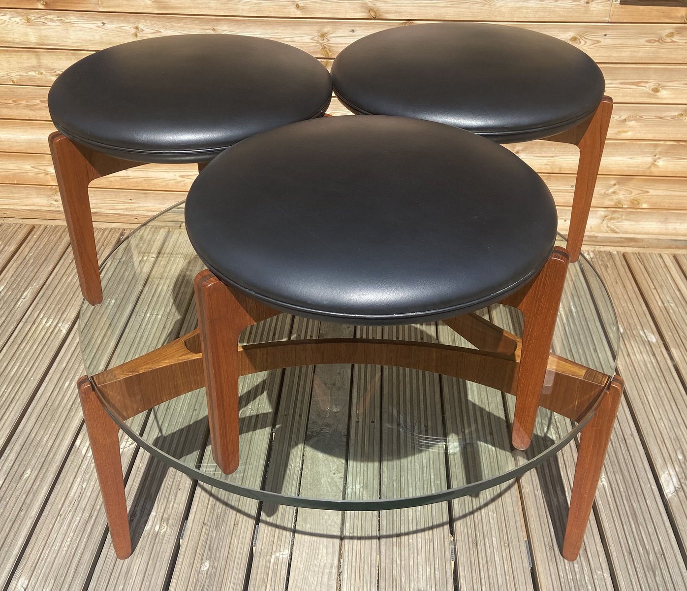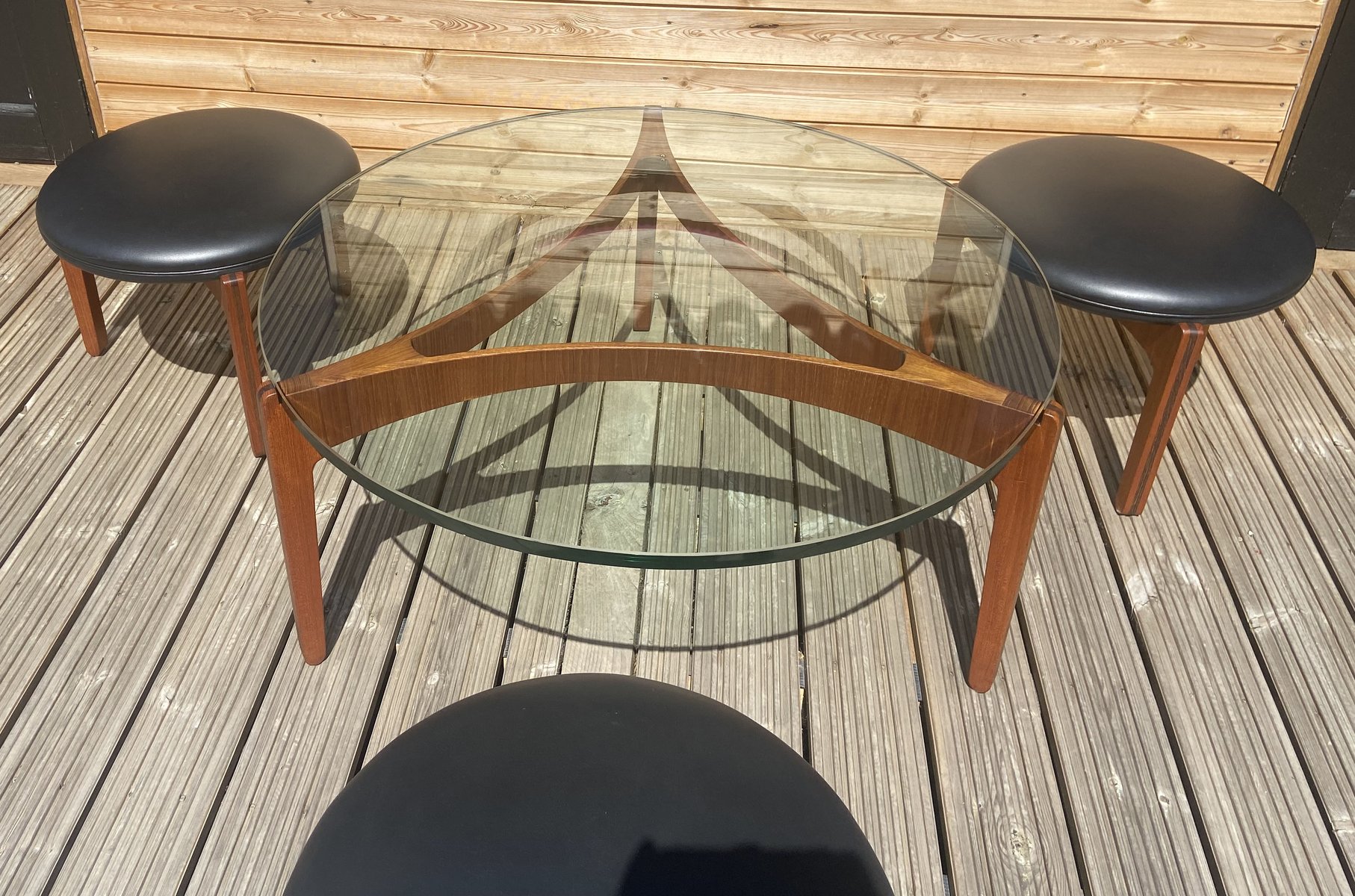 Tavolino da caffè vintage con ripiano in vetro e sgabelli di Sven Ellekaer per Christian Linneberg, set di 4