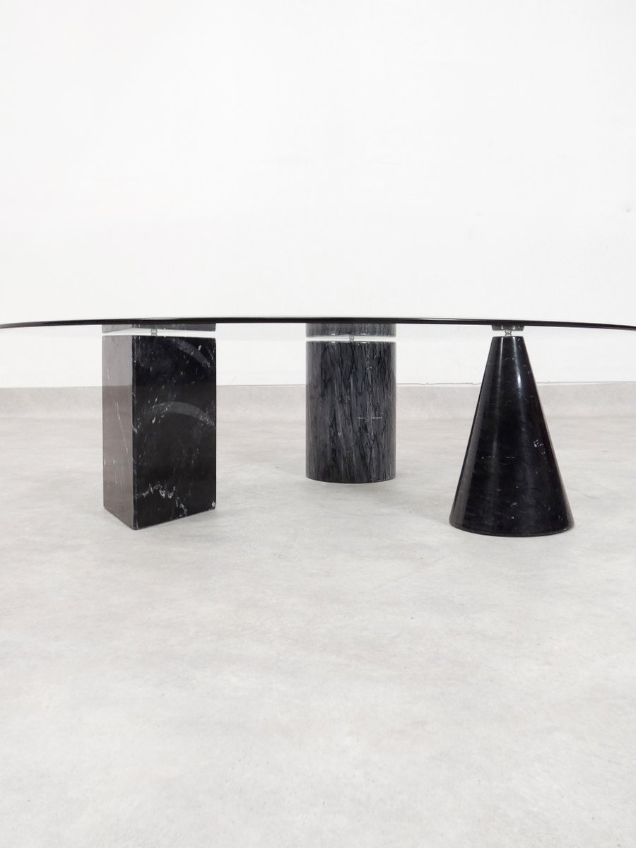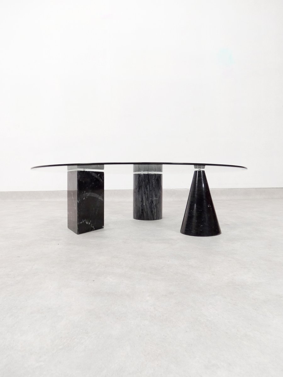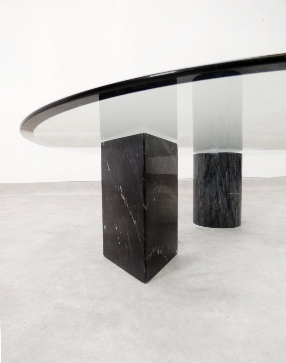 Tavolino da caffè vintage in marmo e vetro, Italia, anni '70