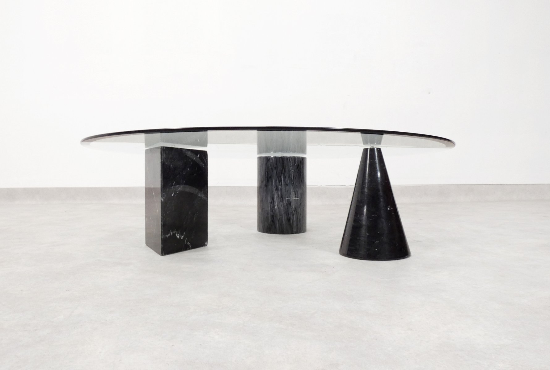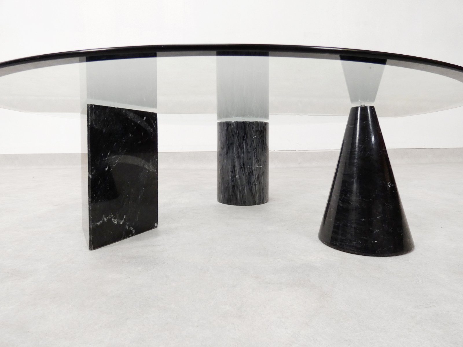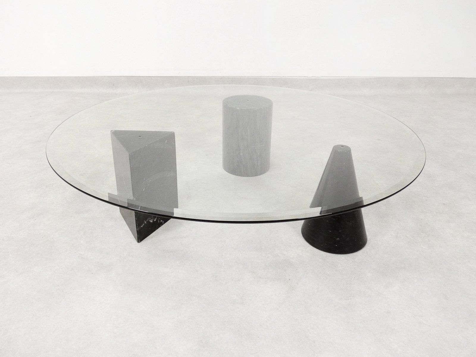 Tavolino da caffè vintage in marmo e vetro, Italia, anni '70