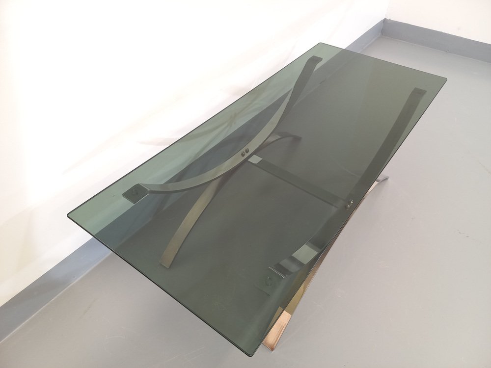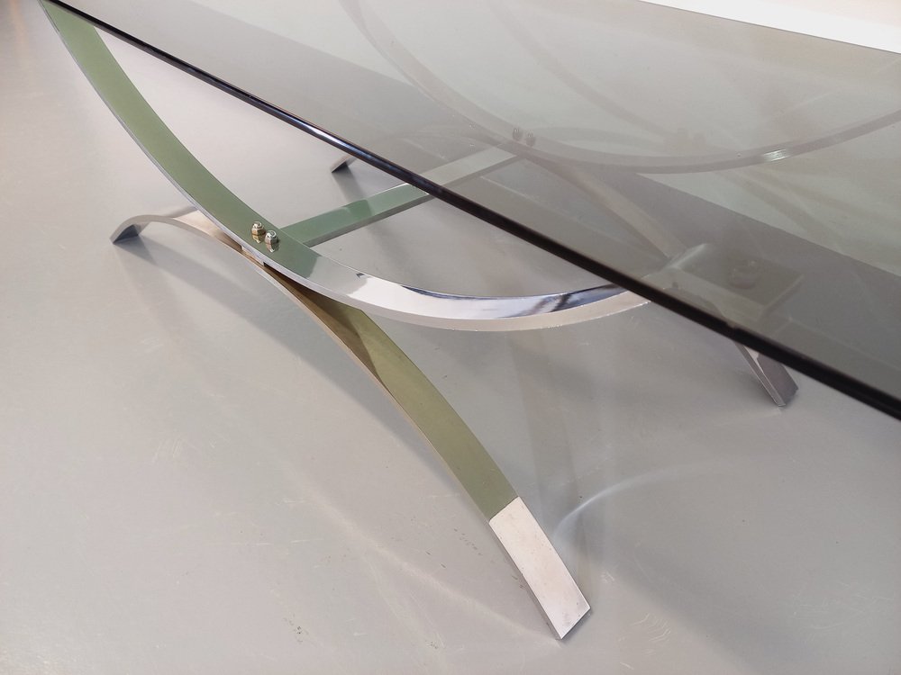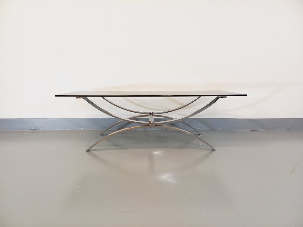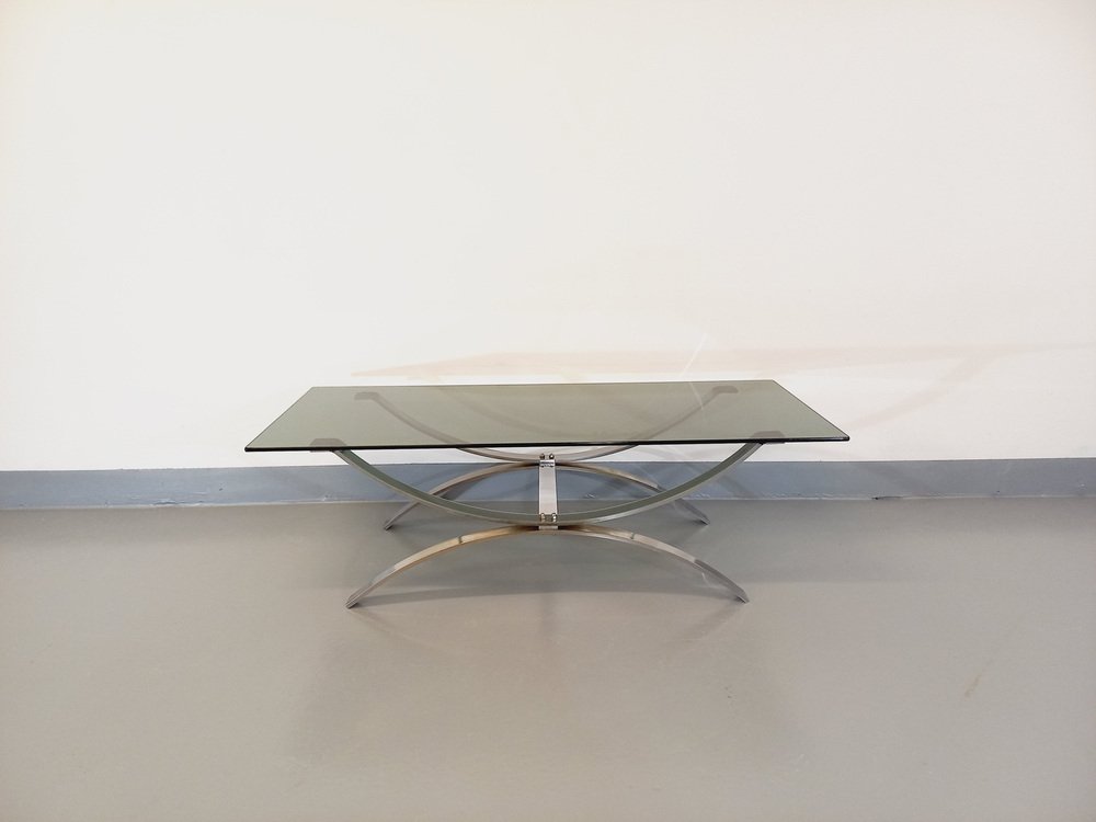 Tavolino da caffè vintage in vetro e metallo cromato, anni '70
