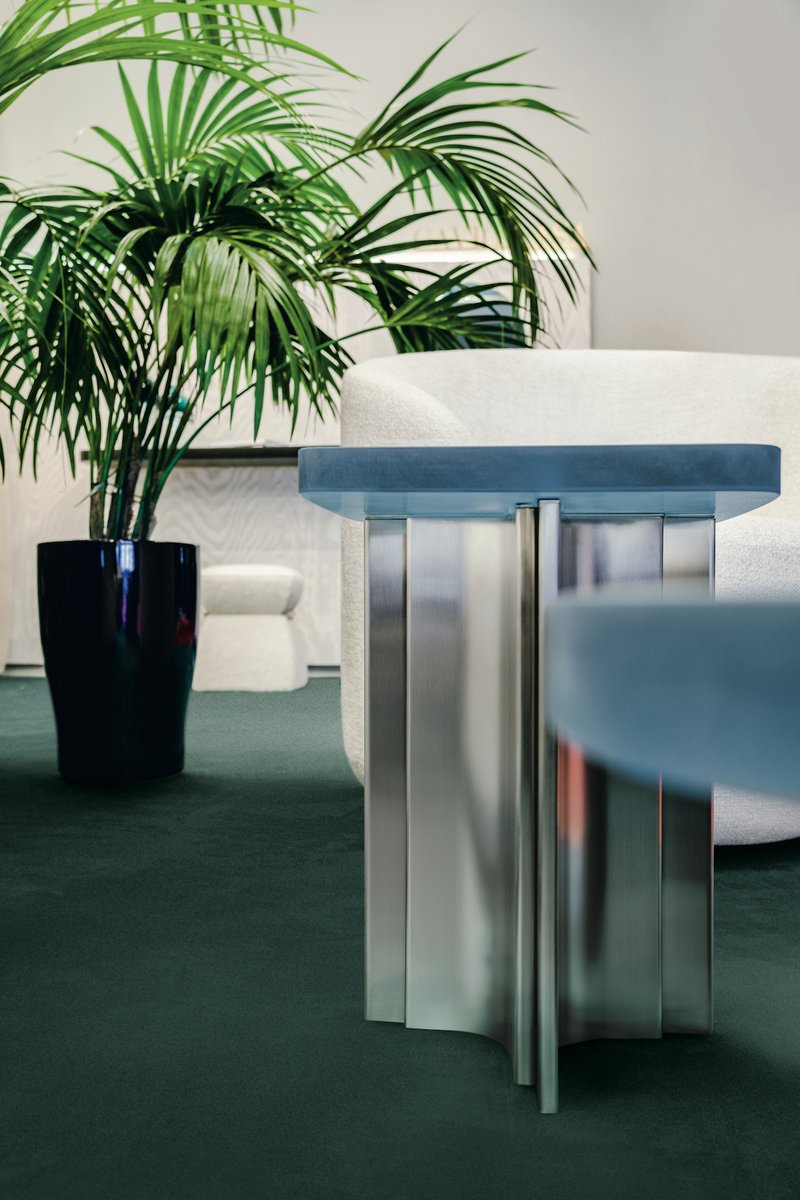 Tavolino Fossil in acciaio spazzolato e resina di Daniel Nikolovski & Danu Chirinciuc per KABINET, 2019