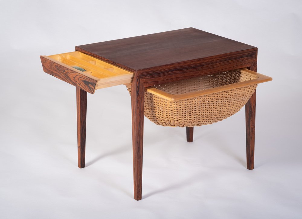 Tavolo da cucito in palissandro di Severin Hansen per Haslev, anni '50