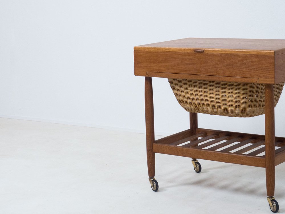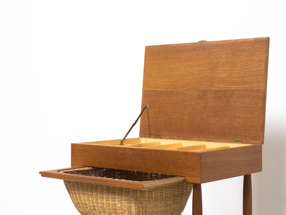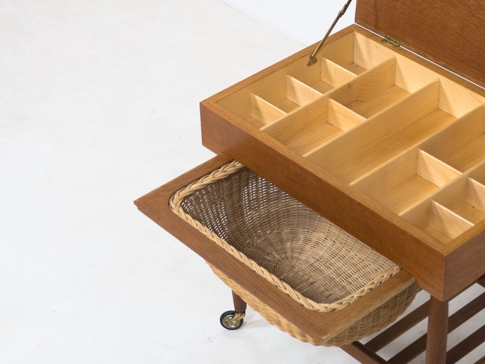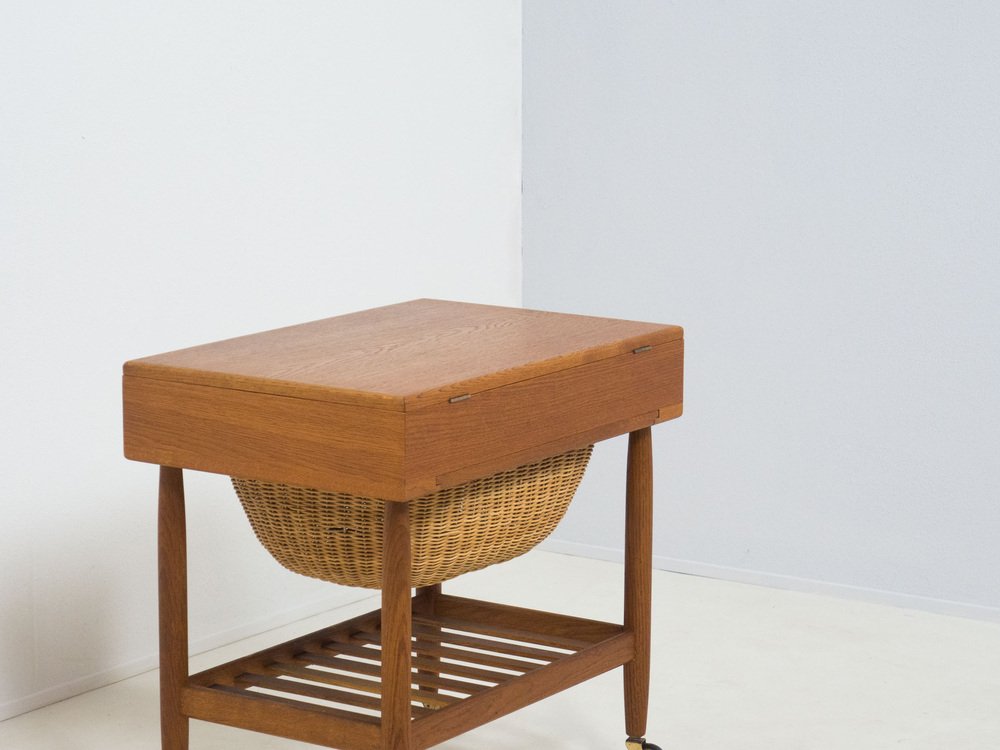 Tavolo da cucito R101 in quercia di Ejvind A. Johansson per FDB Møbler, anni '60