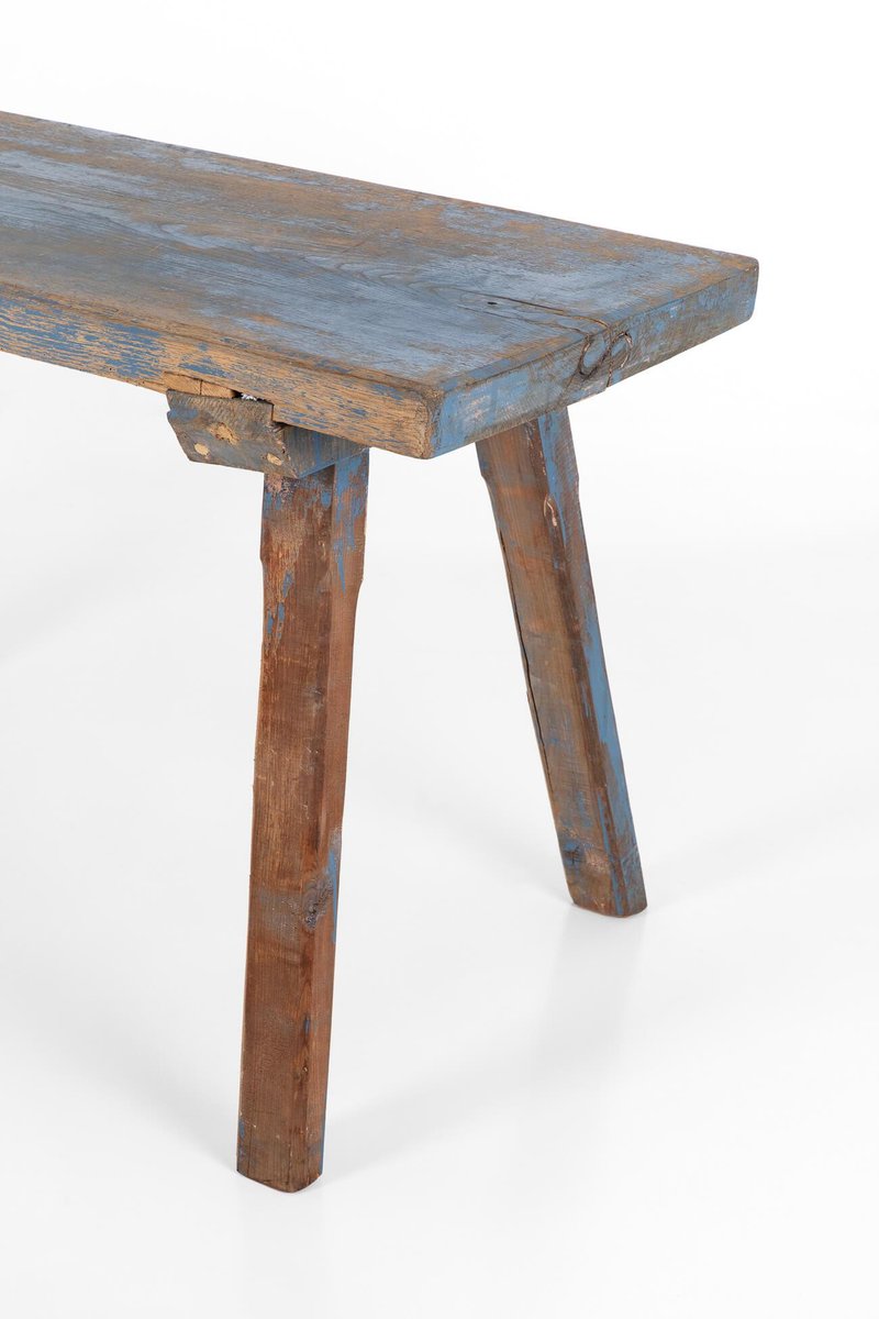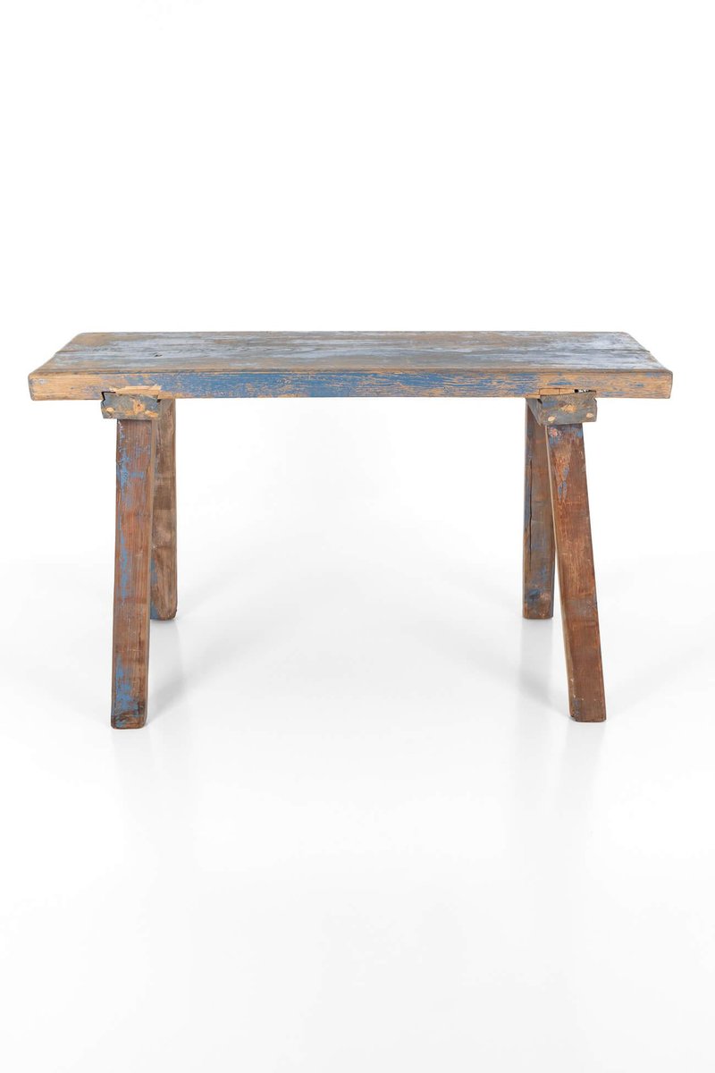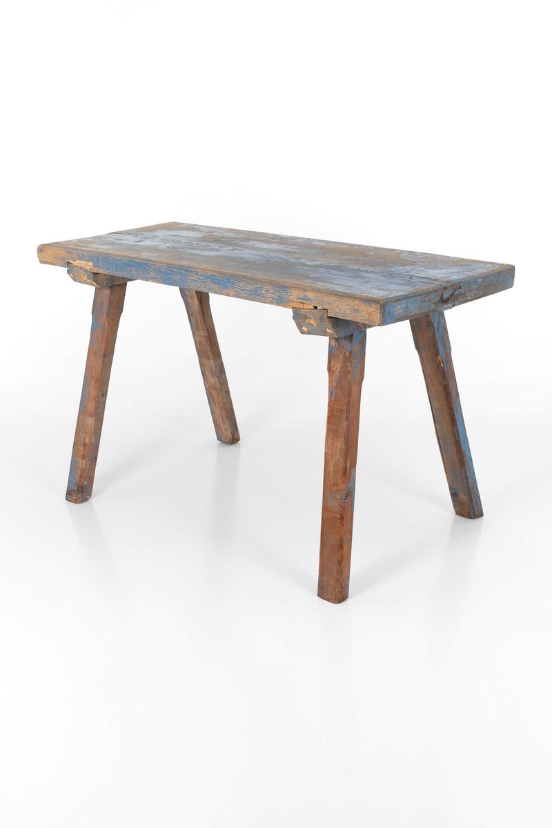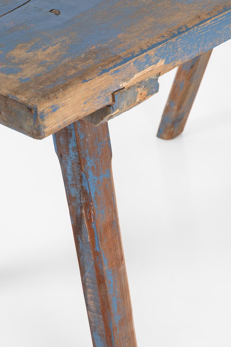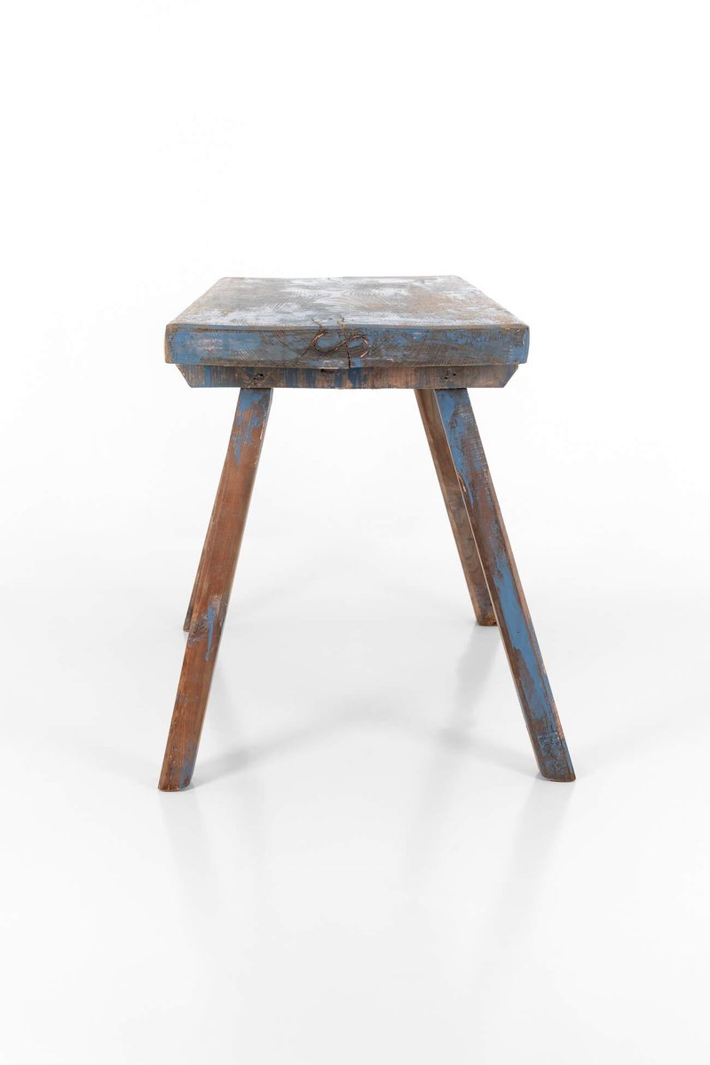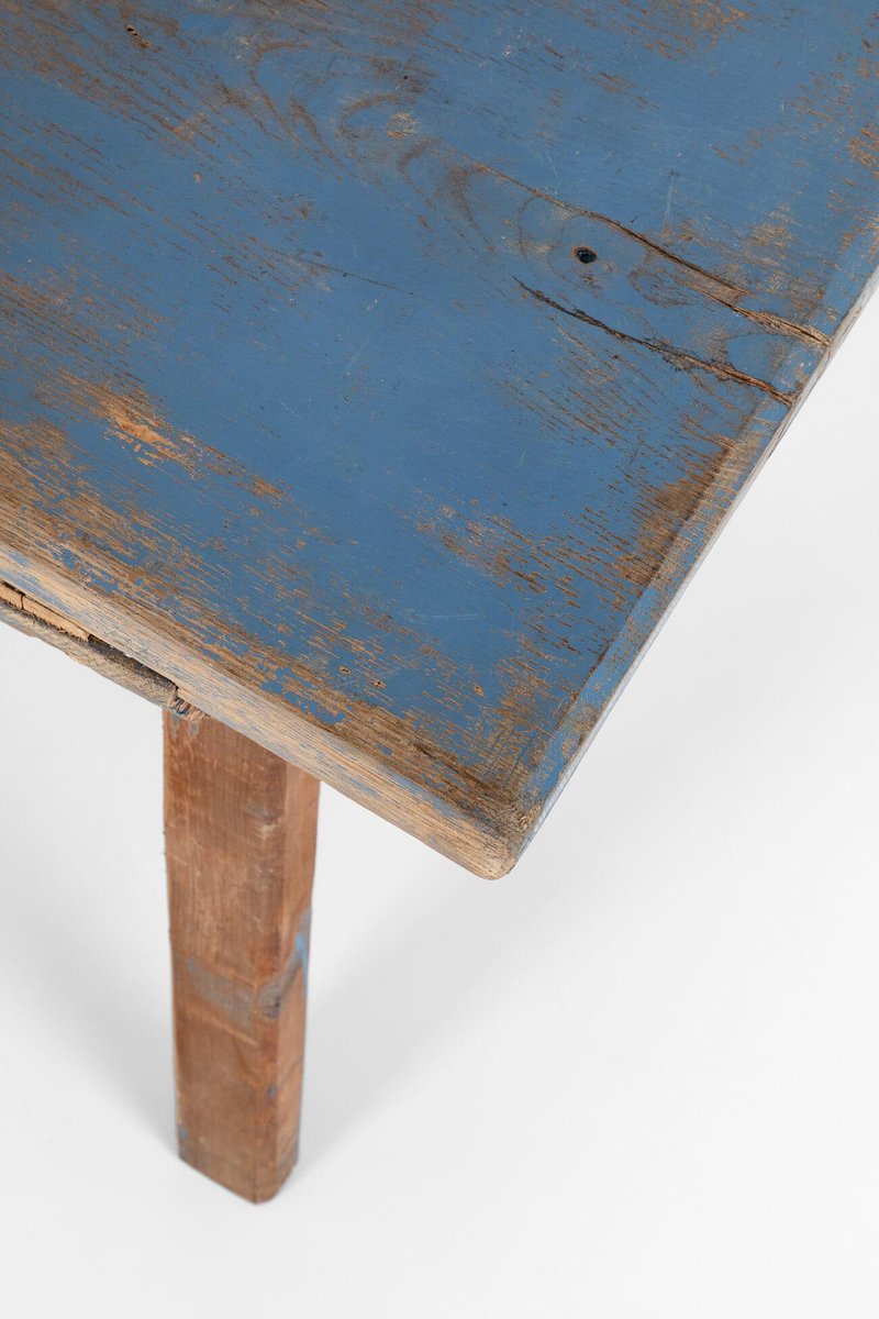 Tavolo da laboratorio blu rustico, fine XIX secolo