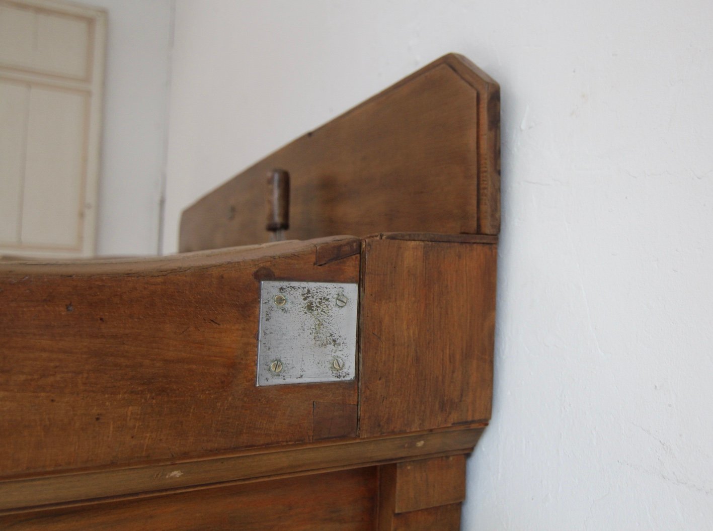 Buone condizioni, leggermente restaurato, con segni di usura dovuti all'età, tra cui vecchie gallerie di tarli (non attivi!). Tra l'altro, le superfici sono state completamente carteggiate, le crepe da ritiro sono state riempite e il tutto è stato risigillato con una finitura trasparente.