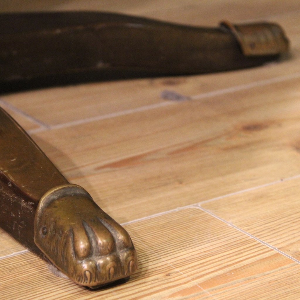 Great Italian dining table from the mid-20th century. Beautifully designed and beautifully furnished, made by Fratelli Rigamonti Desio, Milan, in the 1940s. Excellent size, quality, and service table with the original top with inset marbled glass. The mahogany base rests on four feet with brass zoomorphic decorations and a palisander veneer central column. This table comfortably seats eight, suitable for antique dealers and interior decorators. The table has minor signs of wear on the base and edge (see photo). Structurally sound, the table is in good condition.