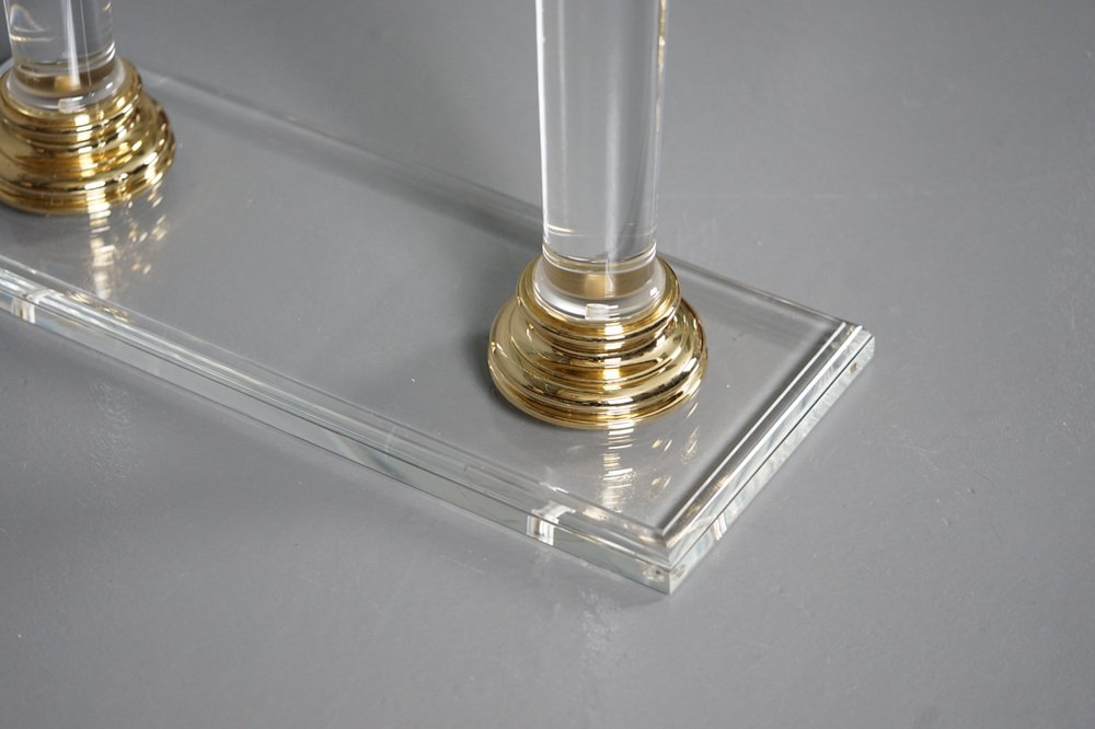 Tavolo da pranzo Hollywood Regency grande in vetro acrilico e vetro