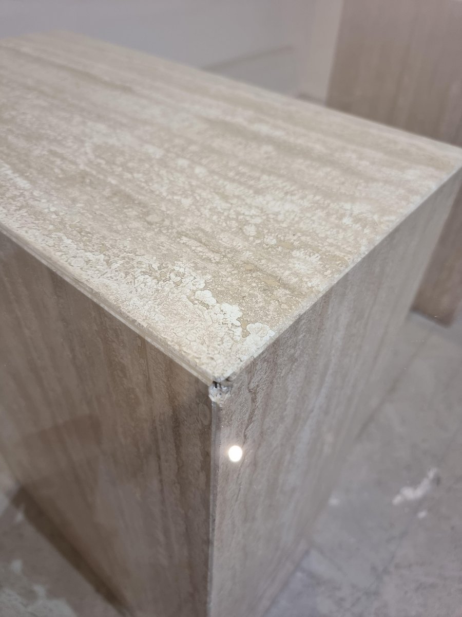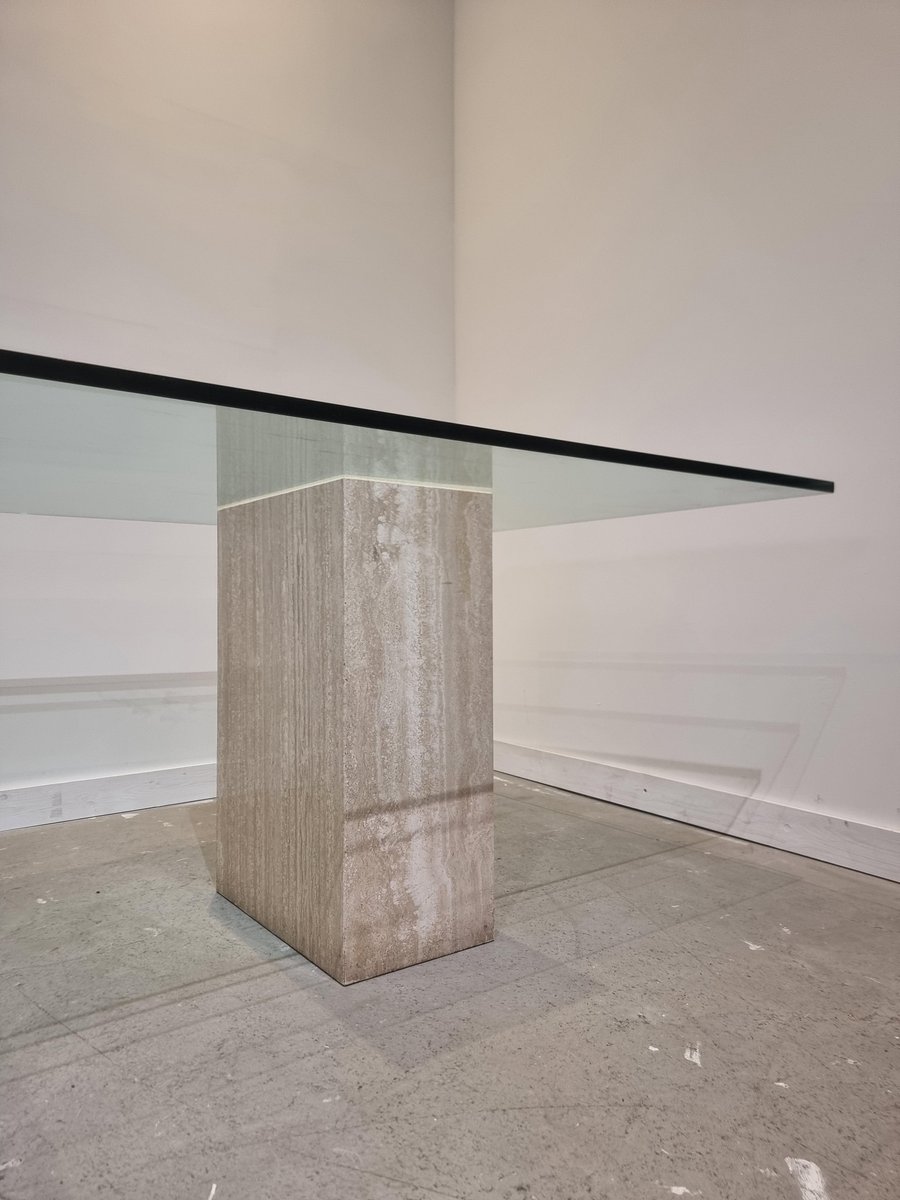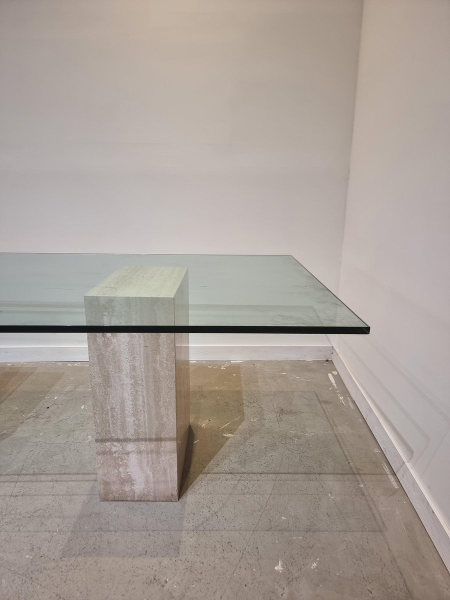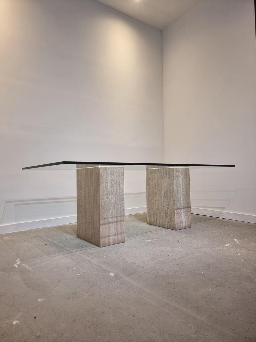Tavolo da pranzo in travertino con ripiano in vetro, Italia, anni '70