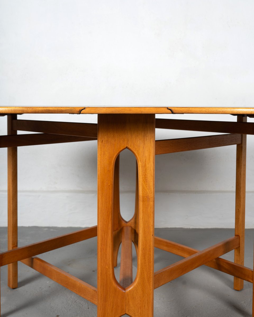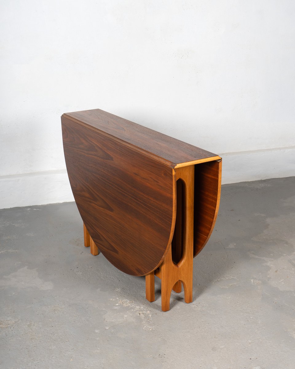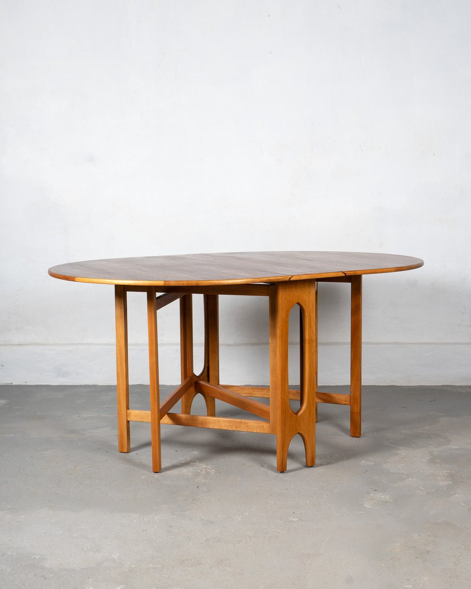 Ellipse folding dining table model nr. 2 by Bendt Winge for the Norwegian firm Kleppes Møbelfabrikk. It was produced between the 1950s and 1960s, years during which the designer collaborated with the brand in the design of several folding dining tables of exquisite craftsmanship and functionality.