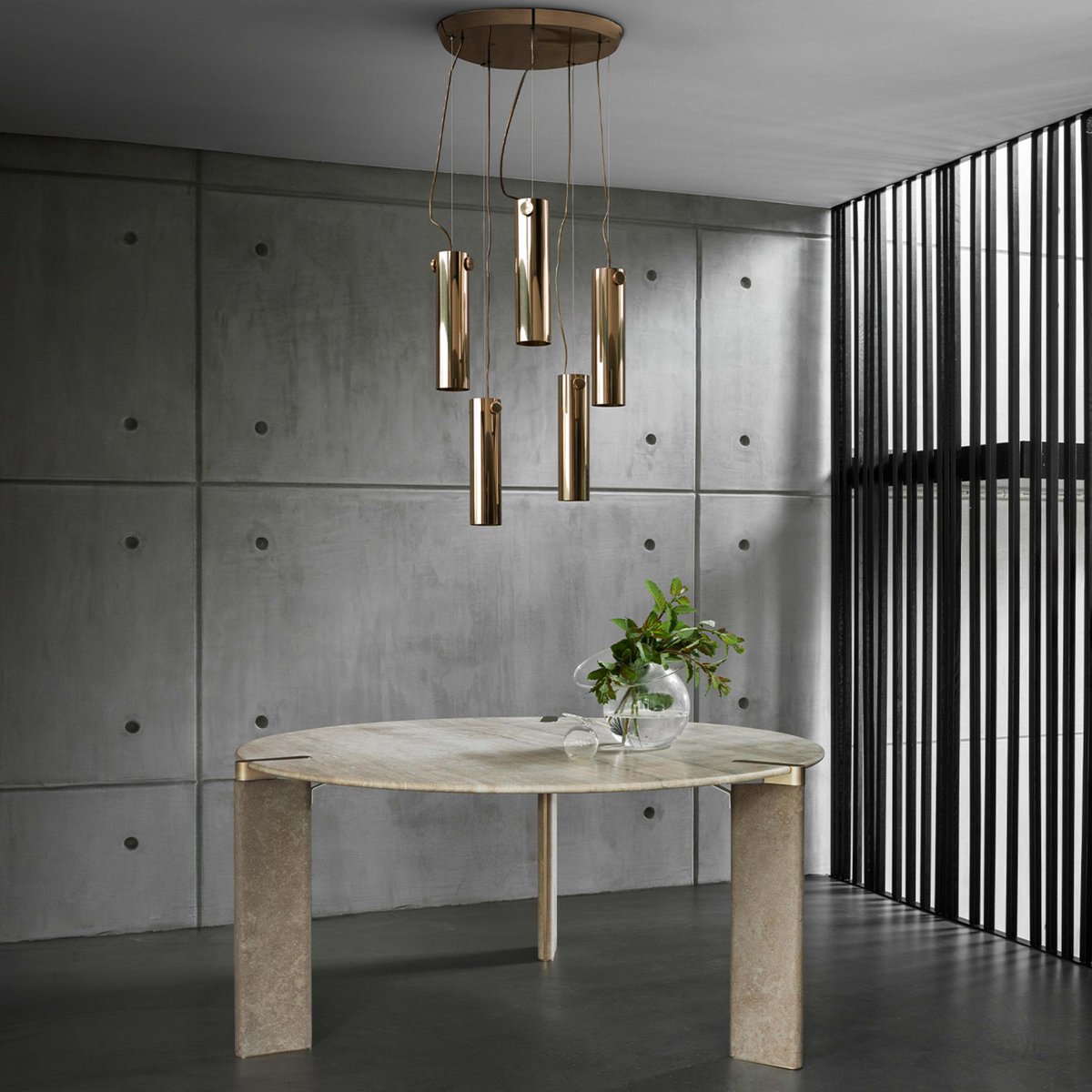 Tavolo da pranzo rotondo Eighty in travertino di Lorenza Bozzoli