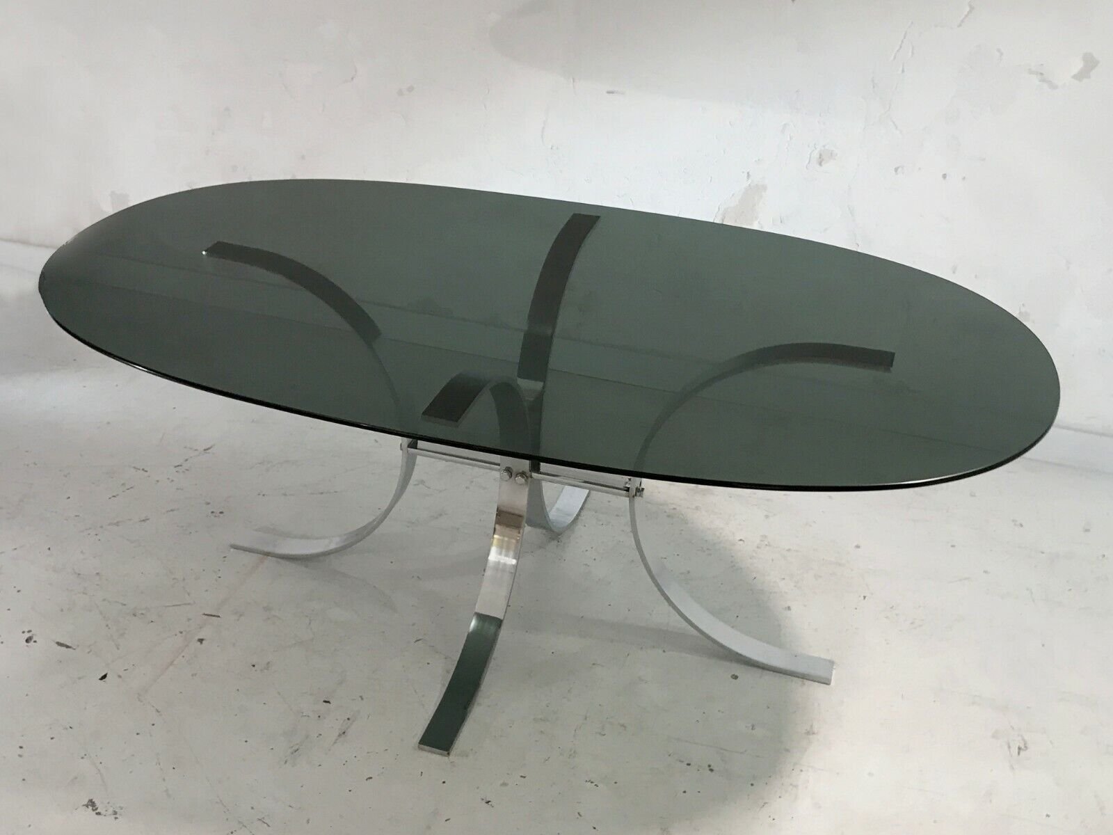 Qualità eccezionale. Doghe metalliche spesse e pesanti. Vetro acrilico spesso e dalle linee fluide in perfette condizioni. Piano in vetro fumé in perfette condizioni.