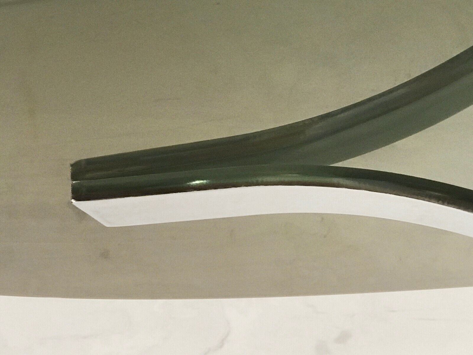 Exceptional quality. Thick, heavy metal slats. Thick acrylic glass with fluid lines in perfect condition. Smoked glass top in perfect condition.