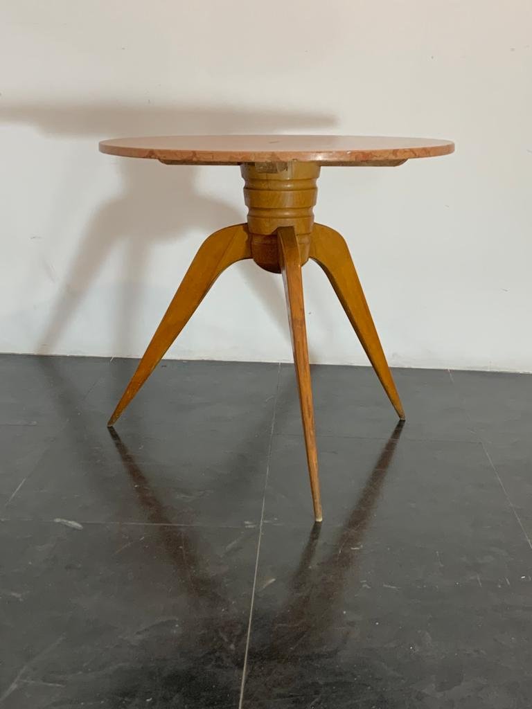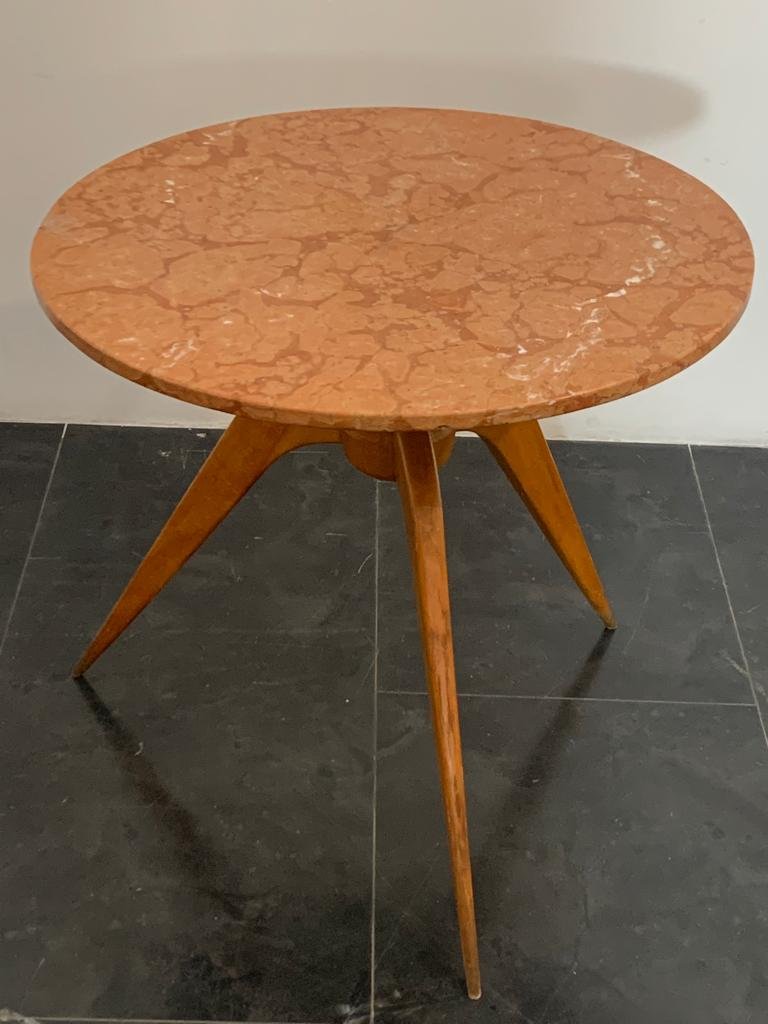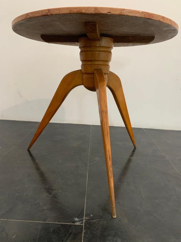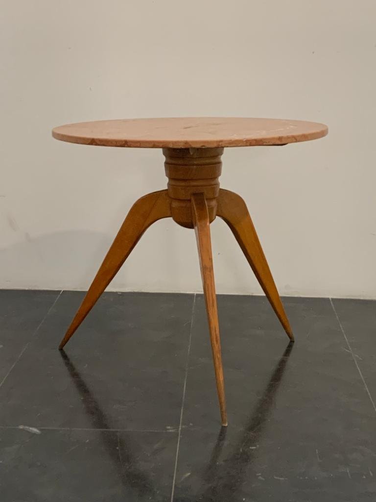 Tavolo da pranzo vintage in ciliegio e marmo, anni '50