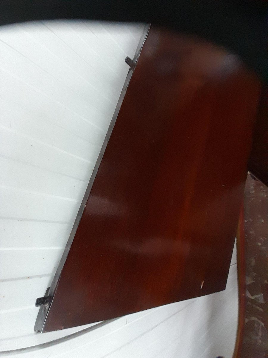 Condizioni Il tavolo presenta lievi segni di usura sulla superficie lucida del piano, inclusi lievi graffi e segni. Le componenti strutturali sottostanti appaiono solide, inclusa una certa quantità di polvere e sporcizia dovuta all'età. Le rotelle sono presenti e funzionanti. Il tavolo è ben conservato e presenta una bella patina, che molto probabilmente indica la finitura originale, probabilmente tecnica politoer su legno di mogano. Il meccanismo funziona senza intoppi.