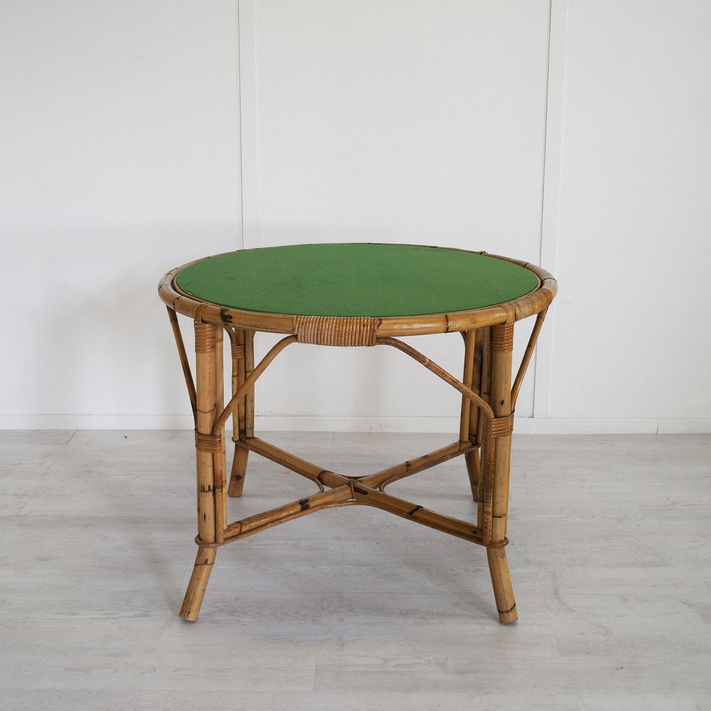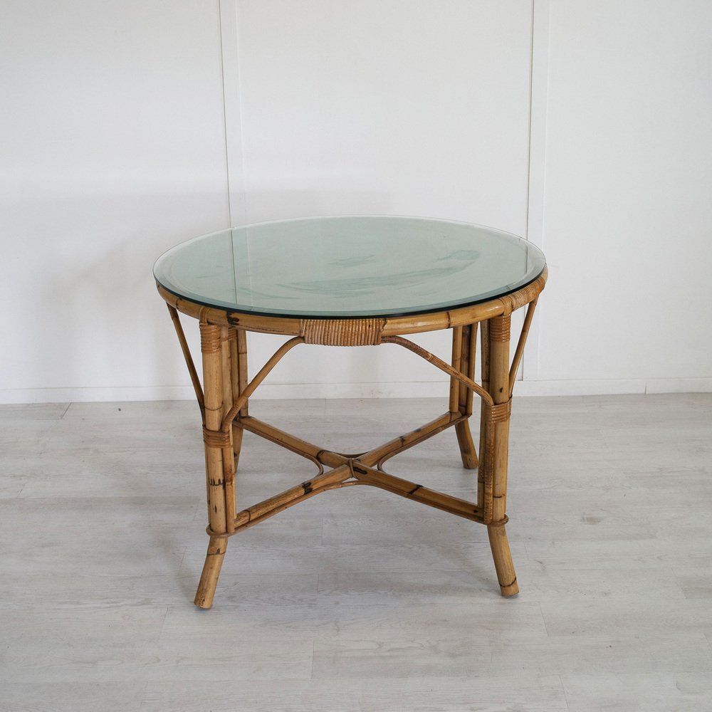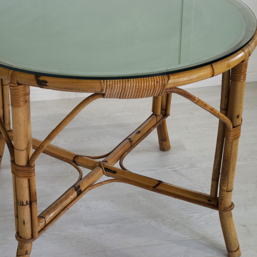 Tavolo in bambù con ripiano in vetro, Italia, anni '60