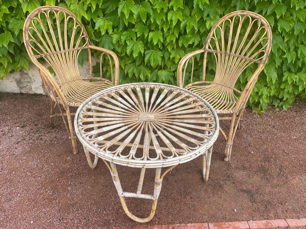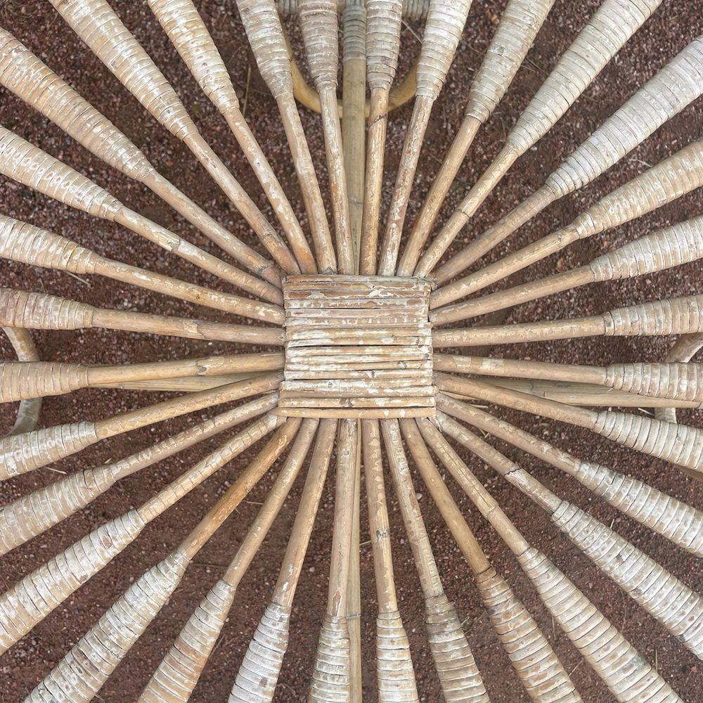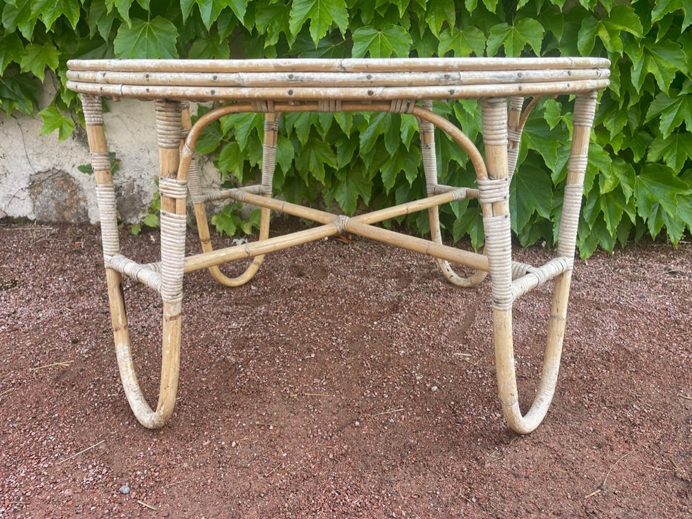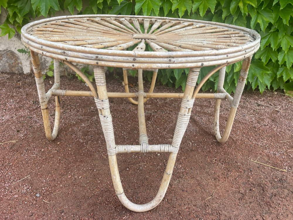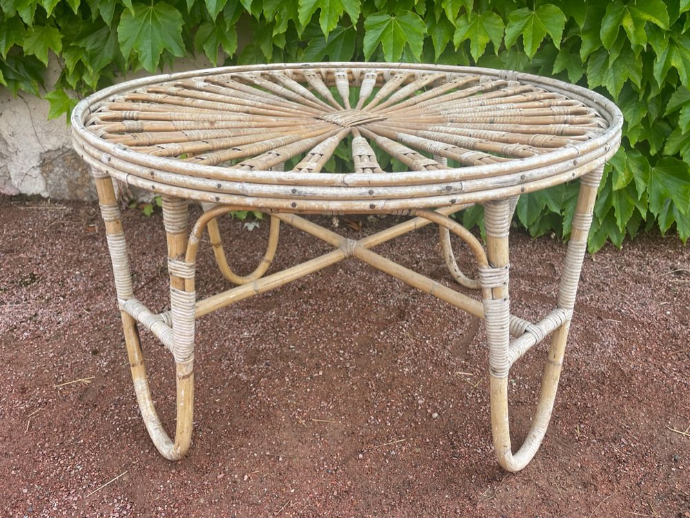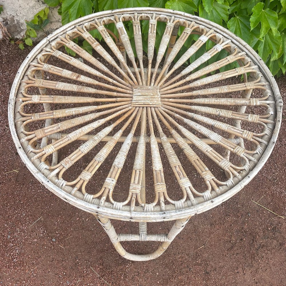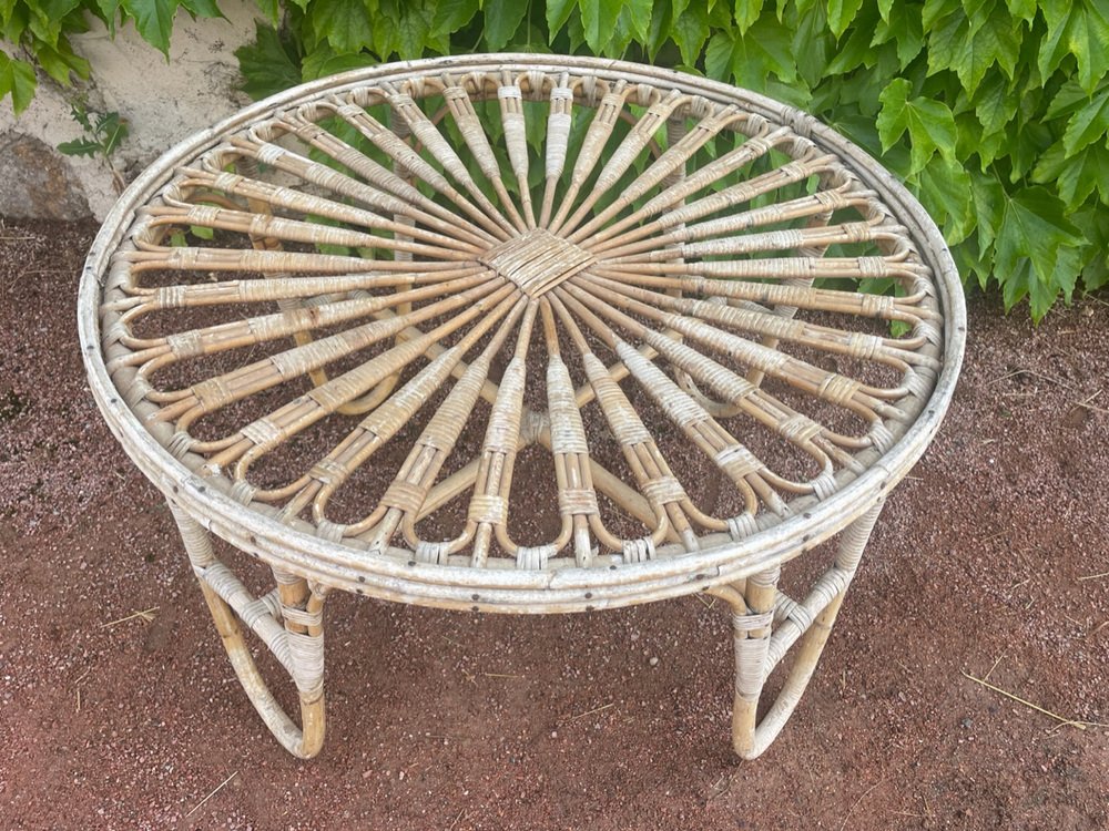 Tavolo rotondo vintage in vimini, anni '50