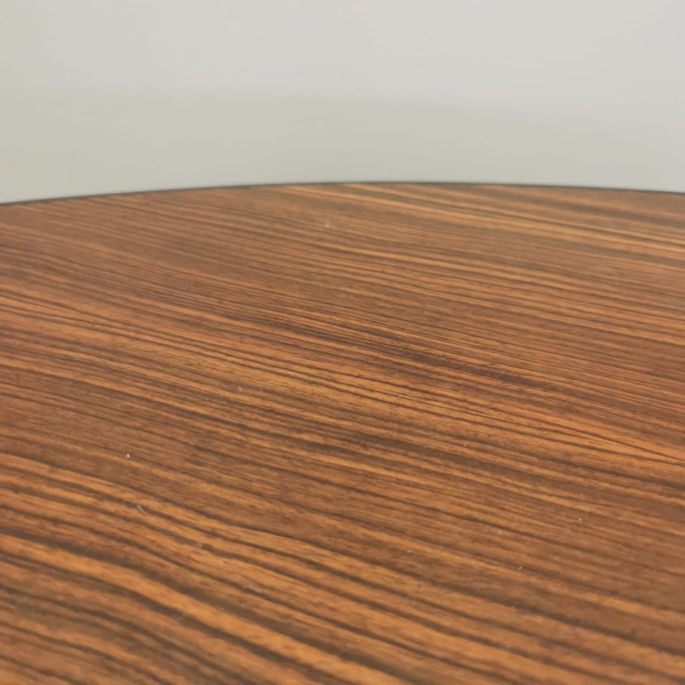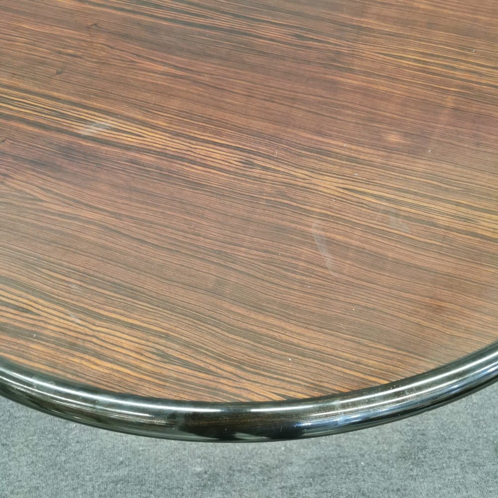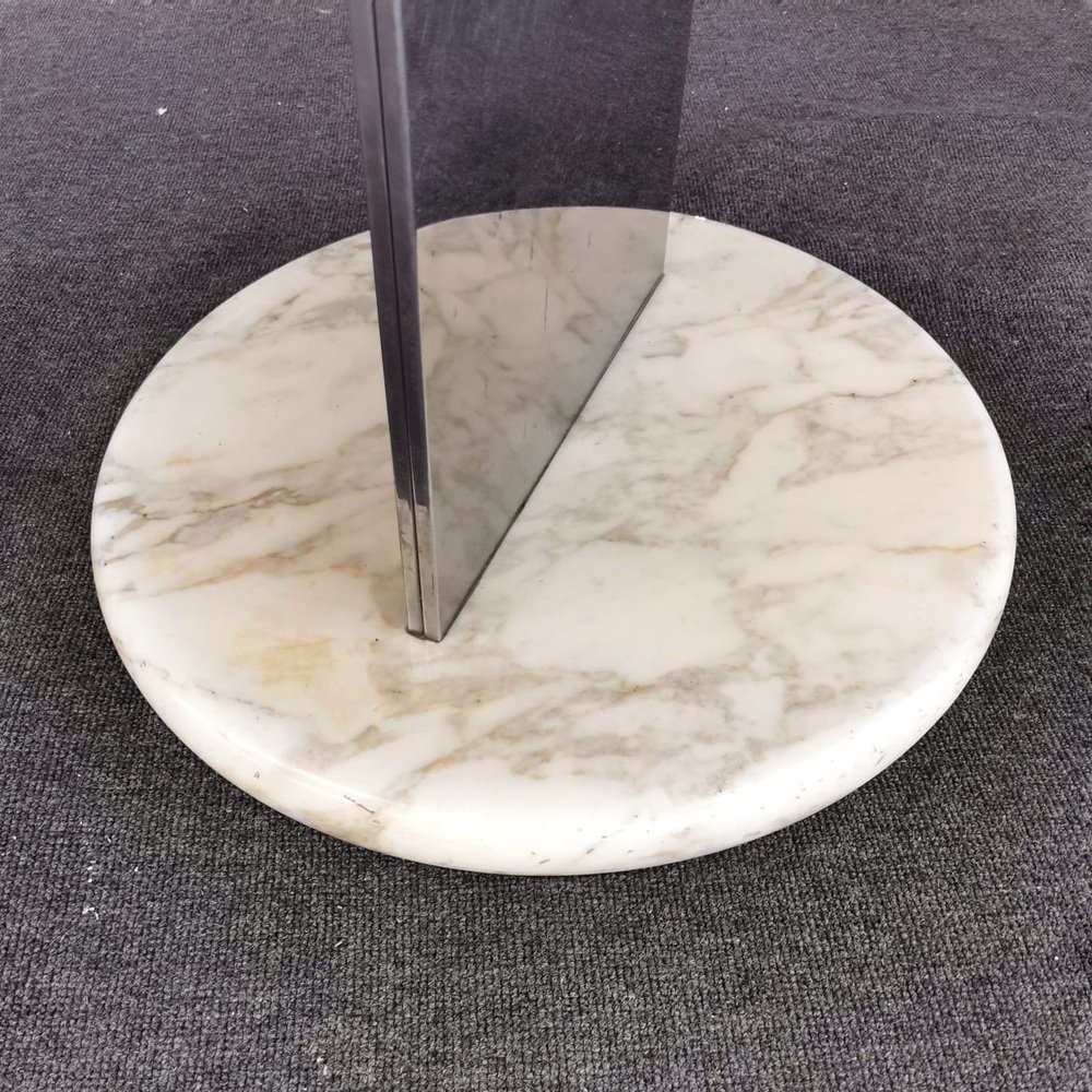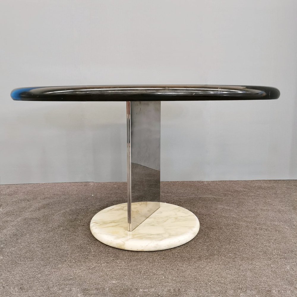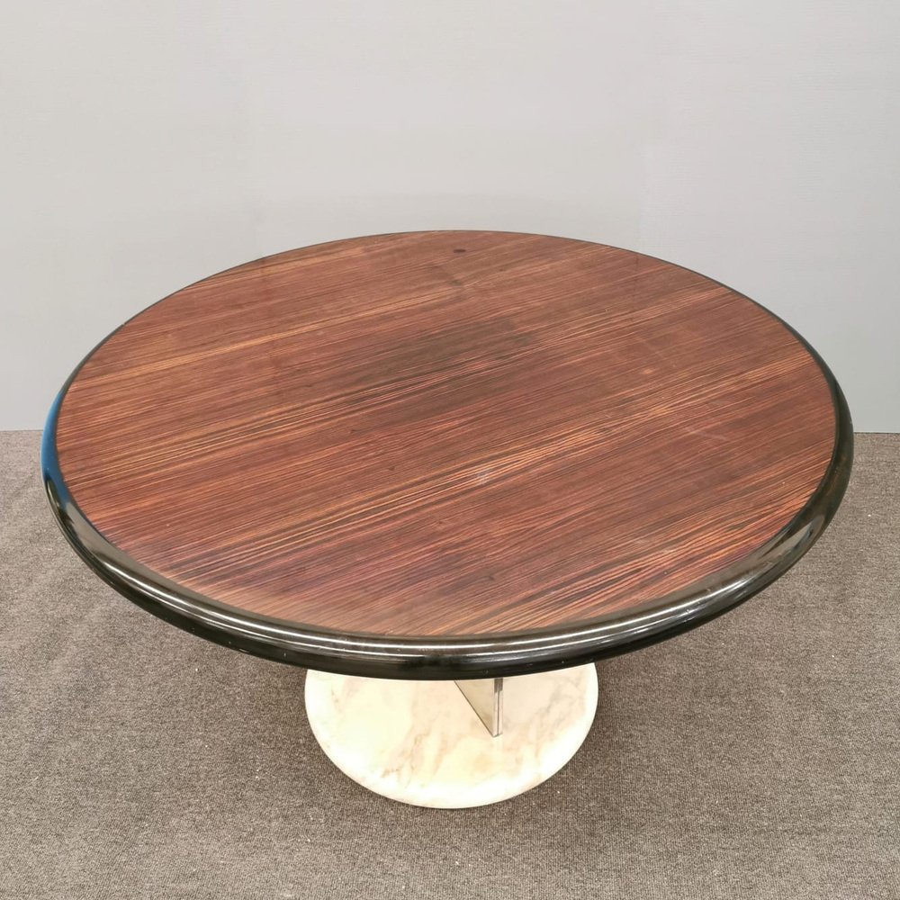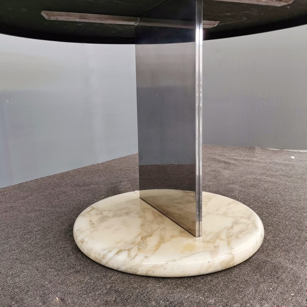 Tavolo vintage rotondo in legno con base in marmo e base in acciaio, anni '70