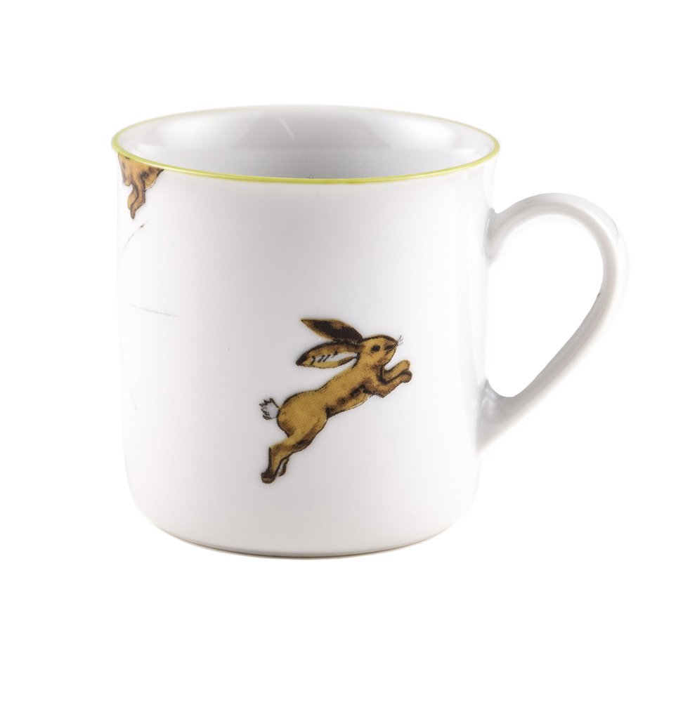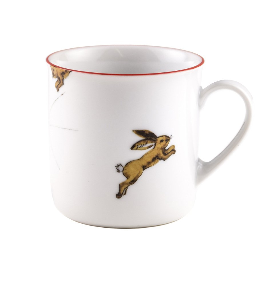 I pezzi di porcellana 1946 sono decorati con figure di lepri, bambine, bambole, uccelli e sole, che creano un ambiente divertente e familiare, ma moderno.