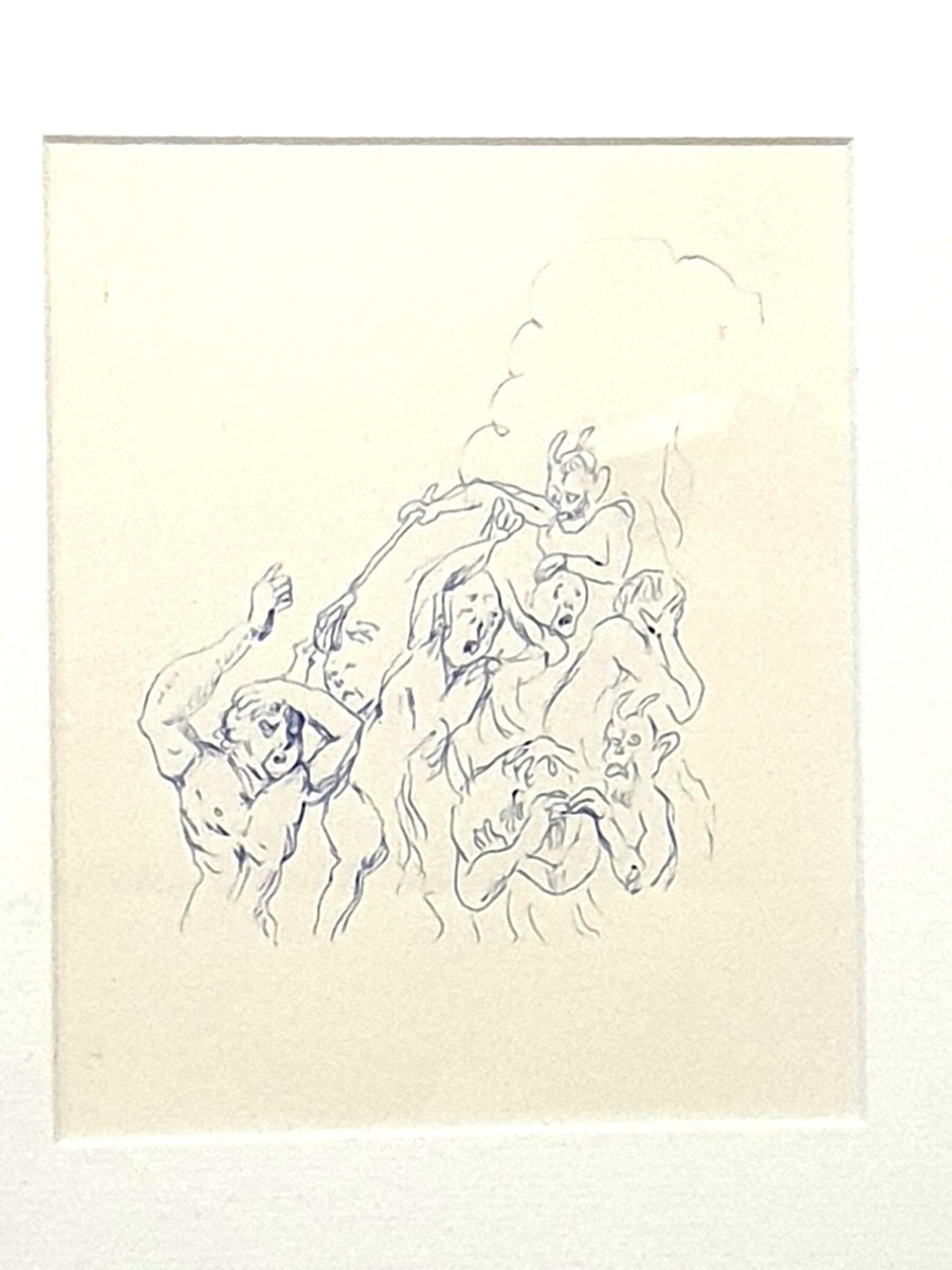 Tsuhugaru Foujita - Fear - Original Drawing 14 x 11.9 cm Ballpoint pen ink on paper Provenance: Succession Kimiyo Foujita Léonard Foujita (French/Japanese, 1886–1968) Léonard Tsugouharu Foujita was a painter and printmaker, born in Edogawa, Tokyo. He received his formal training at the Imperial School of Fine Arts, quickly attracting success, with commissions from the emperors of Korea and Japan. In 1913, he traveled to Paris, immediately befriending many of the leading painters of the day, including Pablo Picasso, Juan Gris, Henri Matisse, Henri Rousseau, and Chaim Soutine. Born 1886 (Meiji 19) to a family of a medical officer at Shin-Ogawamachi, Shinjuku-Ku, Tokyo. Following the advise of Mori Ōgai who was a superior to Foujita’s father, Foujita entered the Tokyo School of Fine Arts (now Tokyo University of the Arts). Not fully satisfied with the main trend of bright pleinairisme-style paintings, Foujita found himself in France at the age of 26 in 1913. In 1929, Foujita returned temporarily to Japan for the first time in 16 years to attend the exhibition celebrating his triumphant return. He continued his activities in Japan after 1933. When the Sino‐Japanese war started, with the intention to contribute to his own country, he concentrated in painting large-sized war paintings. Such activities were harshly criticized after the war by the art circles accusing him as a collaborator of the war. Foujita left Japan taking responsibility of such activities. Returning to Paris with the intention of never going back to Japan, Foujita acquired French nationality in 1955. In 1959 at the age of 72, Catholic Church baptized Foujita at the Cathédrale Notre-Dame de Reims and christened Léonard. In his later years, wanting to show the gratitude to the Cathédrale Notre-Dame de Reims, he intended a construction of a chapel, la chapelle Notre-Dame-de-la-Paix (also known as the Foujita Chapel). He died two years after the completion of the chapel.