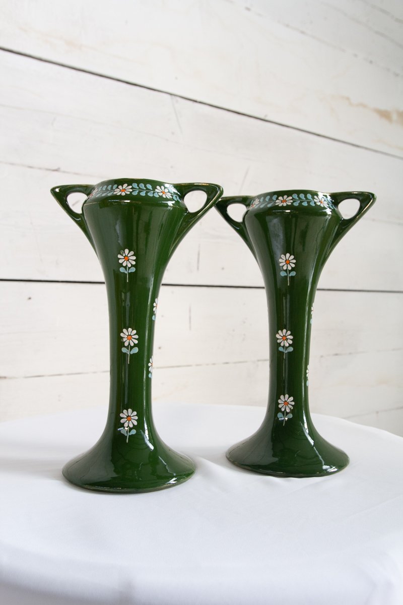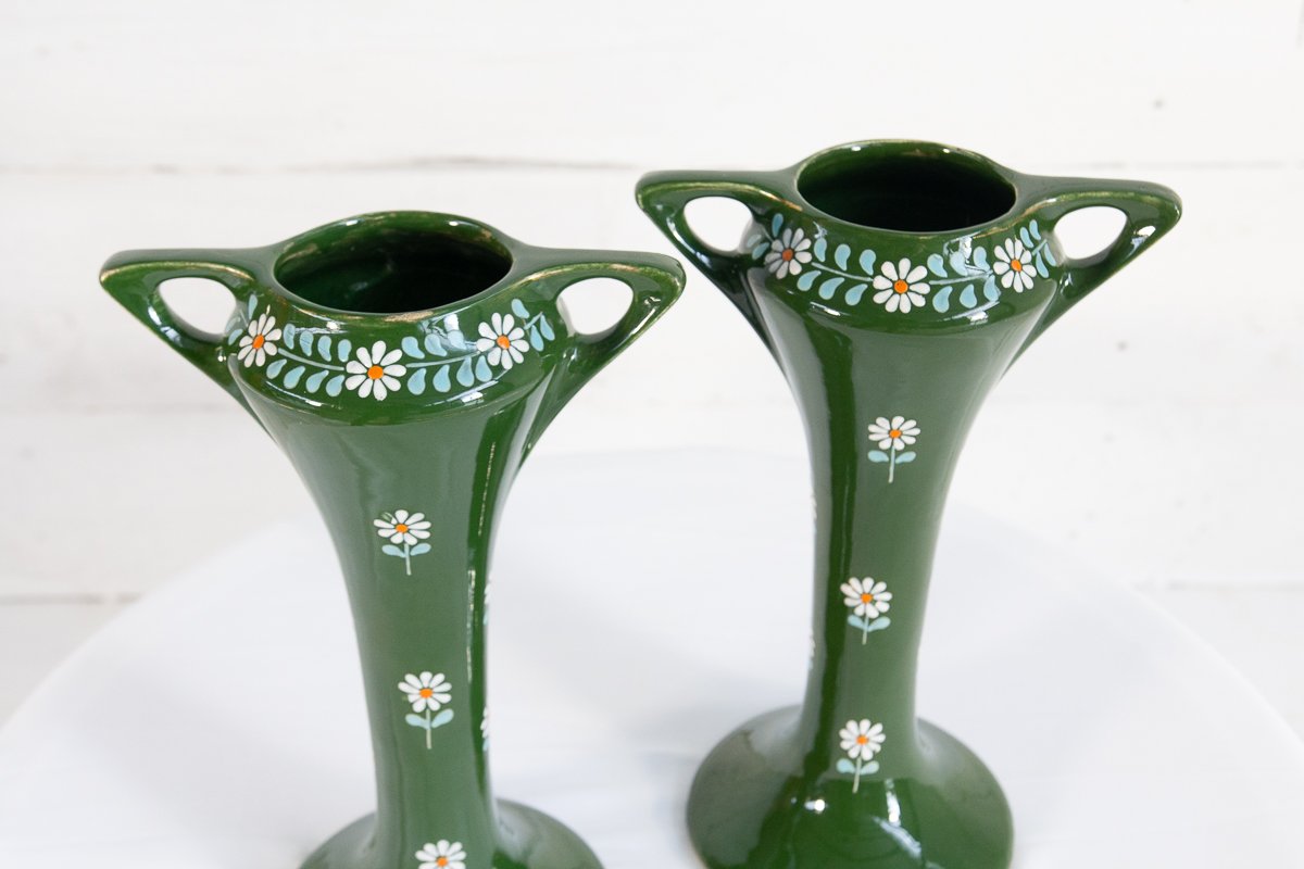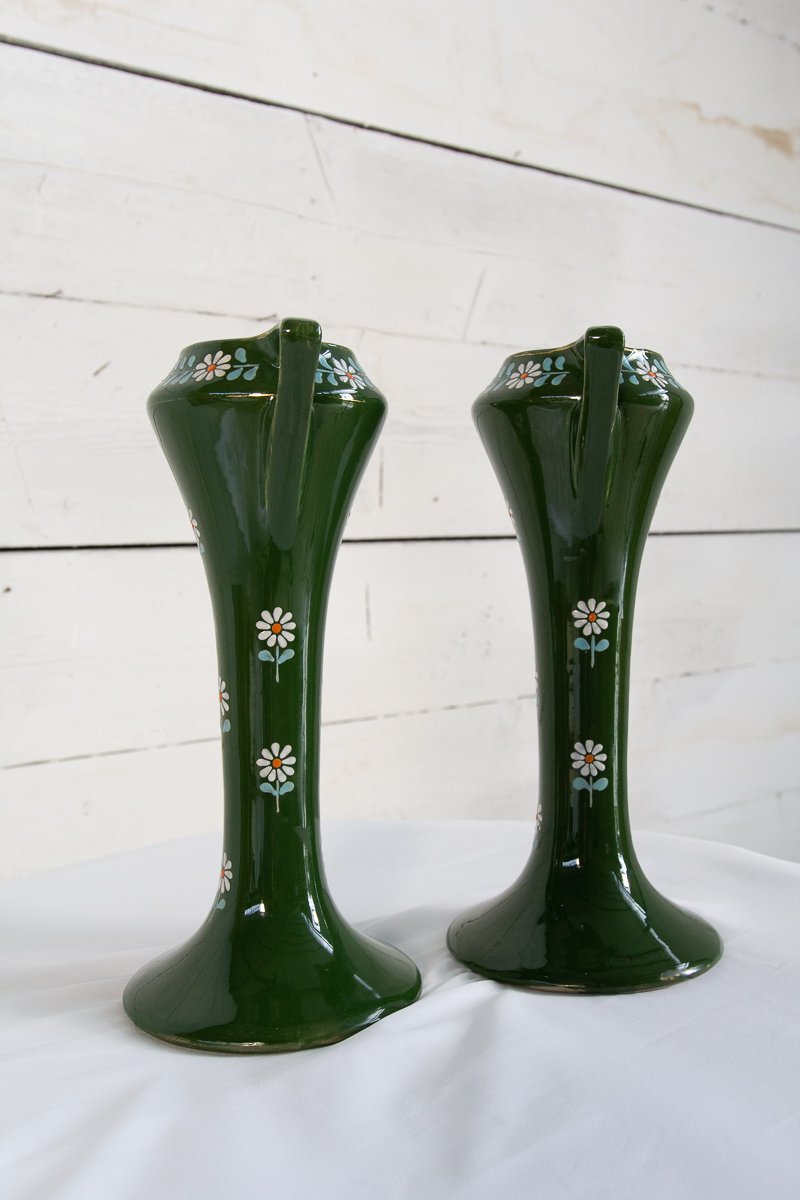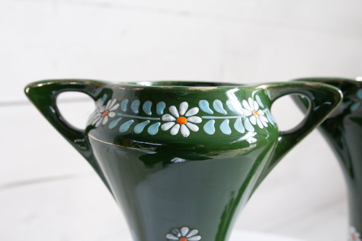 Vasi Art Nouveau in ceramica, fine XIX secolo, set di 2