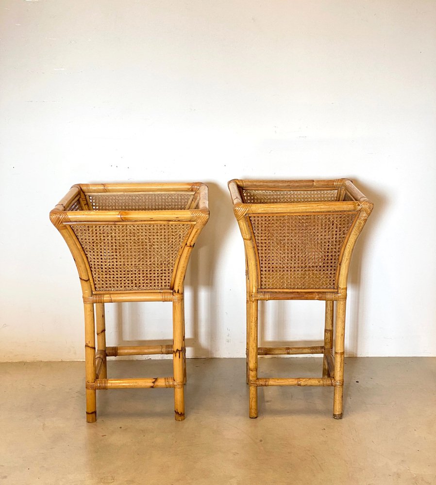 Vasi da fiori in paglia e bambù, anni '70, set di 2