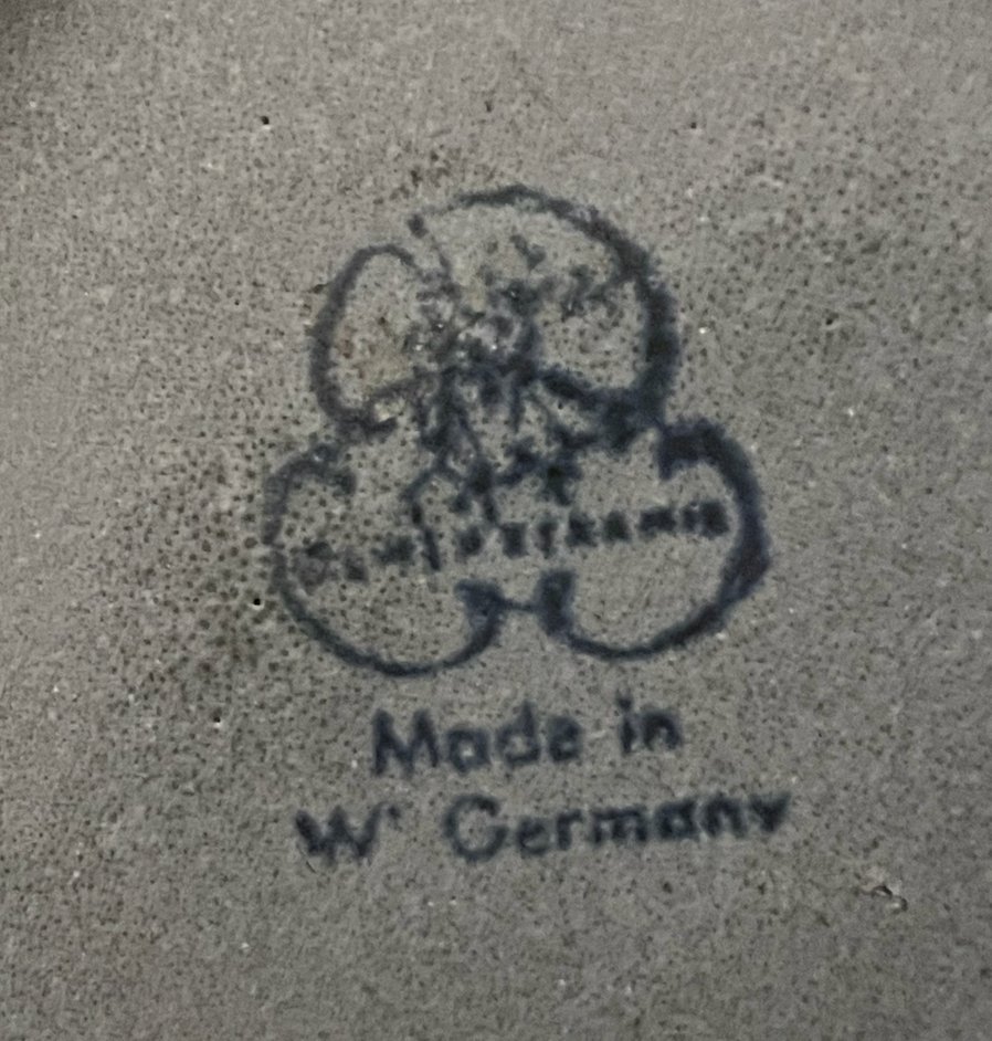 Tra i nove pezzi, due vasi sono contrassegnati dall'Abbazia di Laach, dove Theodor Bogler, noto artista del Bauhaus, fondò il laboratorio di ceramica. Un altro pezzo è contrassegnato da Ulmer Keramik, un rinomato studio di ceramiche della Germania occidentale. Alcuni dei vasi recano solo marchi numerici o "West Germany", una designazione utilizzata dalle ceramiche della Germania occidentale del secondo dopoguerra, collegando ulteriormente questo set alla storia più ampia delle ceramiche della metà del secolo. Questo mix di marchi testimonia la varietà dei produttori di quest'epoca, evidenziando la diversità della ceramica della Germania occidentale.