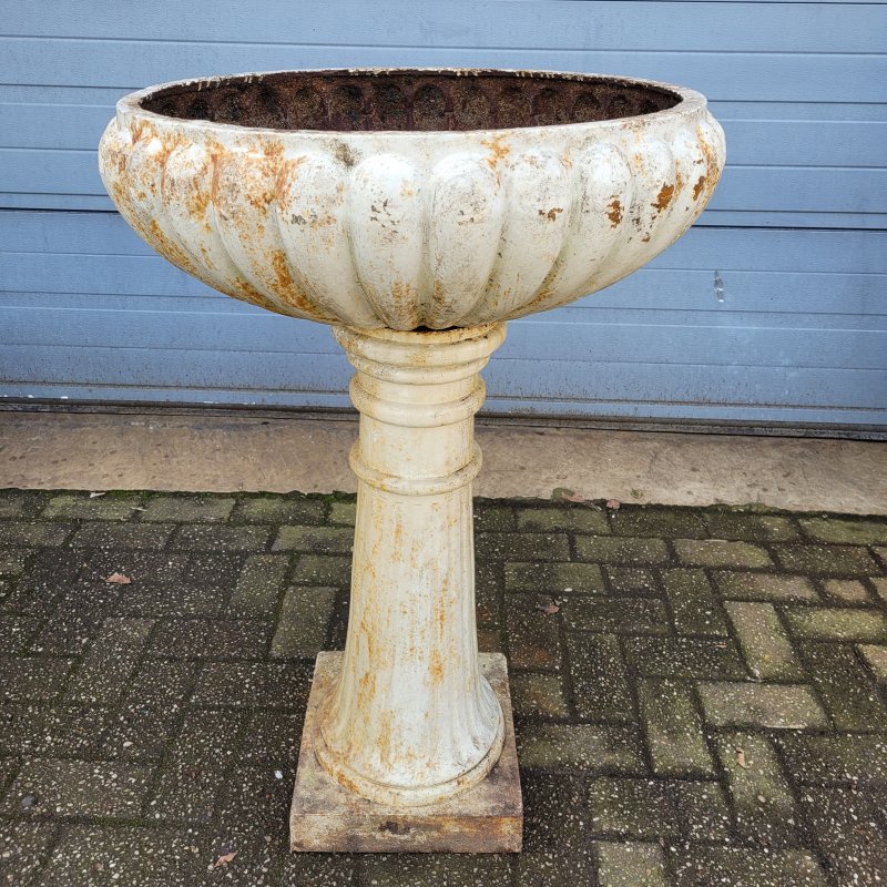 Vaso antico in ghisa francese su base Jardiniere