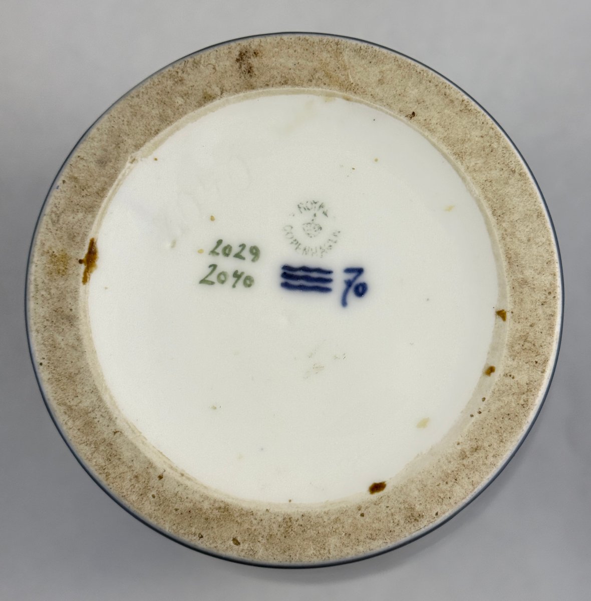 Over time, Royal Copenhagen has passed hands from succeeding Danish sovereigns to the Aluminia faience company in 1882, and later in the 20th century incorporating with other Danish applied arts specialists like Georg Jensen, Holmegaard Glassworks, and Bing & Grøndahl. It’s now a subsidiary of Fiskars. The brand’s identifying stamps have also changed over time, but have consistently included three elements: three wavy lines symbolizing the Øresund, the Great Belt, and the Little Belt waterways in Denmark, the crown emblem representing the traditional royal patronage, and the individual artist’s signature marks.