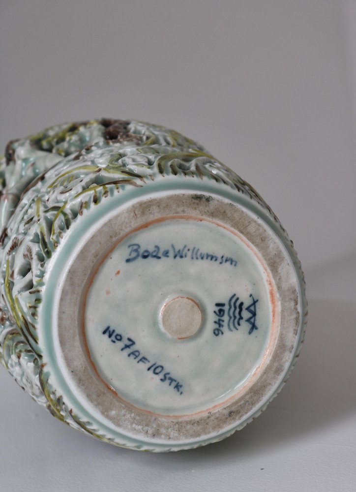Over time, Royal Copenhagen has passed hands from succeeding Danish sovereigns to the Aluminia faience company in 1882, and later in the 20th century incorporating with other Danish applied arts specialists like Georg Jensen, Holmegaard Glassworks, and Bing & Grøndahl. It’s now a subsidiary of Fiskars. The brand’s identifying stamps have also changed over time, but have consistently included three elements: three wavy lines symbolizing the Øresund, the Great Belt, and the Little Belt waterways in Denmark, the crown emblem representing the traditional royal patronage, and the individual artist’s signature marks.