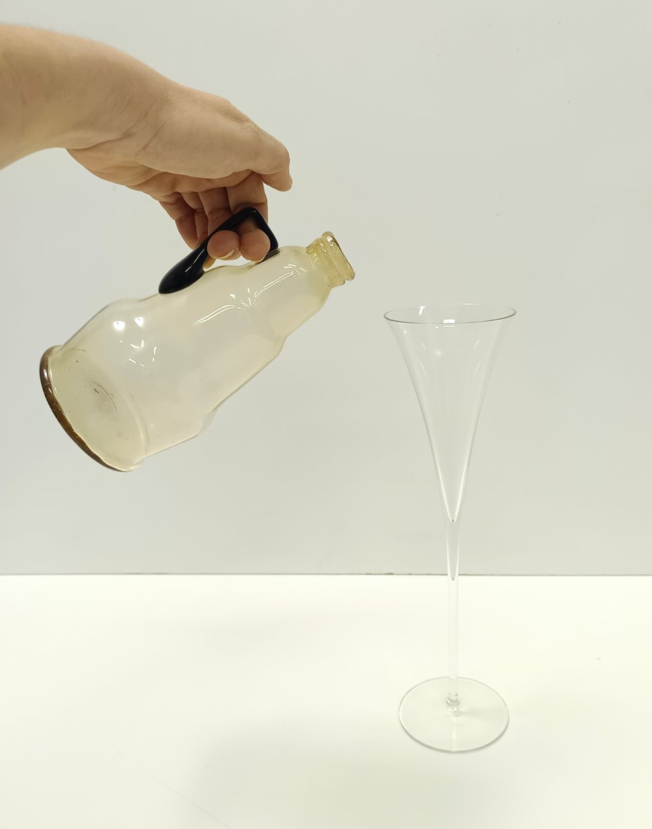 Vaso brocca in vetro di Murano color paglia attribuito a Vittorio Zecchin, Italia, 1890