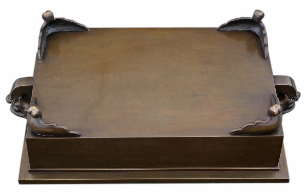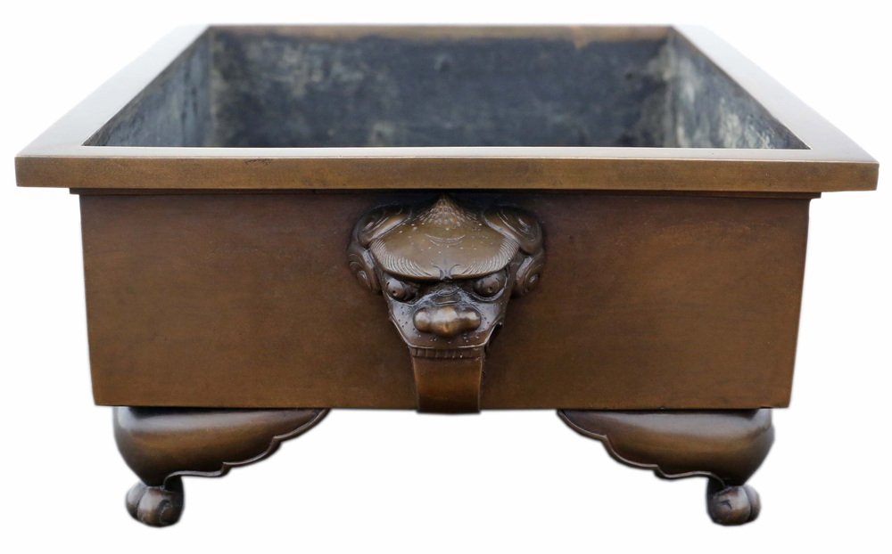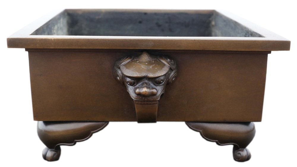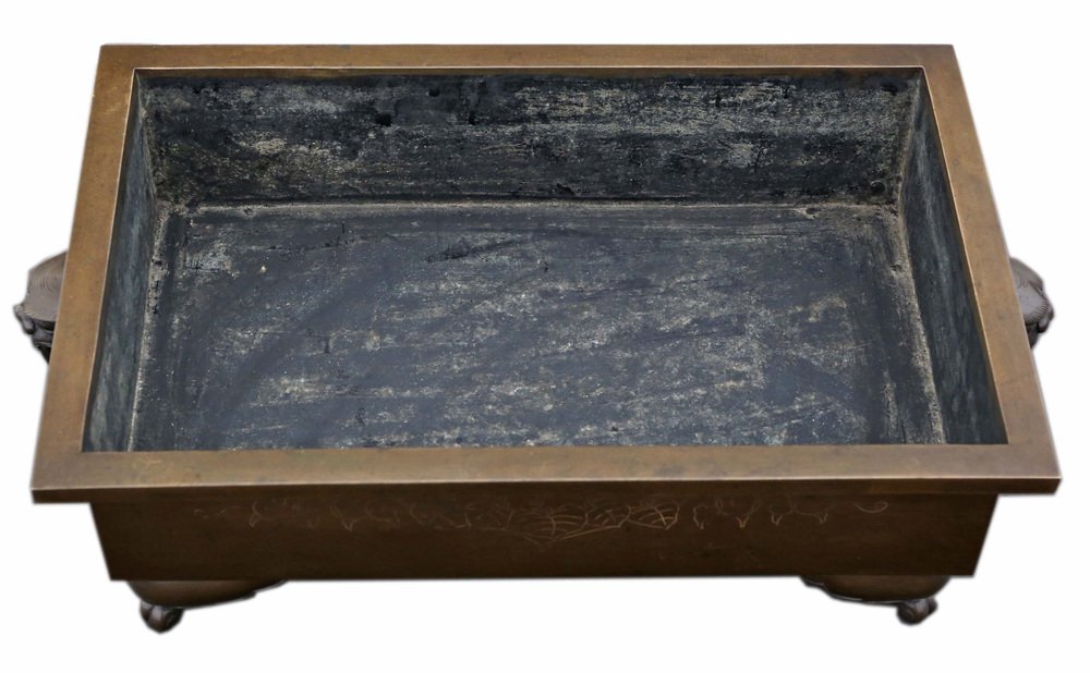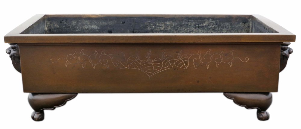 Antica fioriera/giardiniera orientale d'epoca in bronzo pesante, 1930 circa - un pezzo di alta qualità del periodo Taisho e del primo periodo Showa, ideale per l'arte Suiban Ikebana. Perfetto per composizioni floreali o bonsai.