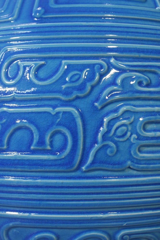 Questo particolare modello è realizzato in un profondo blu turchese, fuso sulla base di un antico bronzo cinese.