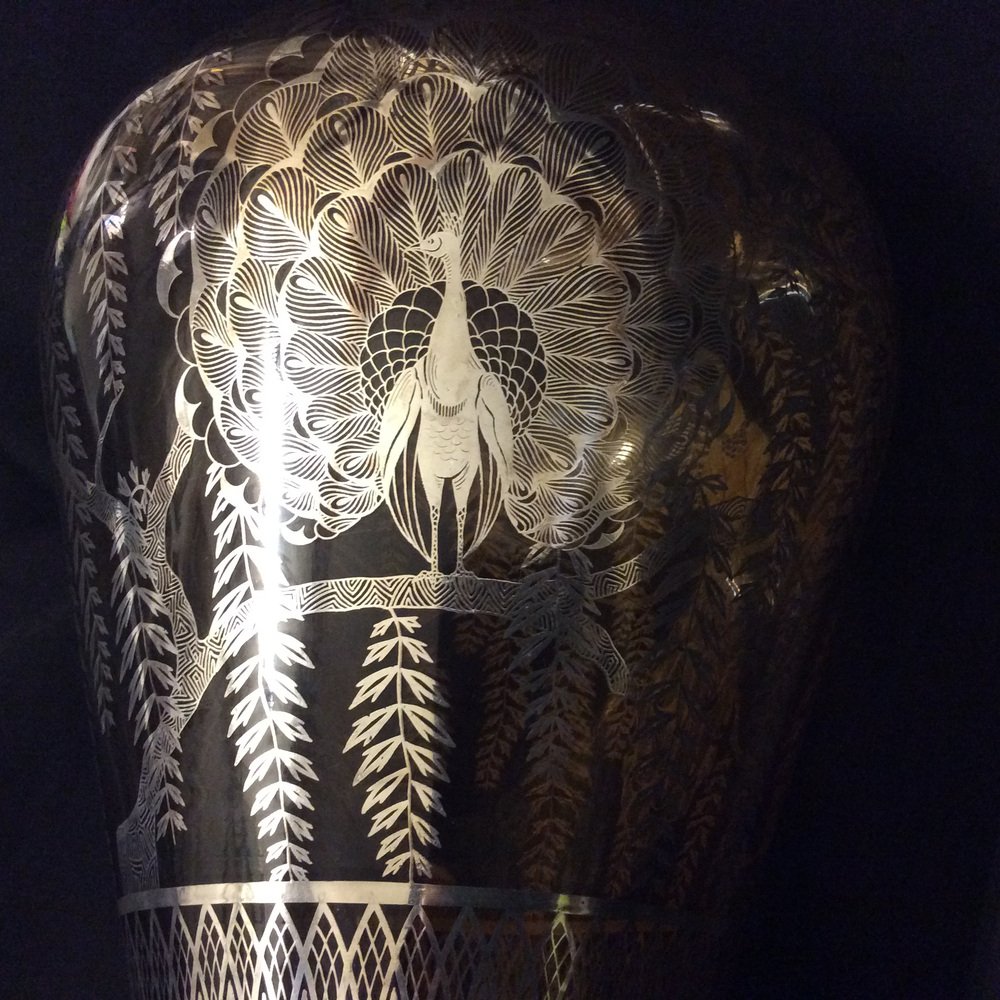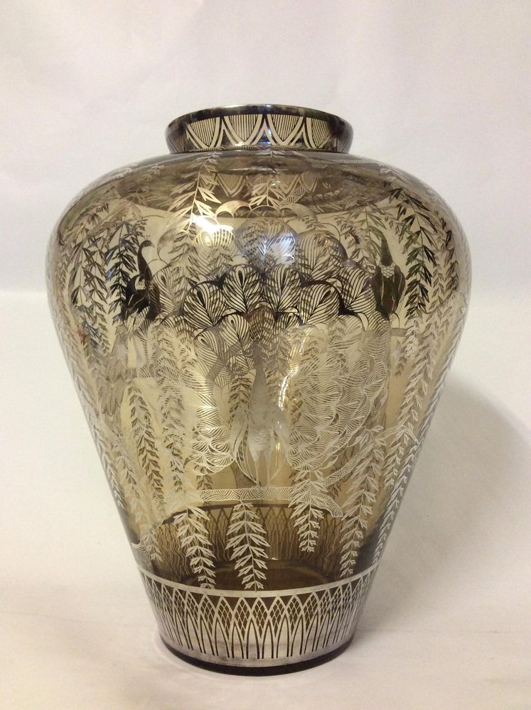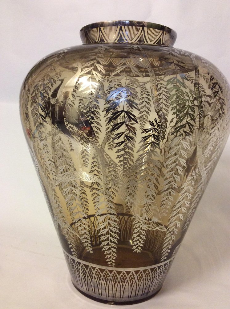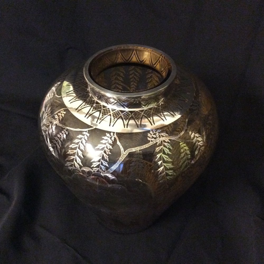 Vaso grande in cristallo con decorazione in lamina d'argento, anni '30