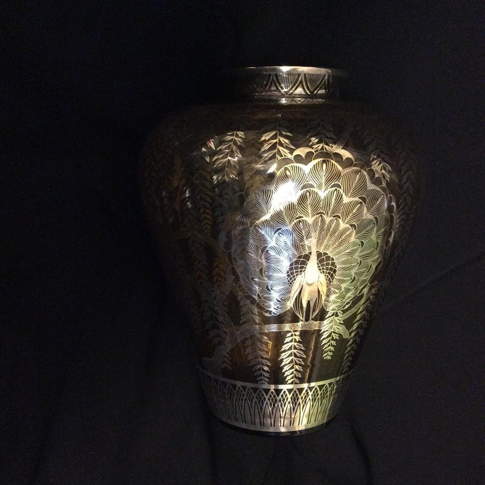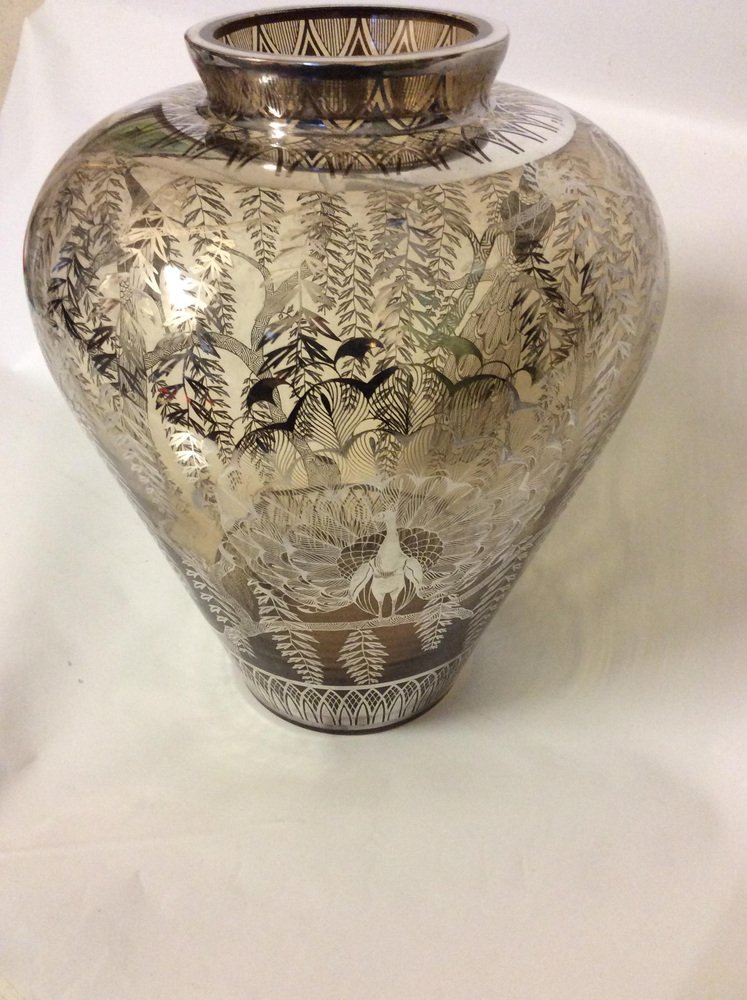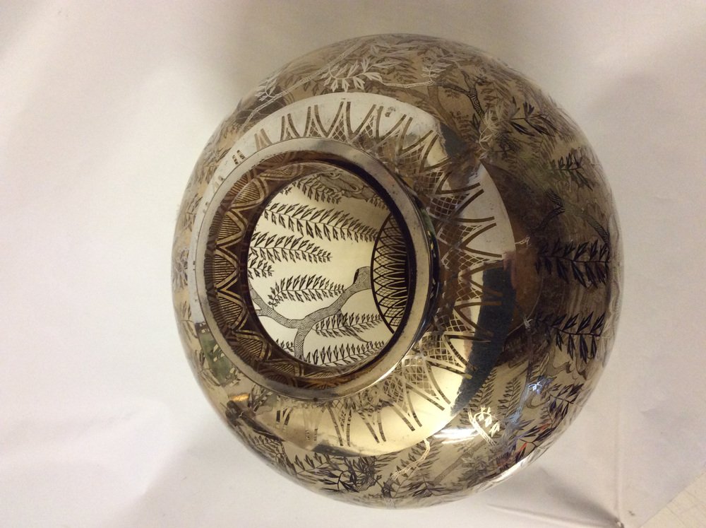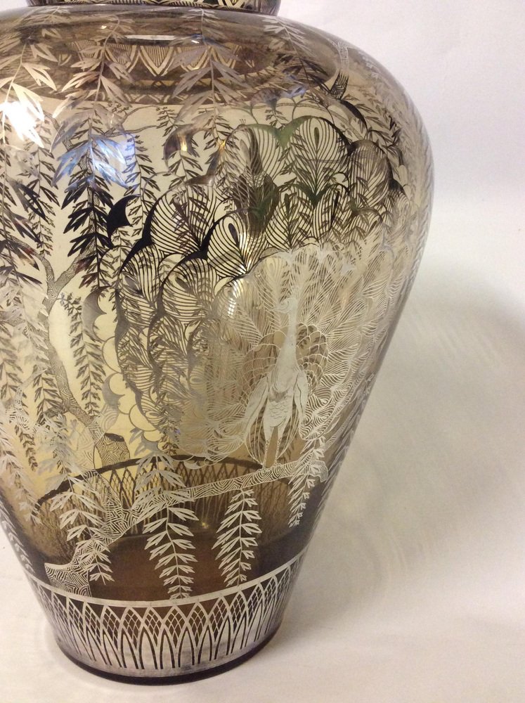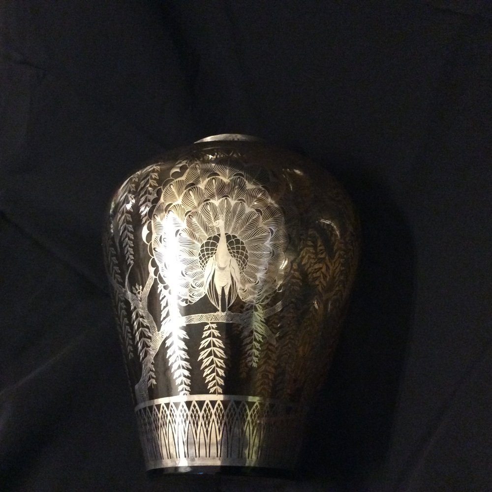 Vaso grande in cristallo con decorazione in lamina d'argento, anni '30