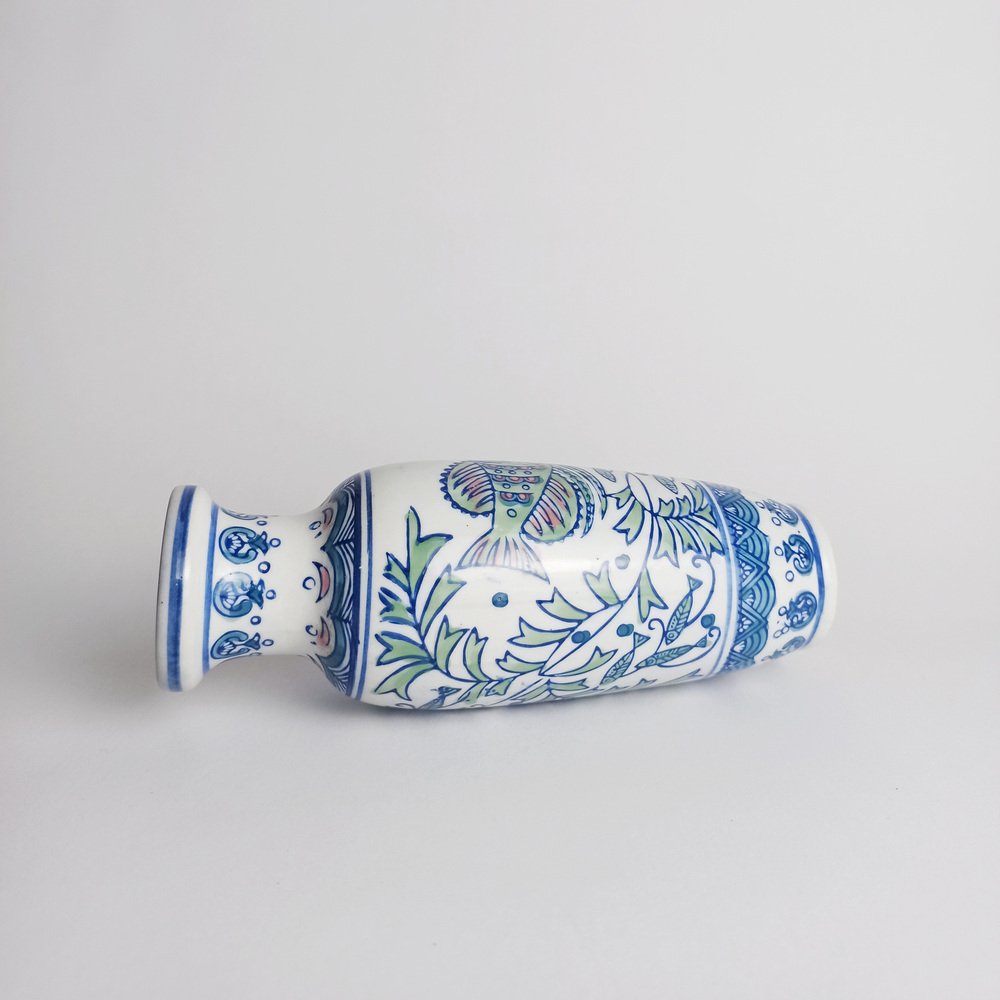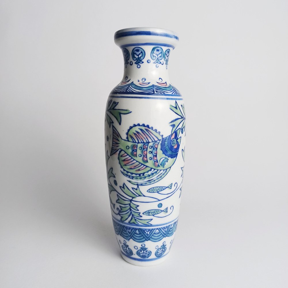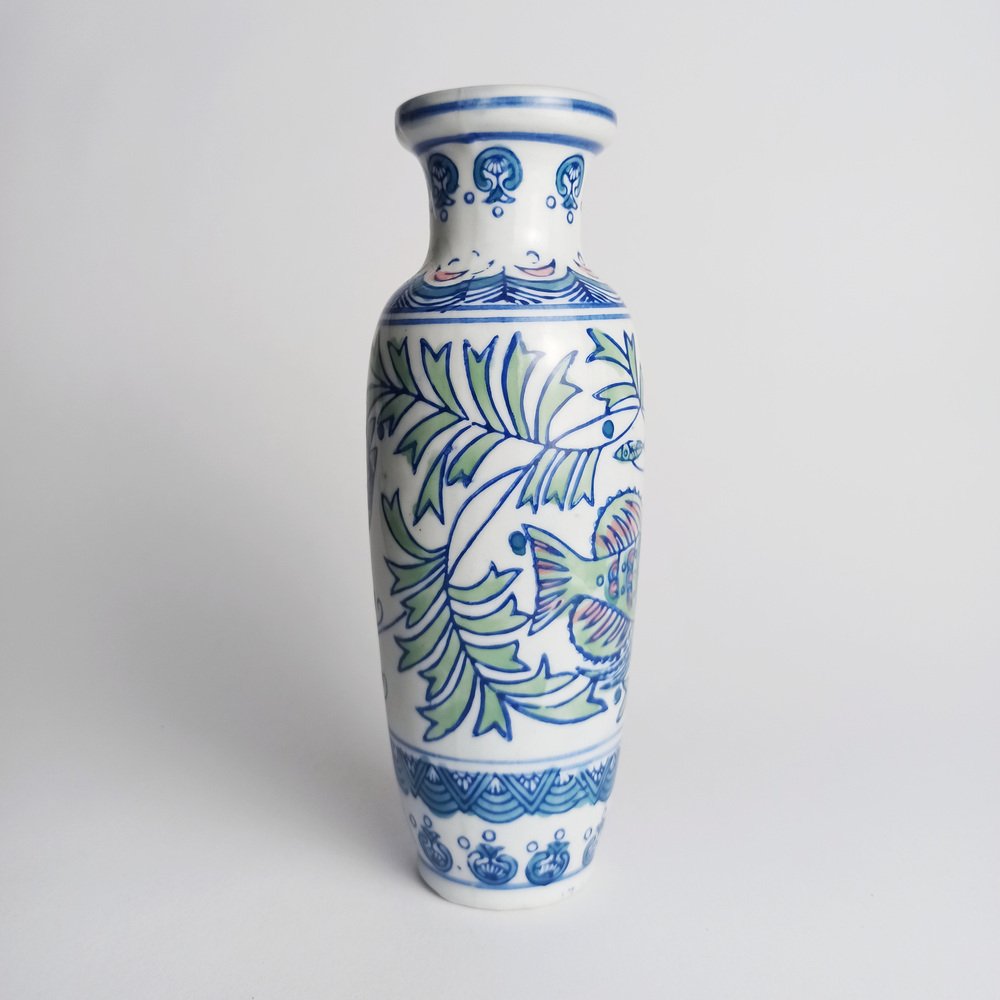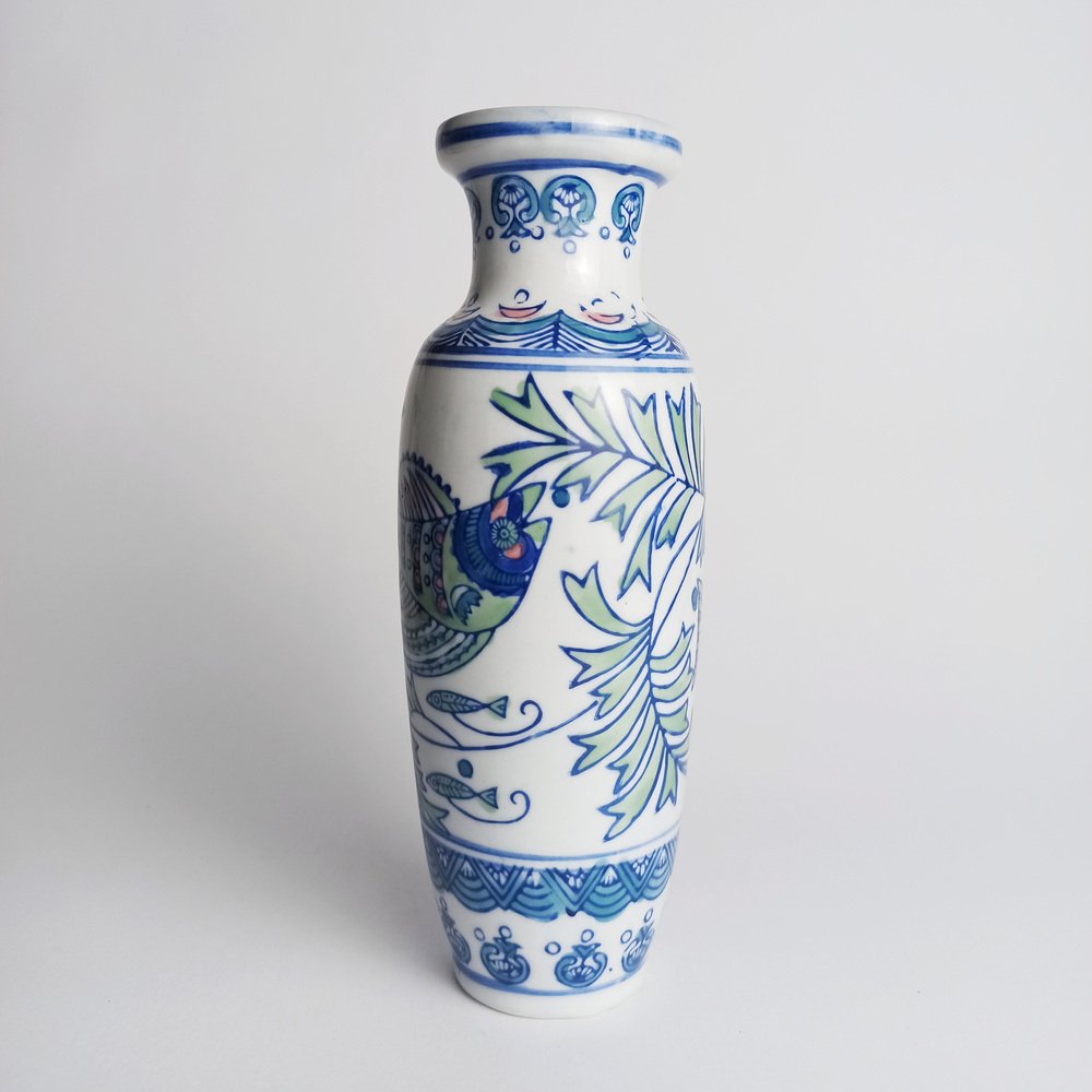 Vaso in porcellana dipinto a mano con pesci, 1995