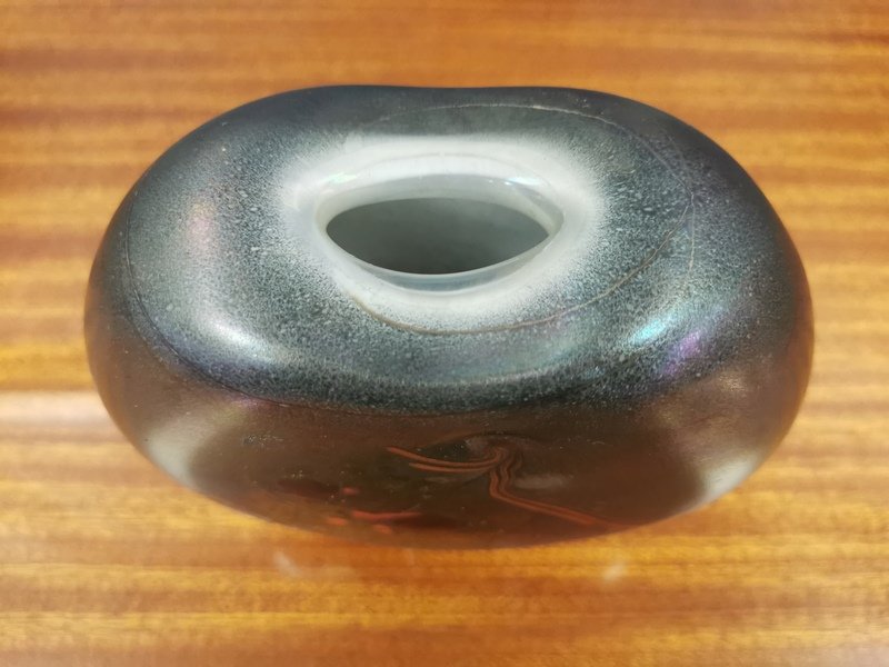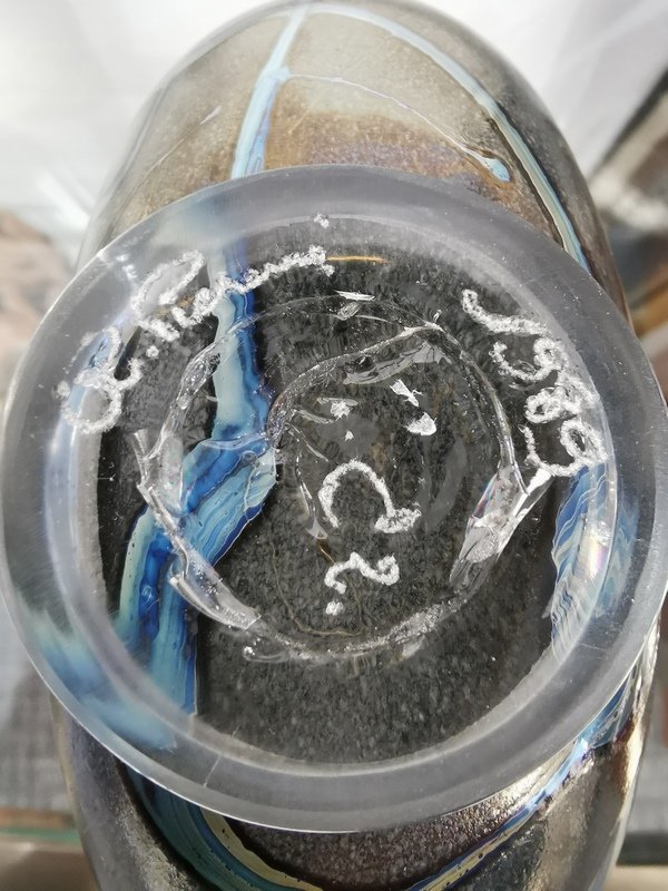 Piccolo vaso in vetro soffiato di Robert Pierini eb 1989.