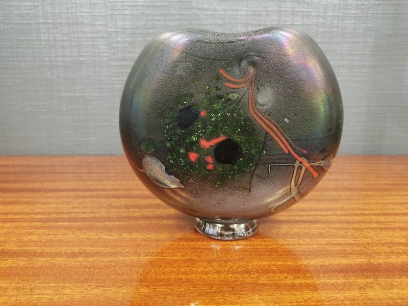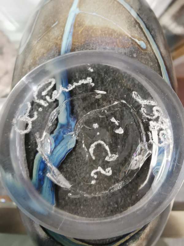 Small blown glass vase by Robert Pierini eb 1989.