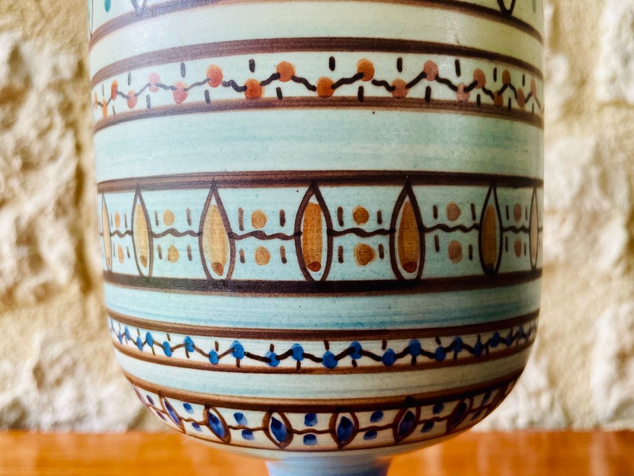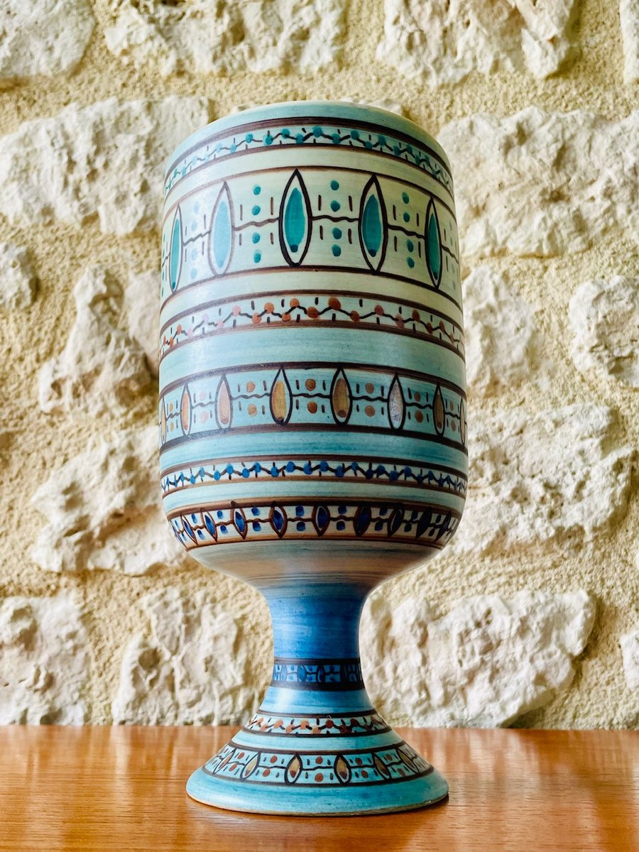 Calice / vaso decorativo in ceramica di metà secolo, vintage, opera del noto ceramista Louis Bacculini di Vallauris, anni '60 circa.