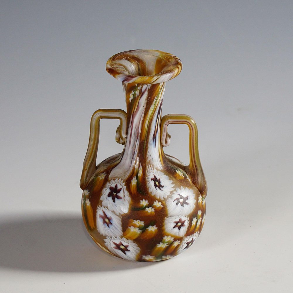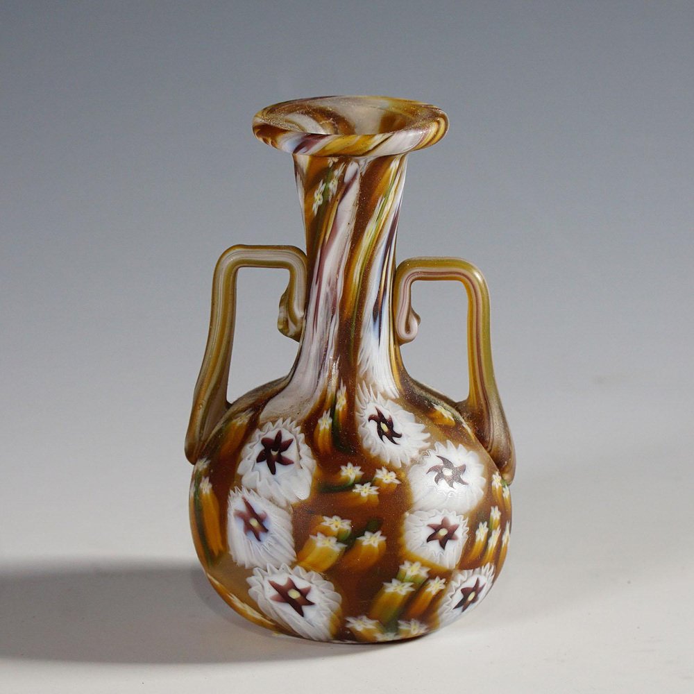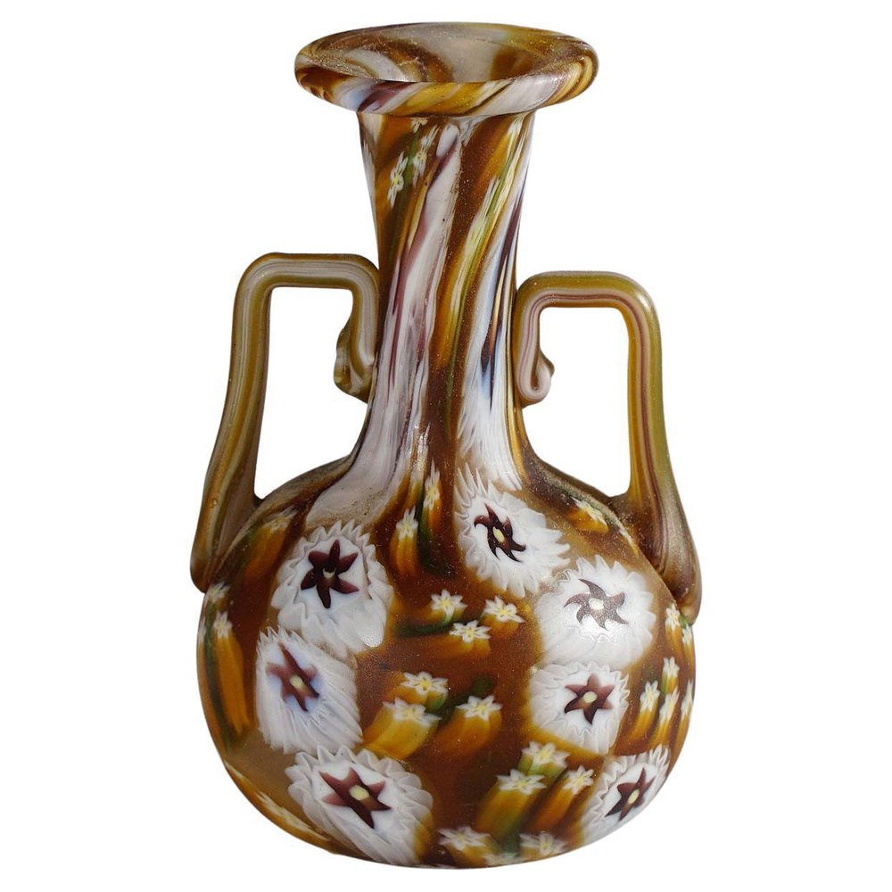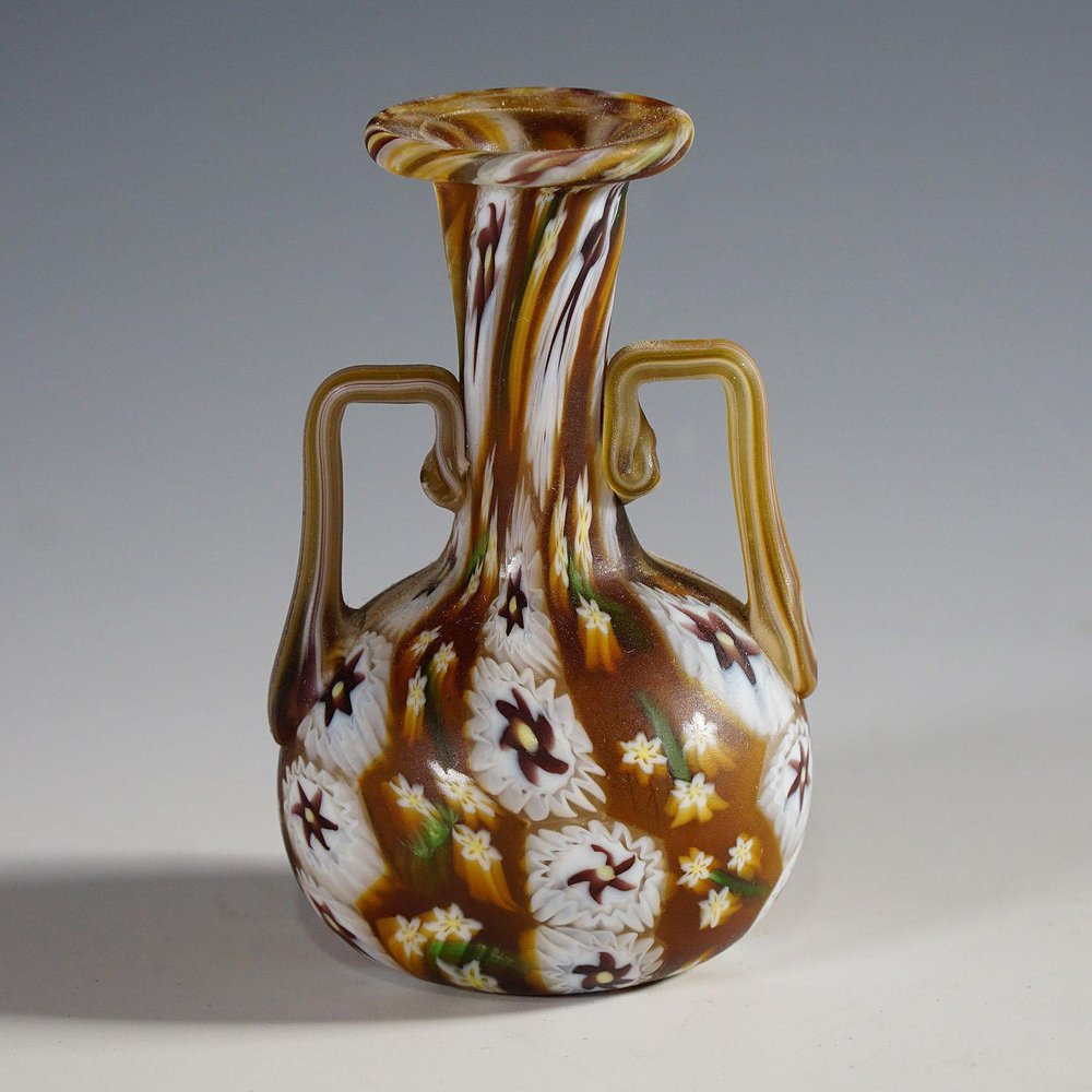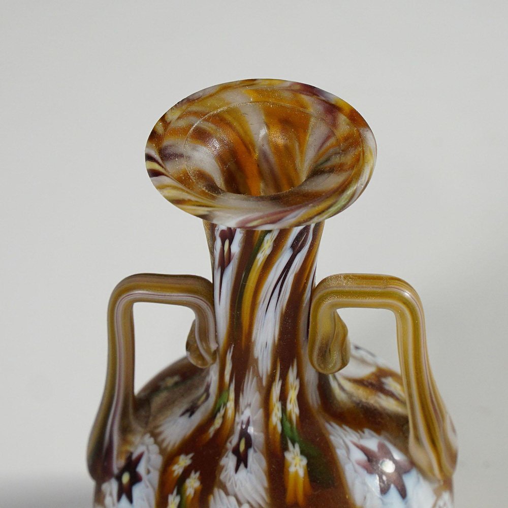 Vaso Millefiori marrone e bianco in Murano e murrine di Fratelli Toso