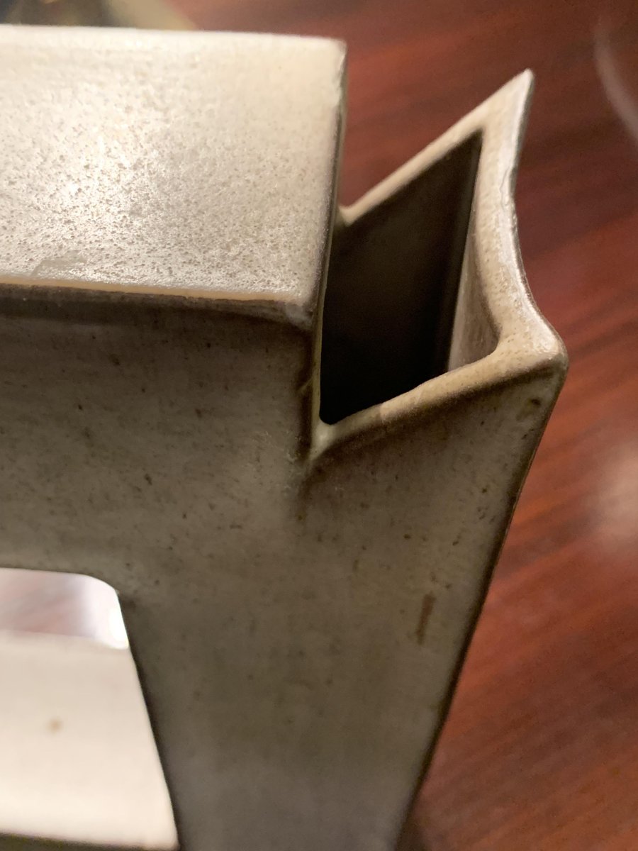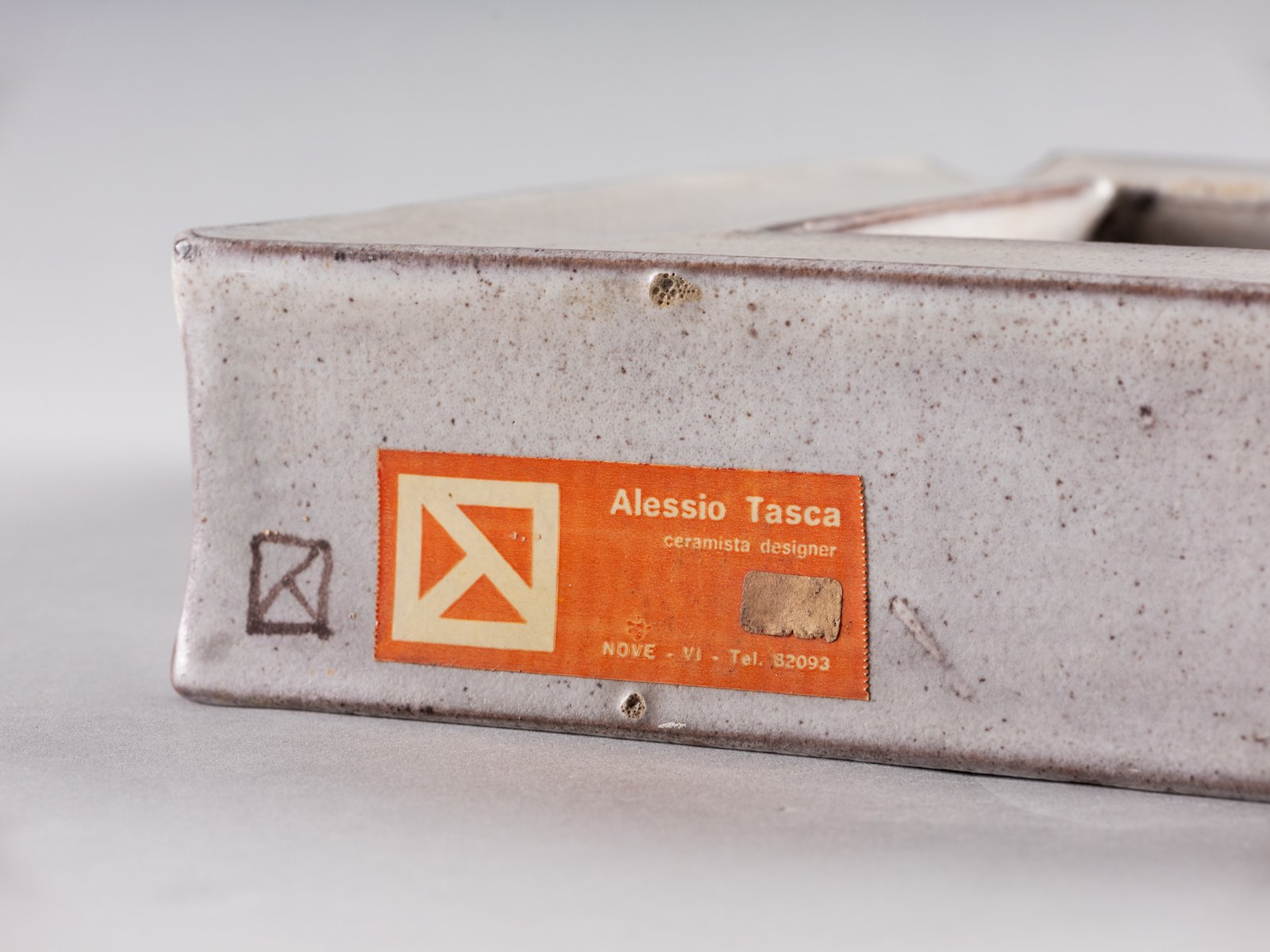 In 1967, together with Ettore Leoni, a technician from Nove, Vicenza, where Tasca opened his first ceramic atelier in the 1950s, he developed the first extruder, a machine that allowed him to design and produce his first rectangular-section works through extrusion. He exhibited them for the first time in Treviso in 1968, at the "Studio d'Arte Arturo Martini. That same year, he participated to the 14th Milan Triennale with 17 extruded pieces, including the Cornovaso, perhaps the most representative "form" of this cycle. The Triennale was occupied as part of the 1968 protests. Tasca actively participated, throwing down and destroying all the exhibited works.