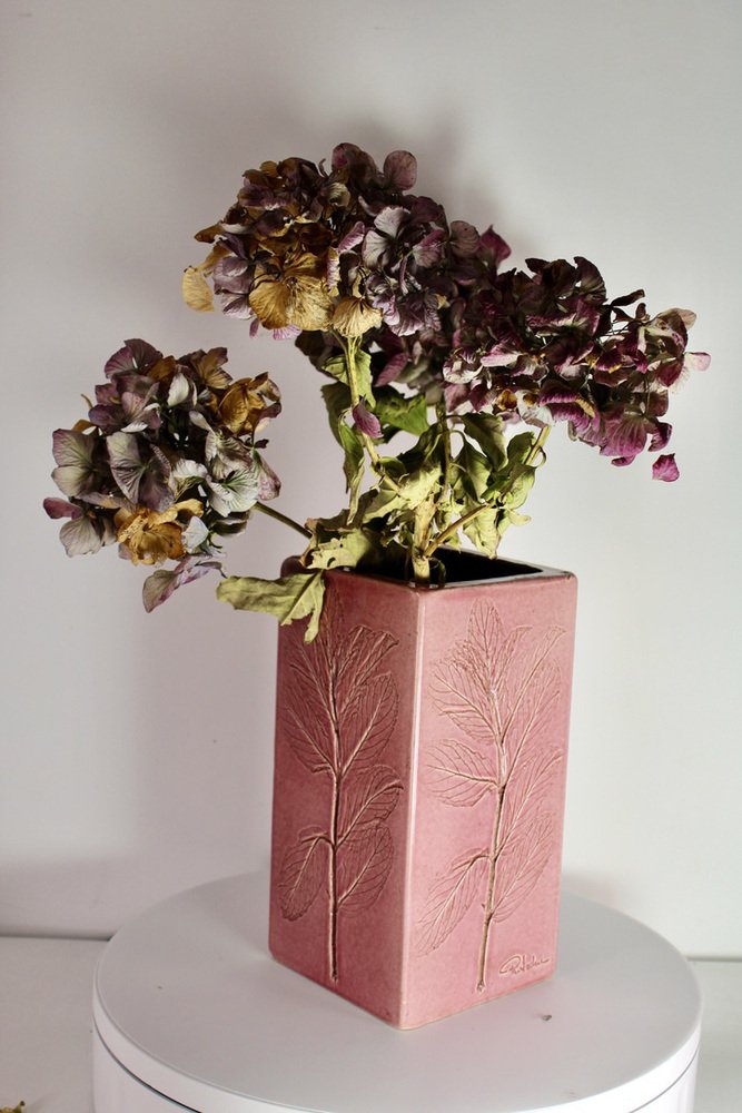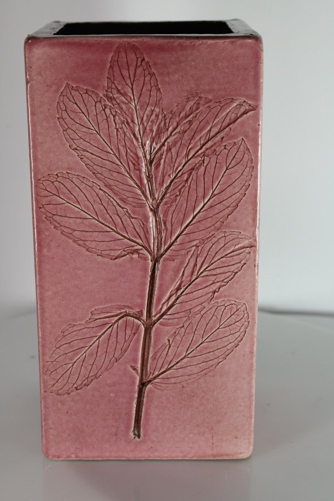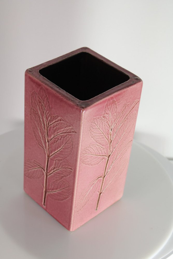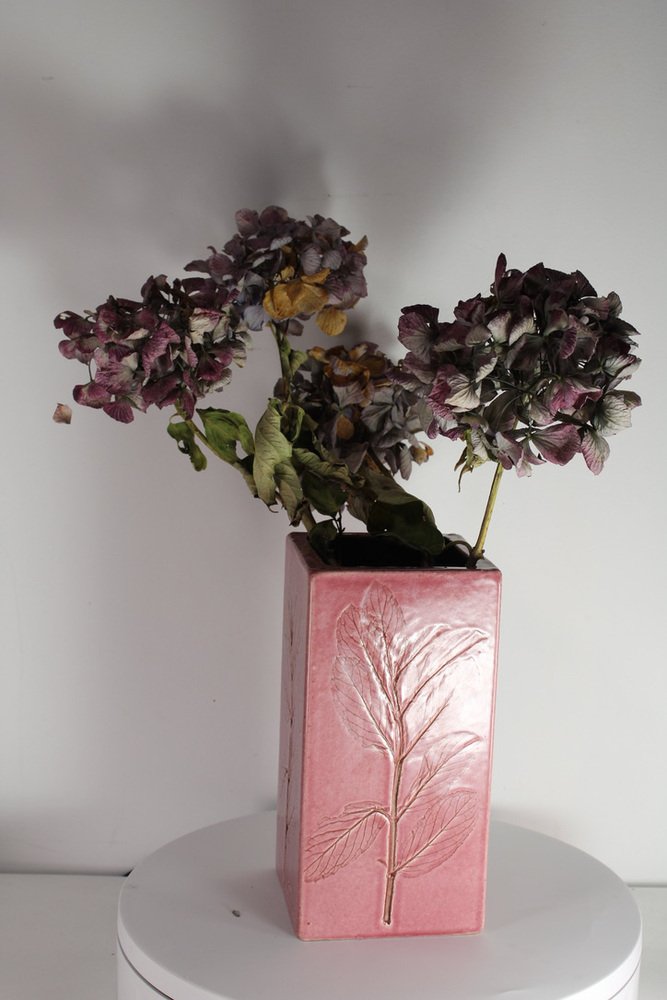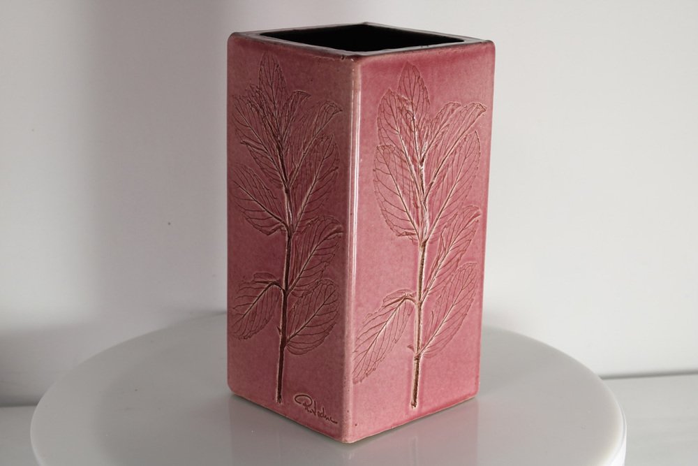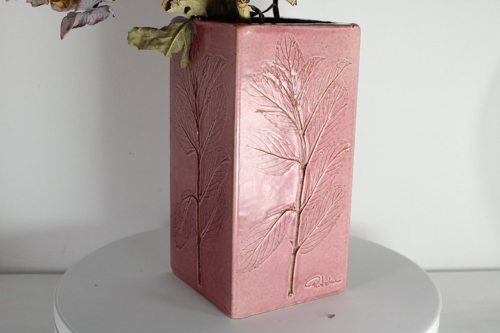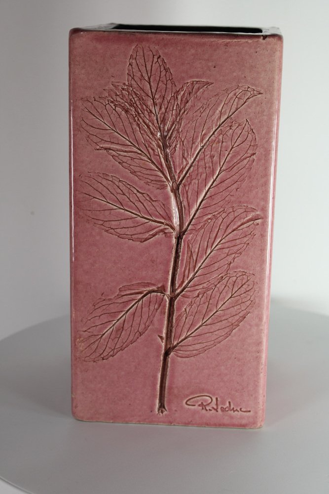 Vaso vintage rosa in ceramica di Raymonde Leduc per Vallauris, anni '60