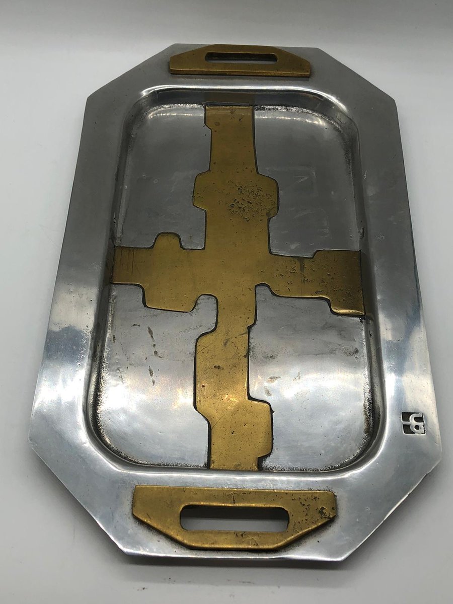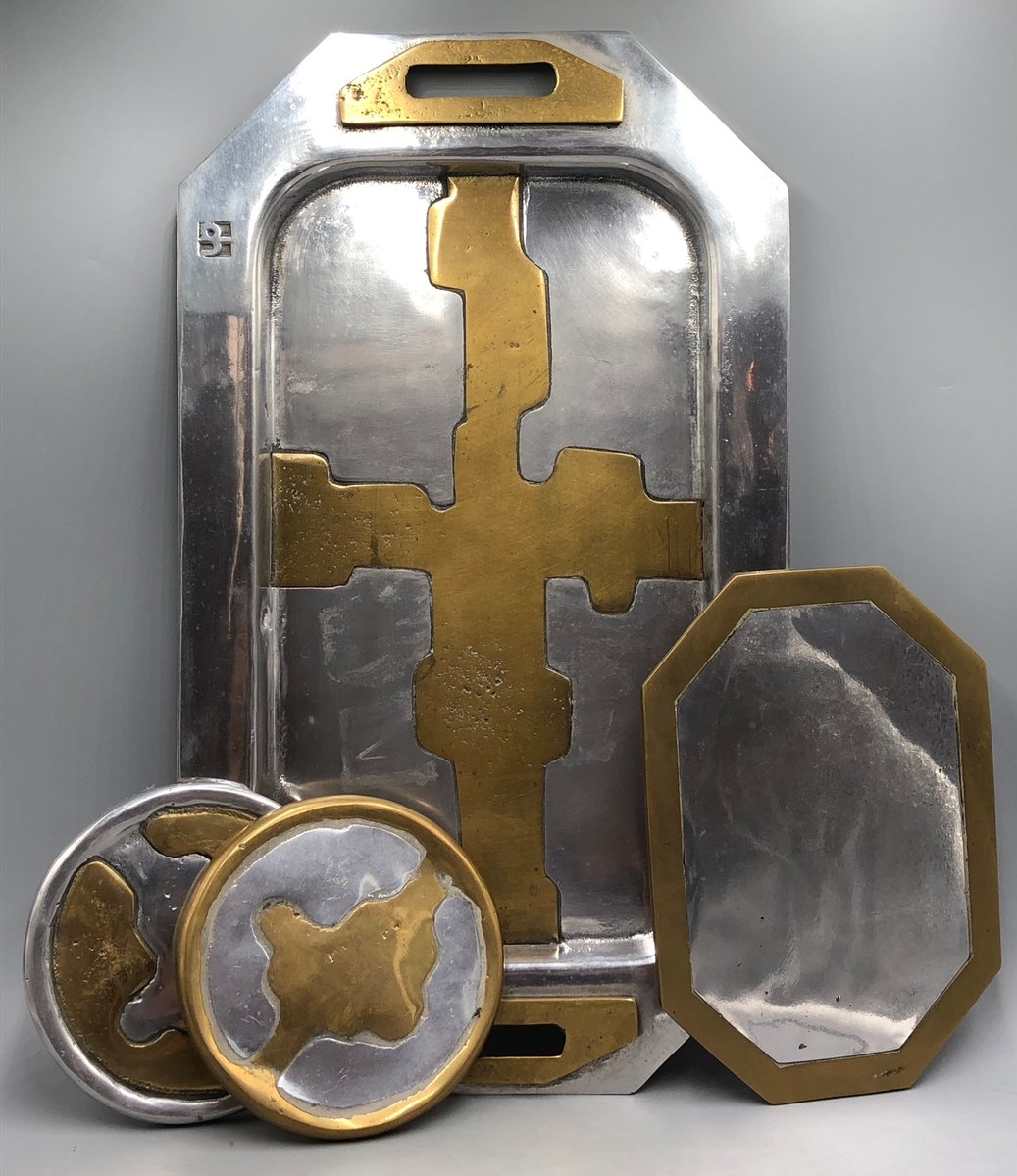 The tray set by David Marshall-Disenos is a remarkable example of the brutalist aesthetic, masterfully realized in brass and aluminum. These unique pieces exude a raw beauty that is characteristic of this style. Each tray in the set features a robust construction that combines both functionality and an artistic statement.