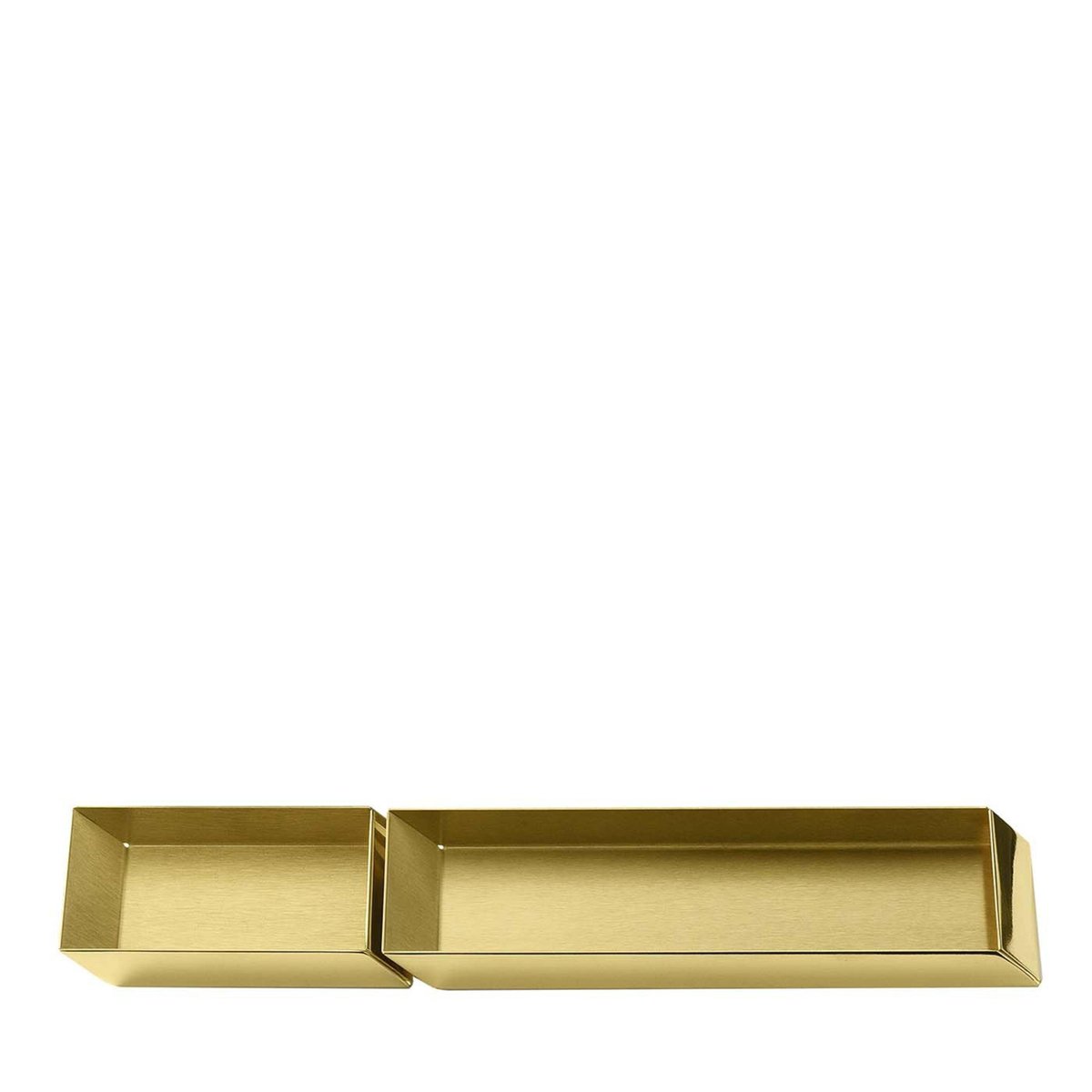 This matching set is comprised of two desktop items: an open, horizontal pencil case and a business card holder, making it an essential item for any office environment. Its unique yet minimalist form is the result of two, visually striking parallelepipeds, which create a dynamic border featuring inclined edges. Also available in Copper.This matching set is comprised of two desktop items: an open, horizontal pencil case and a business card holder, making it an essential item for any office environment. Its unique yet minimalist form is the result of two, visually striking parallelepipeds, which create a dynamic border featuring inclined edges. Also available in Copper.