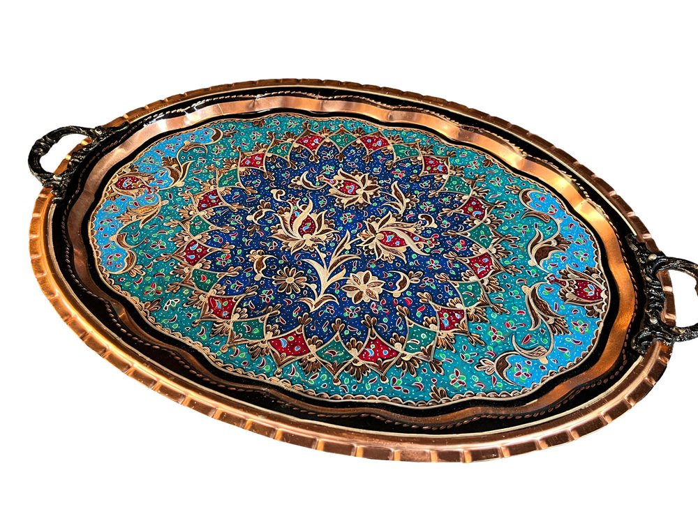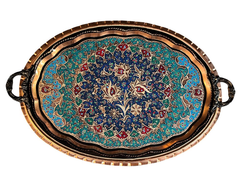 Vassoio da portata colorato dipinto a mano con manici