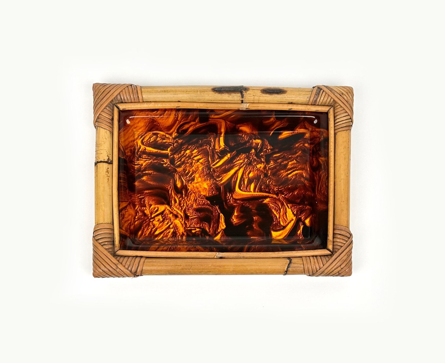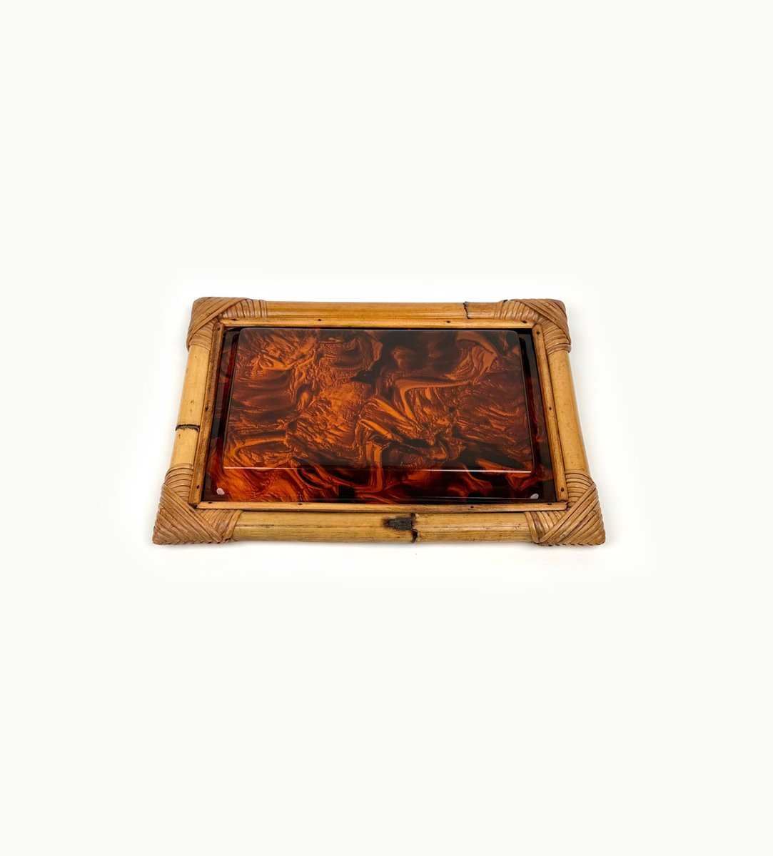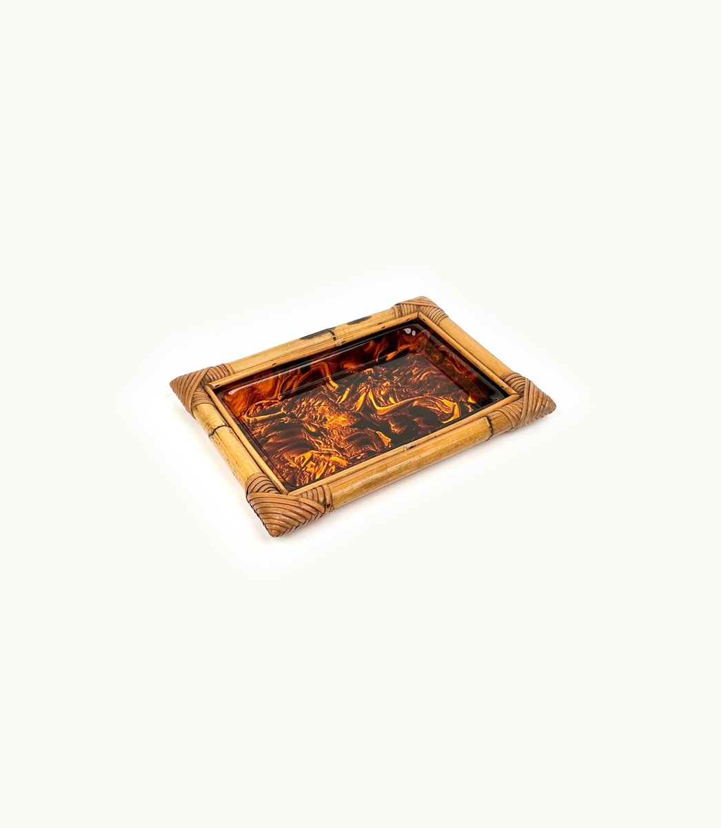 Vassoio da portata in bambù e vetro acrilico tartarugato, Italia, anni '70