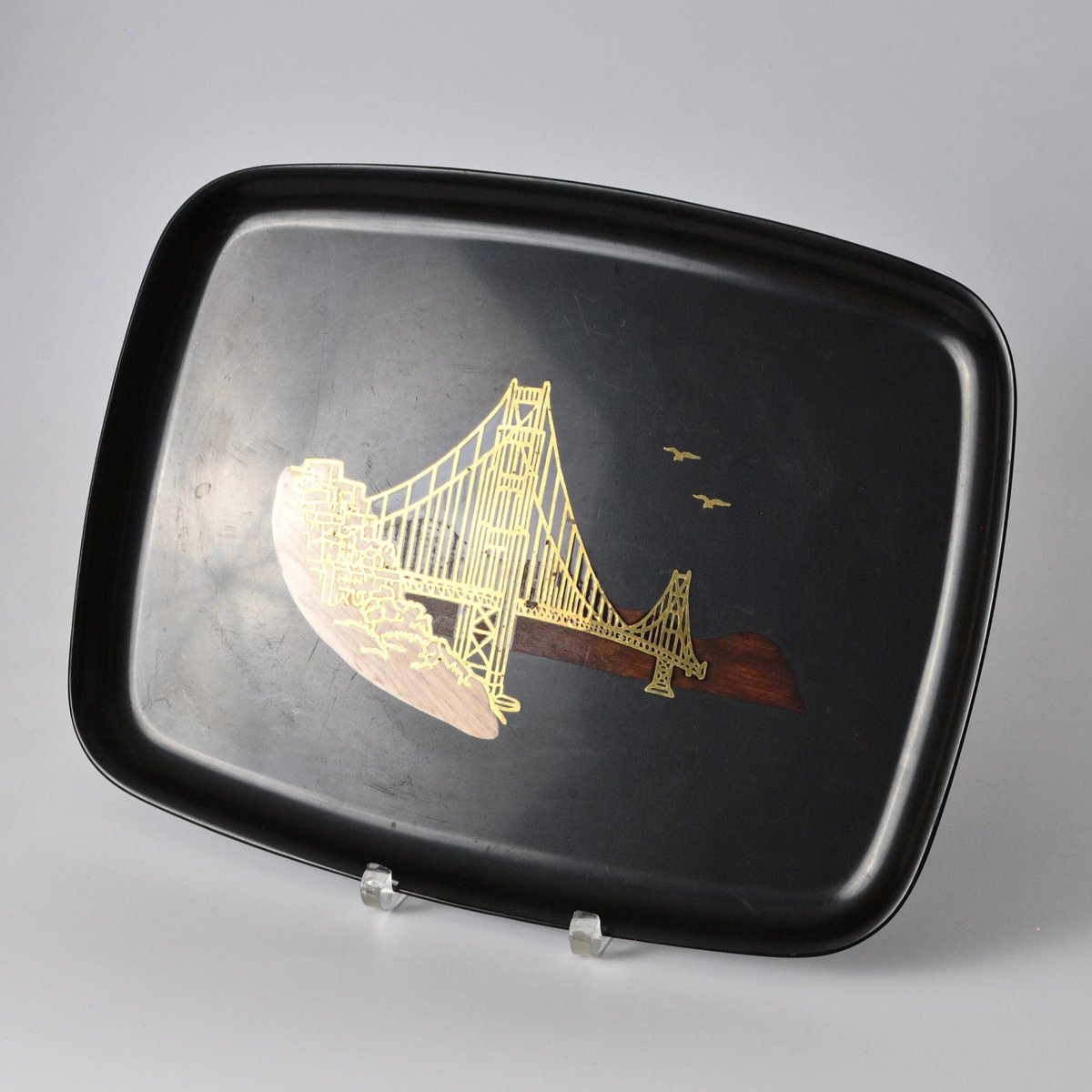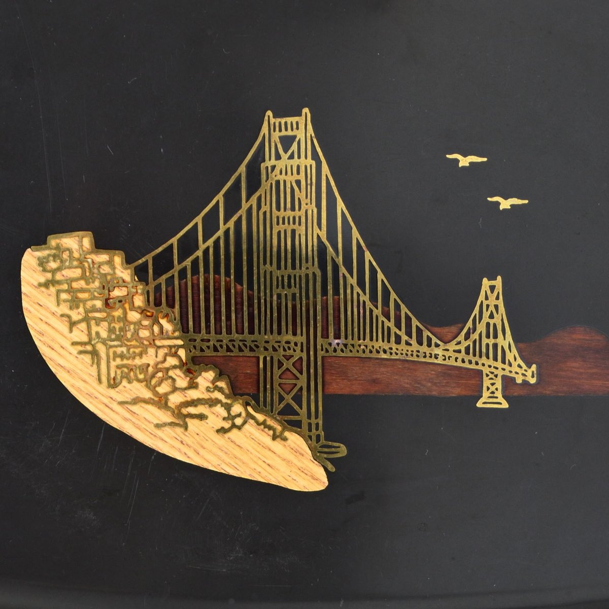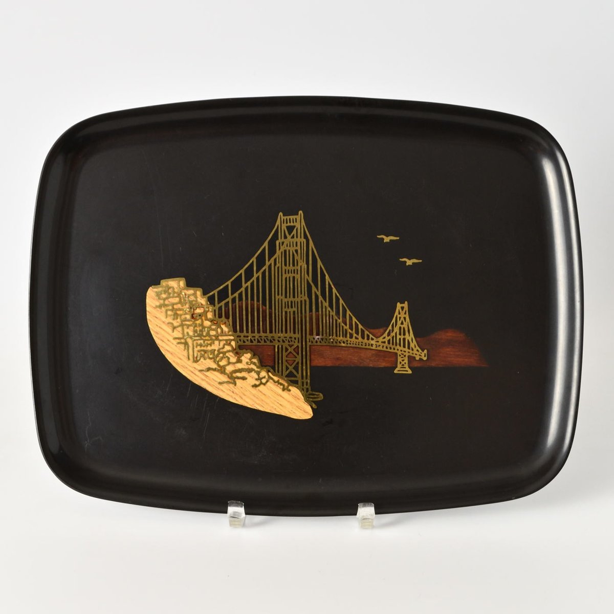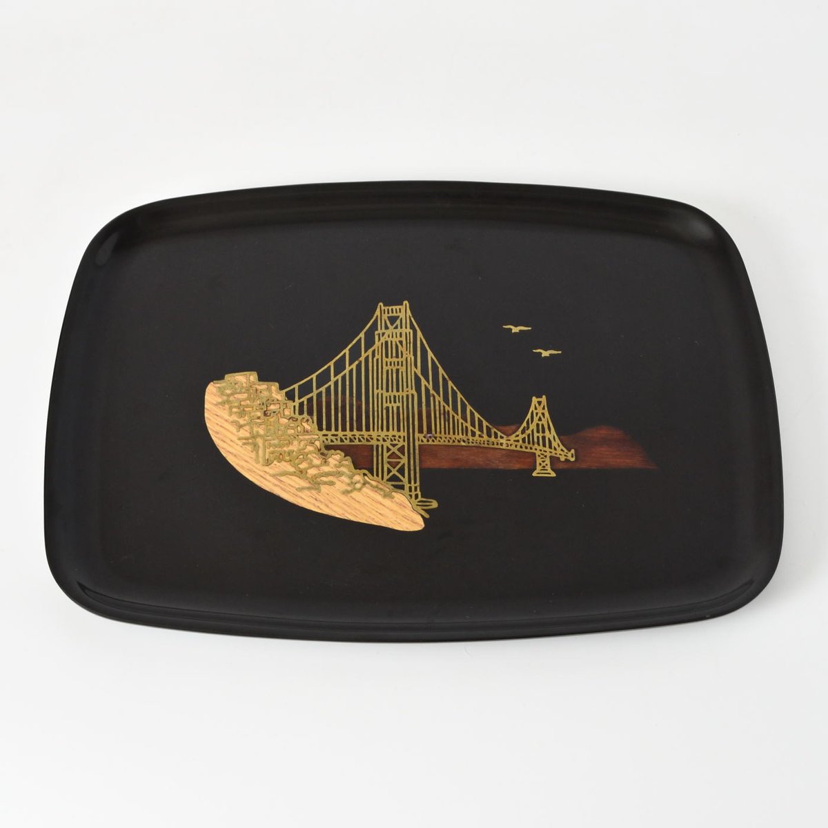 Vassoio Mid-Century moderno a ponte Golden Gate intarsiato di Couroc, anni '60