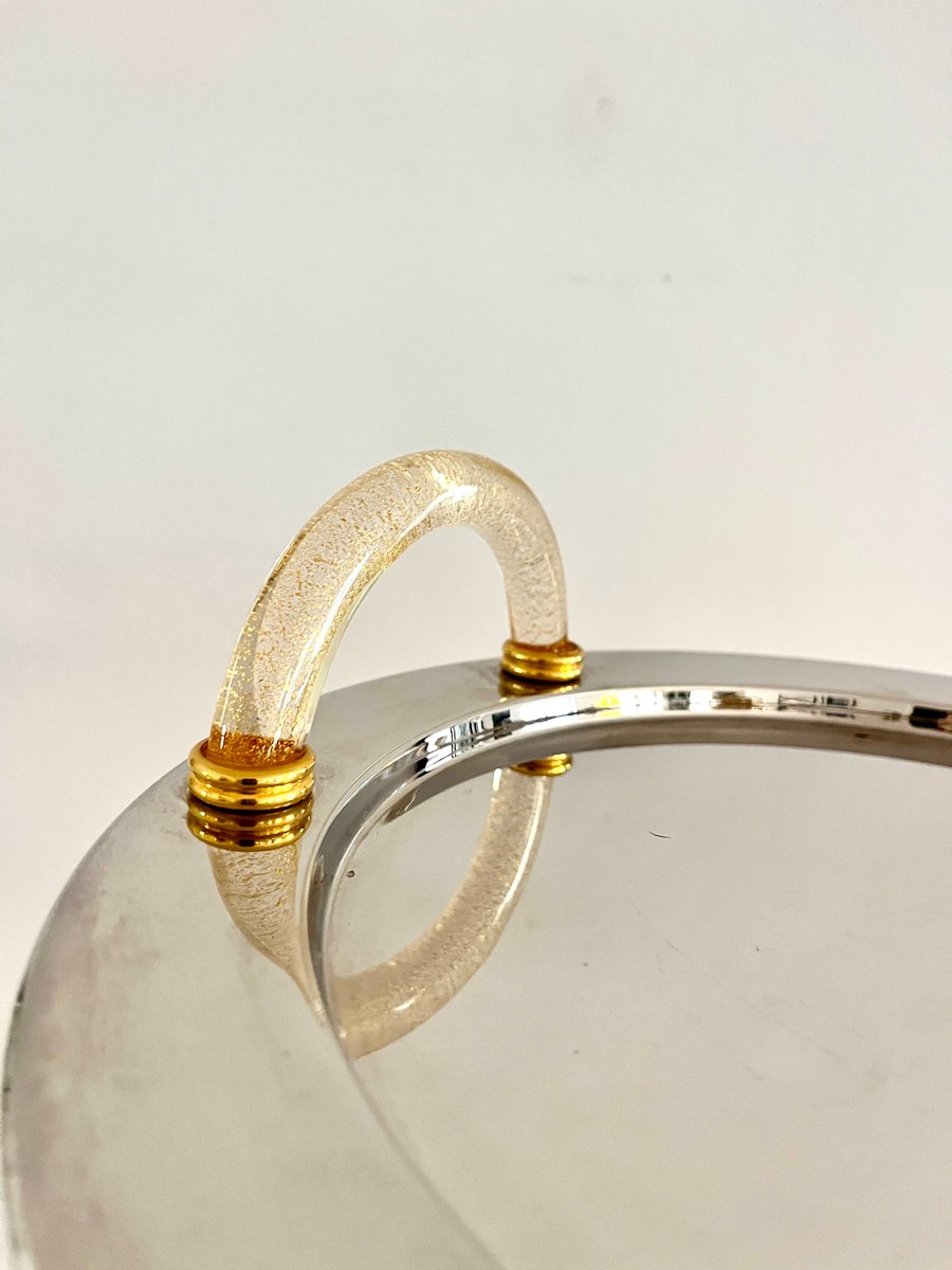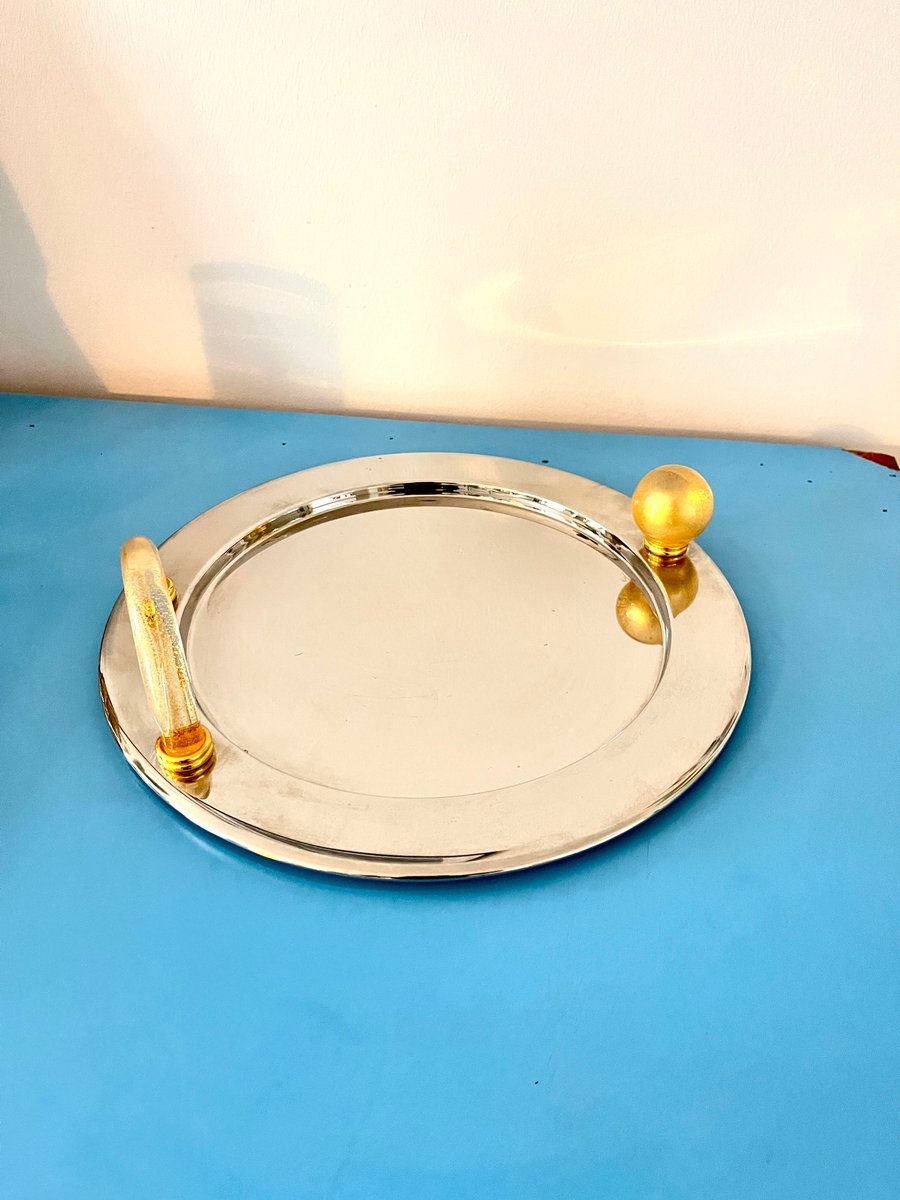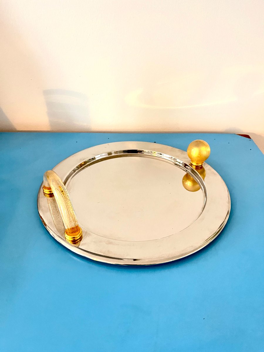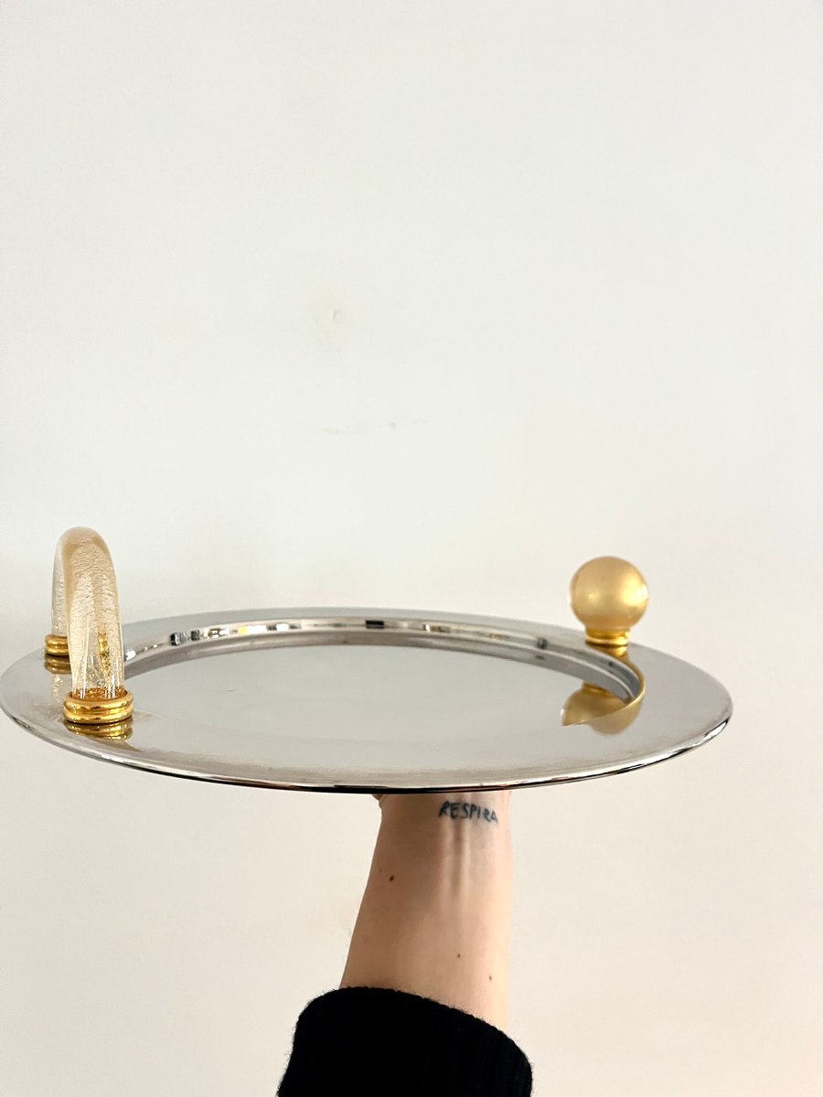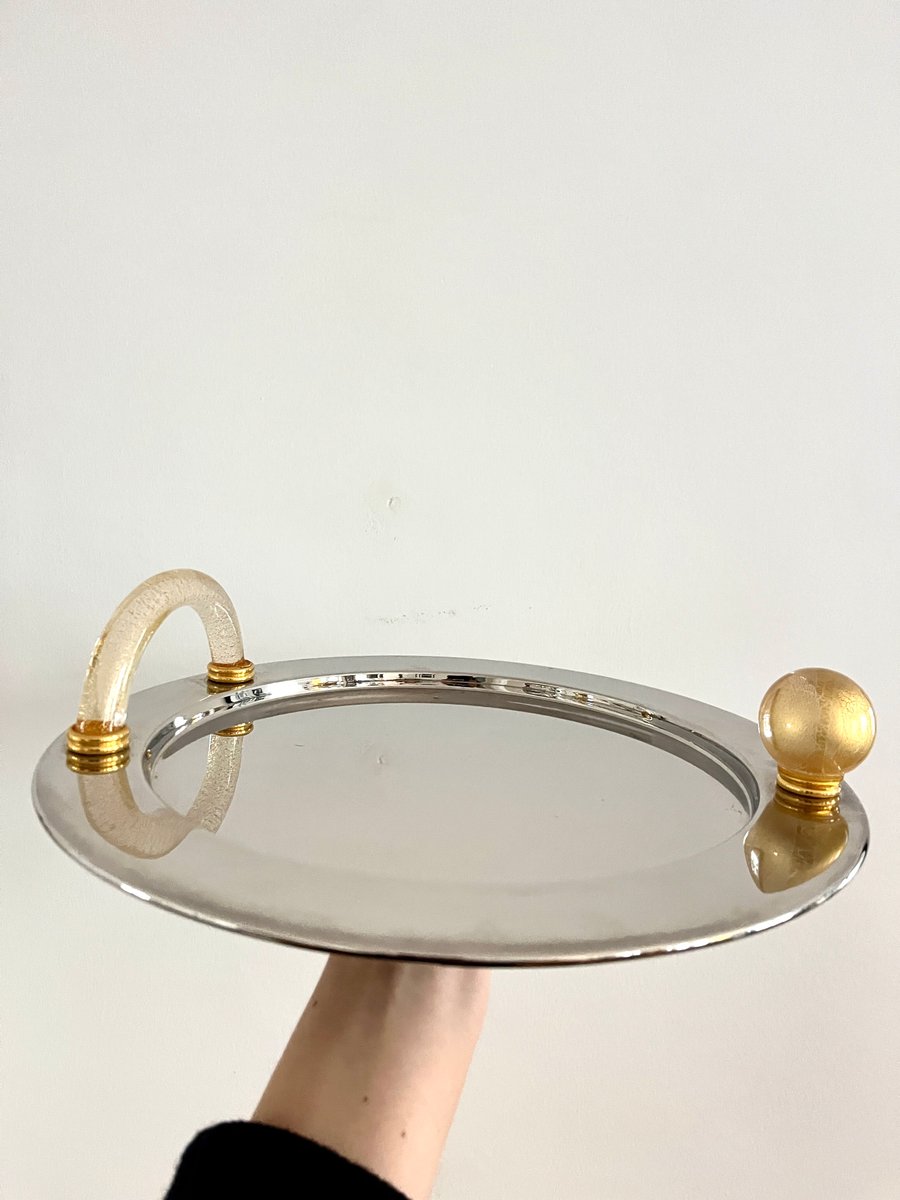 Vassoio vintage placcato palladio con manici in vetro di Murano, Italia, anni '80