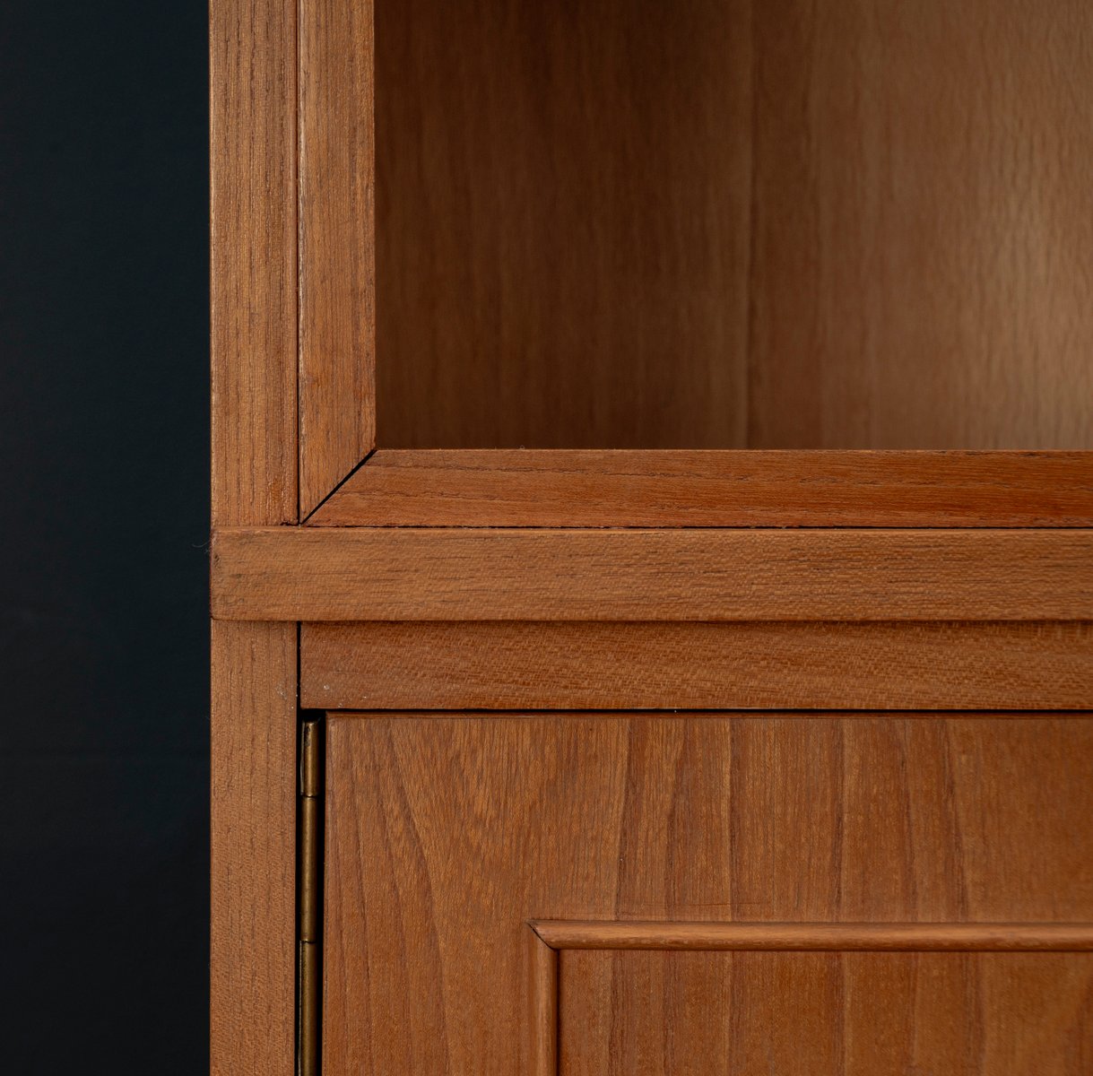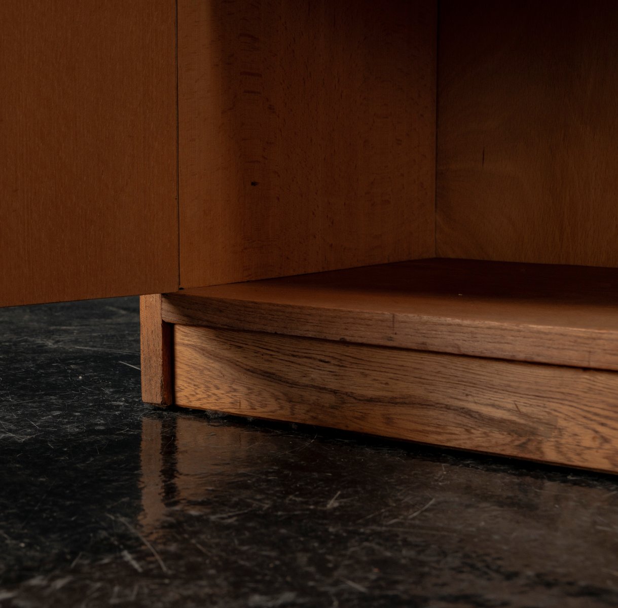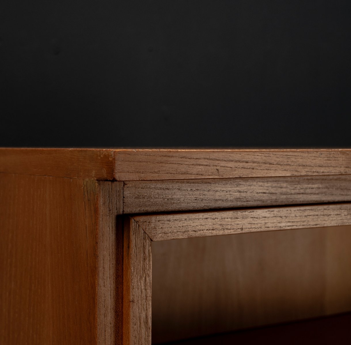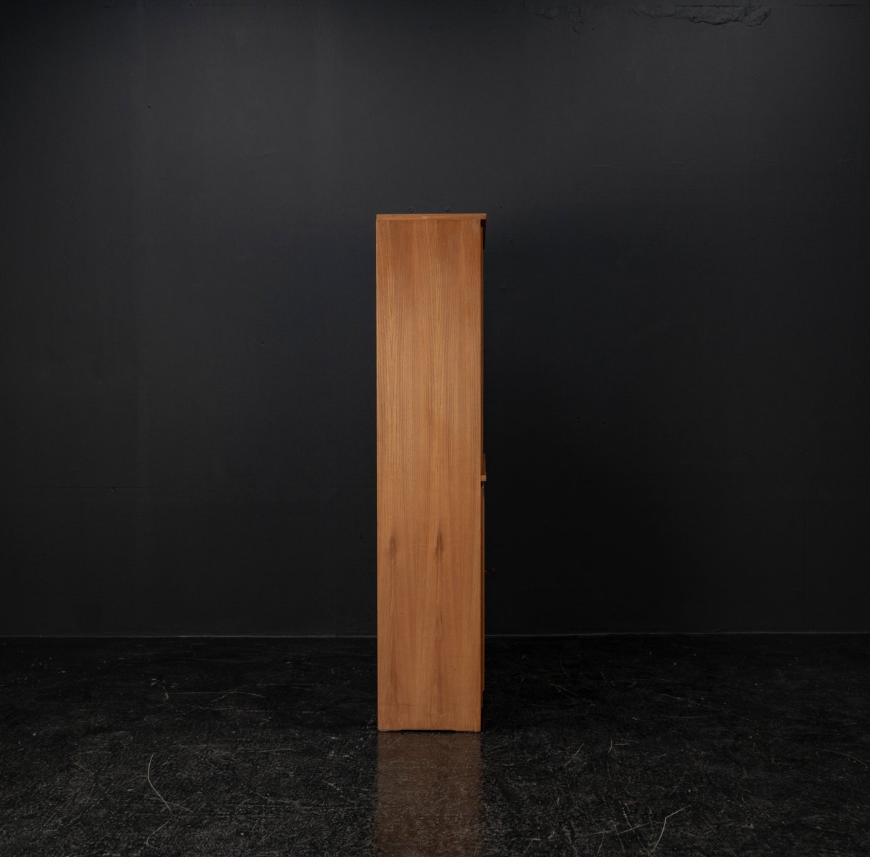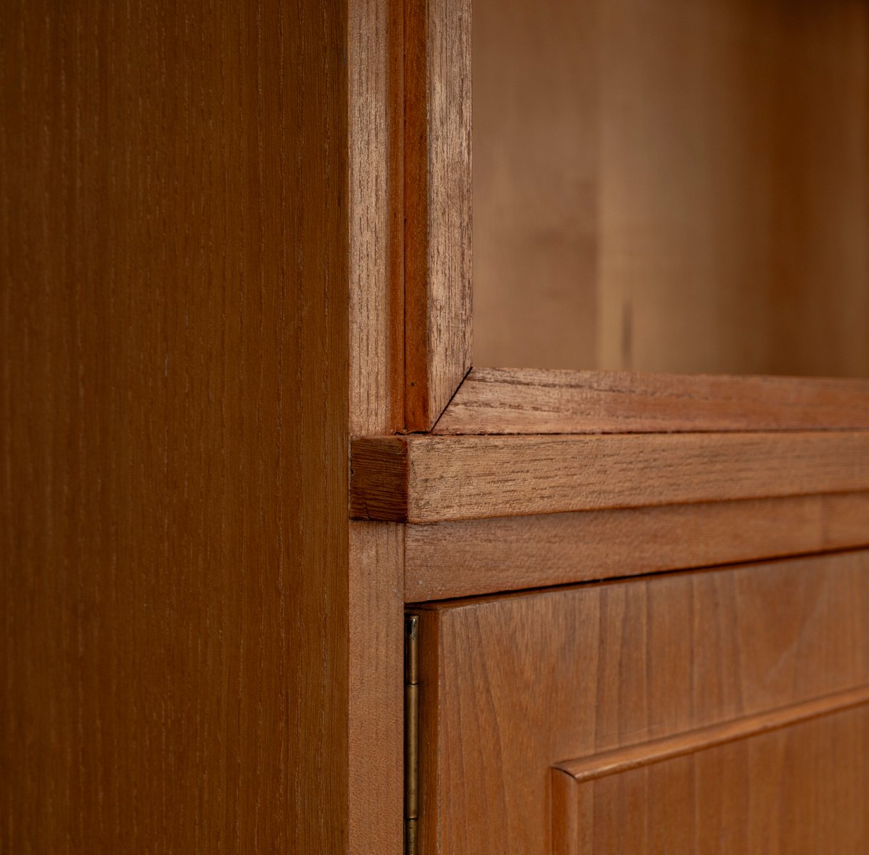 Display cabinet from the renowned manufacturer WK Möbel from the 1950s, made of light ash. This piece of furniture exudes modernity with a subtle echo of the waning Art Deco style of the 1950s. Clear lines, the accentuated horizontal and vertical structure, and the understated, elegant design reflect the transition from the ornamental era to the clear design language of post-war modernism. At the top are two sliding glass doors with two shelves, ideal for decorative objects or tableware. The lower section offers generous storage space behind two wooden doors with additional shelves; the interior of the cabinet is lined with beech. A distinctive, timeless piece of furniture that blends harmoniously into various interior styles.