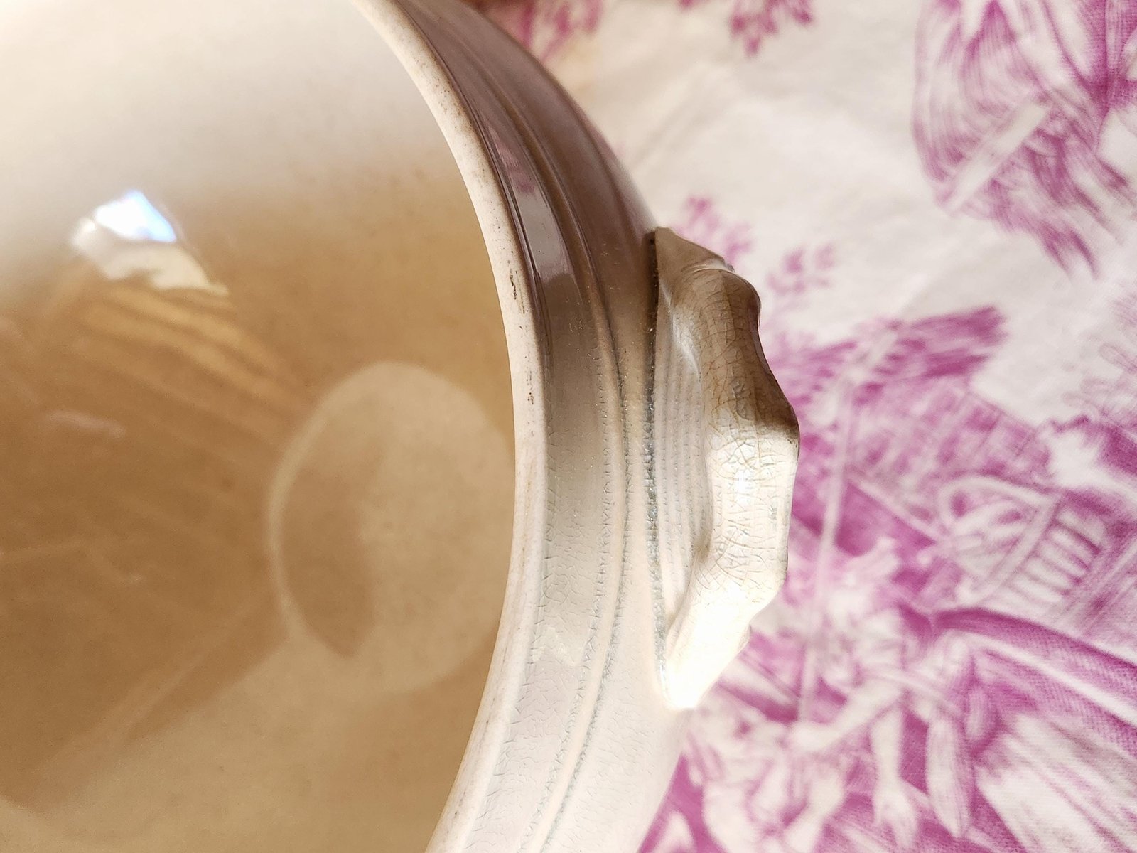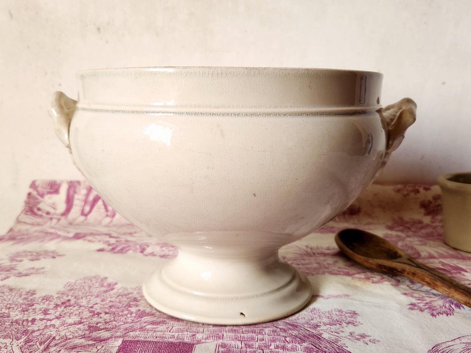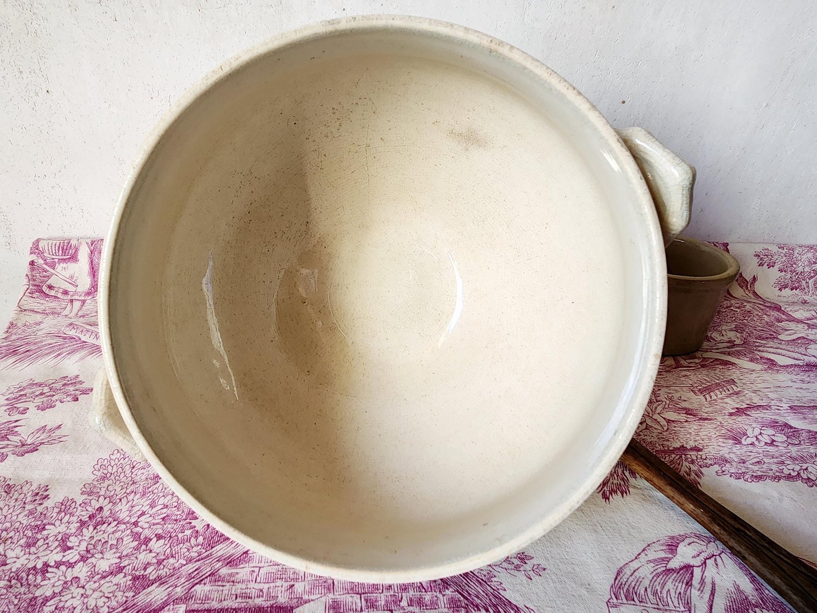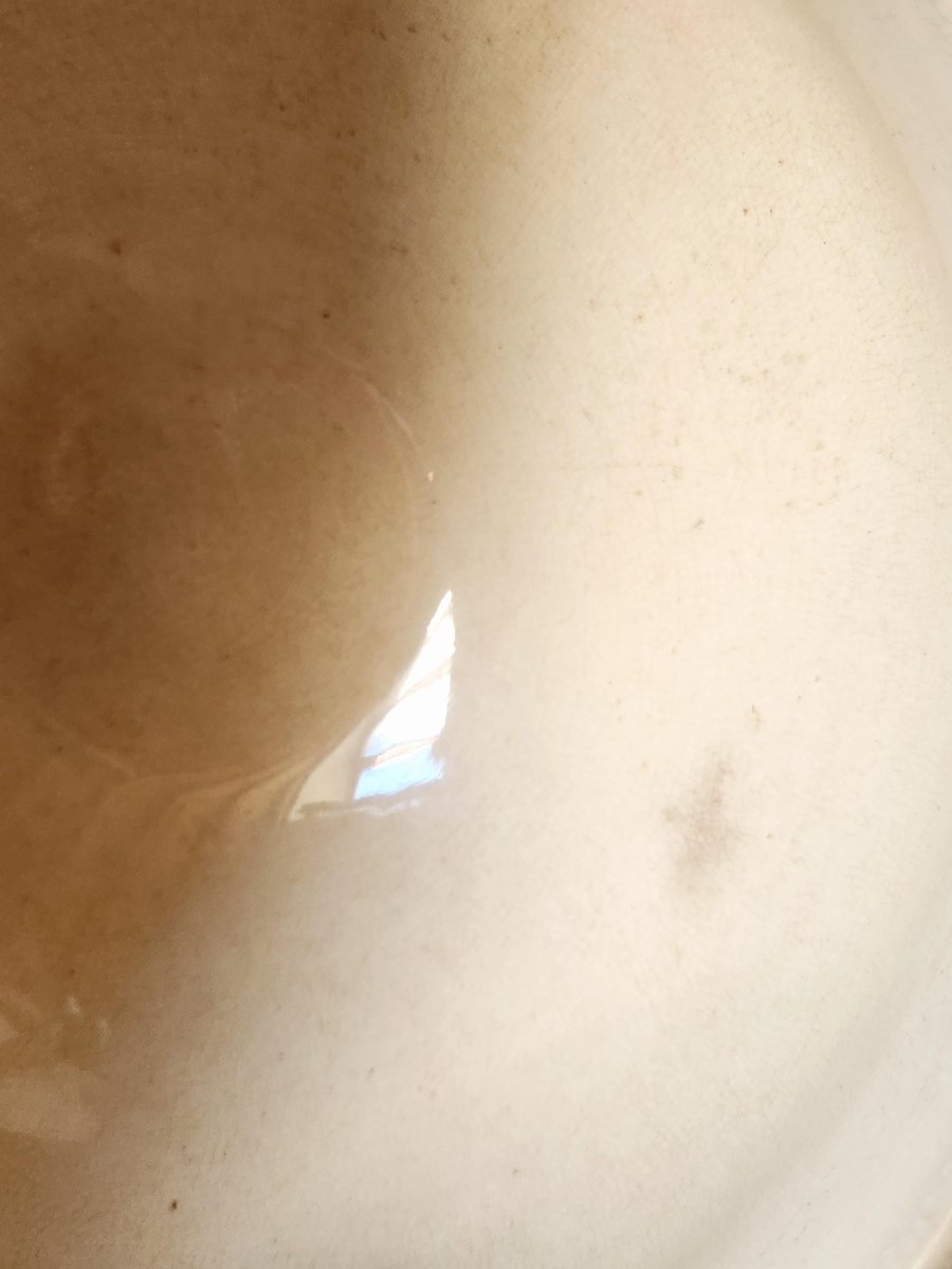 È in buone condizioni per la sua età, ma presenta segni di utilizzo precedente. Presenta delle screpolature sulla superficie e alcune macchie di tè soprattutto all'interno, intorno al bordo interno verso il centro. Si prega di vedere attentamente tutte le foto.